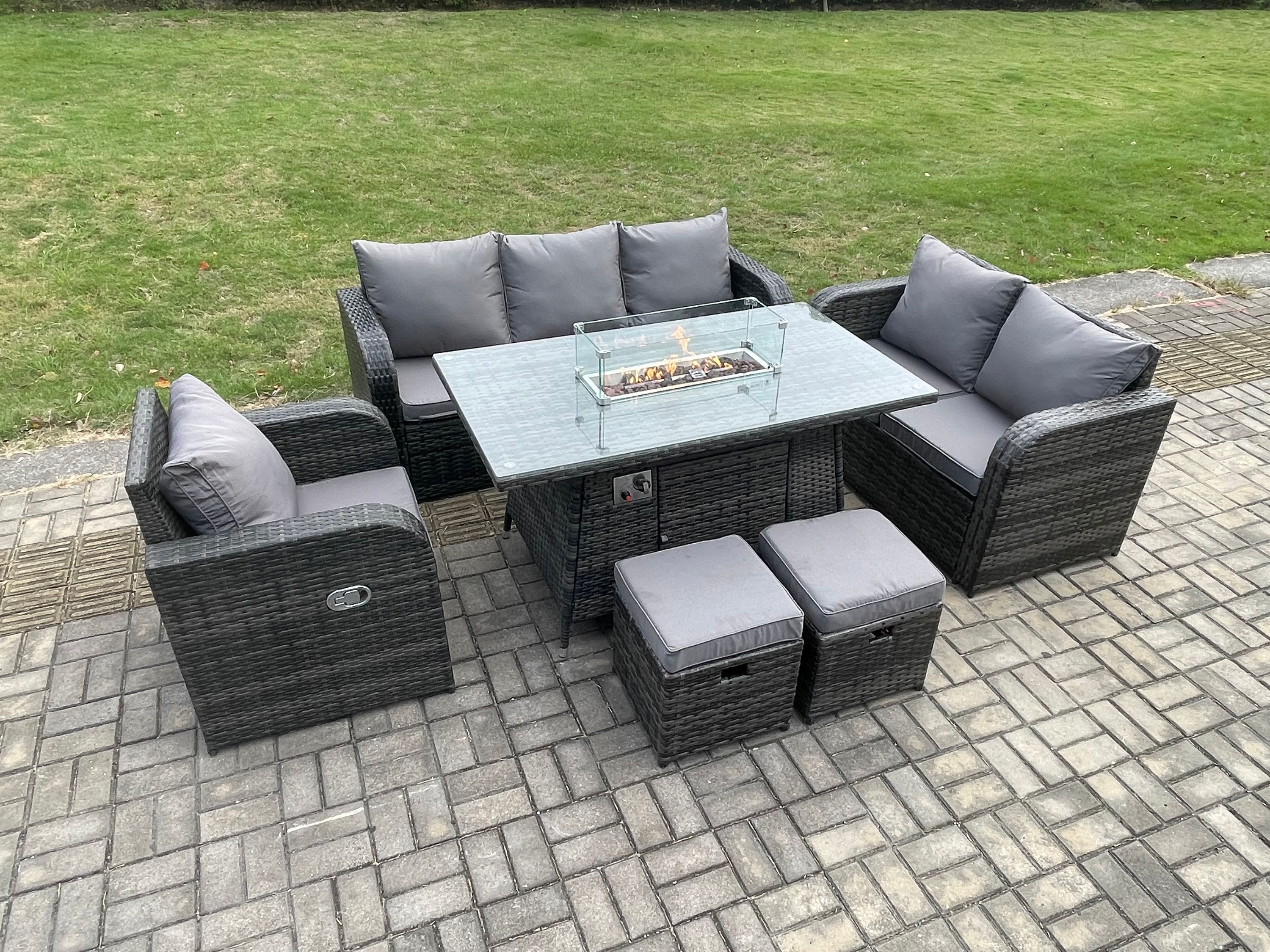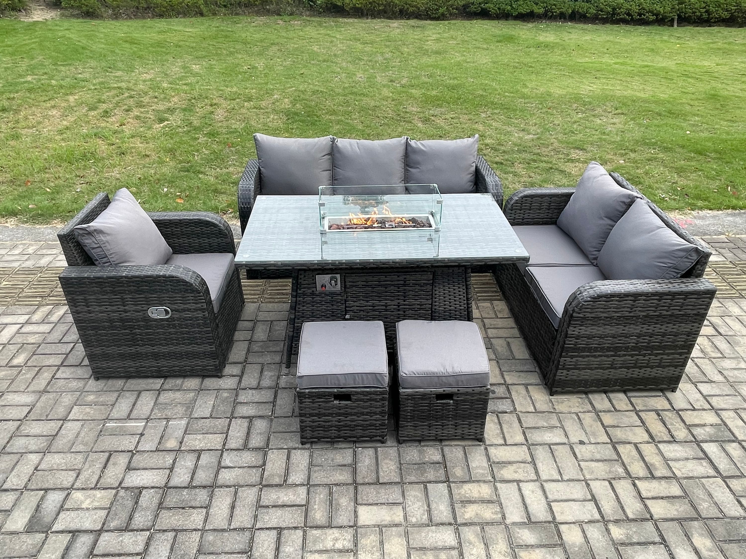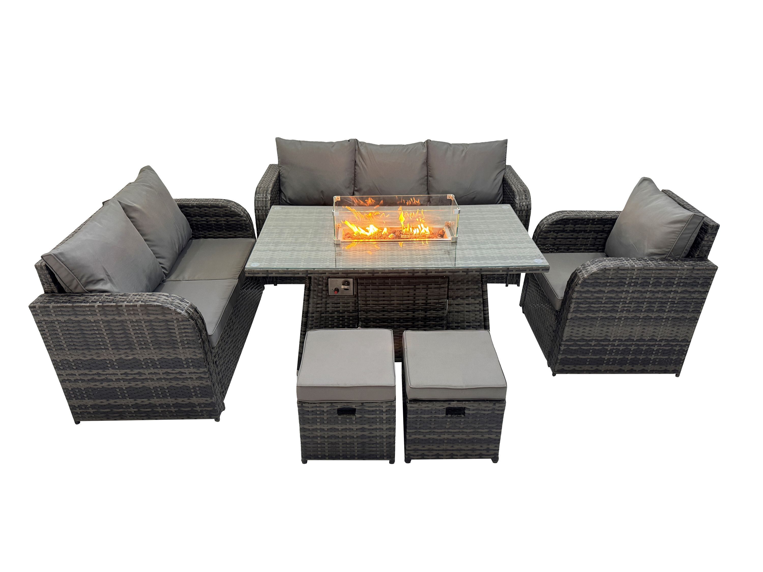 Fimous mit Gasfeuerstelle Esstisch 8-Sitzer Garten Sofa Set Dunkelgrau Gemischt