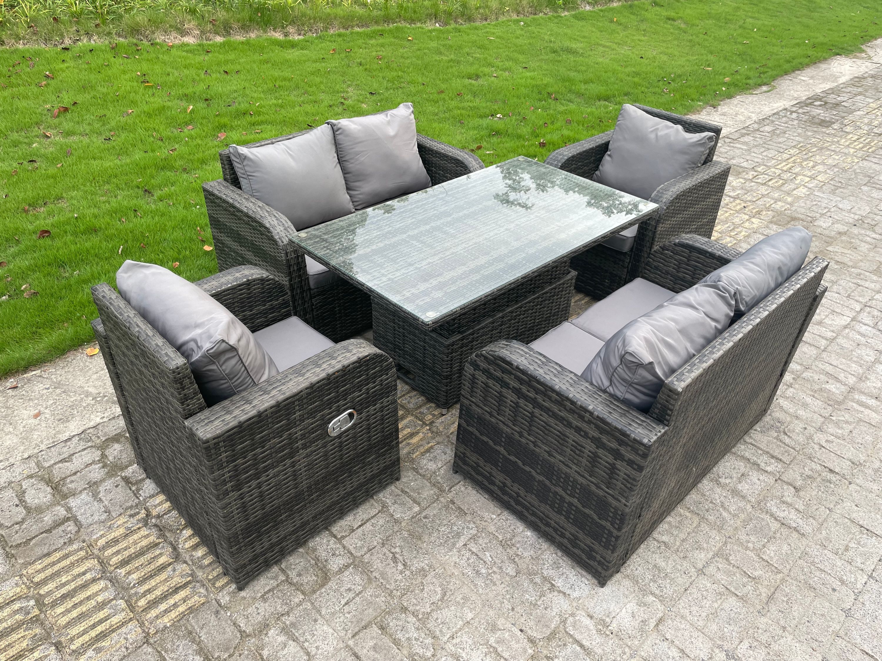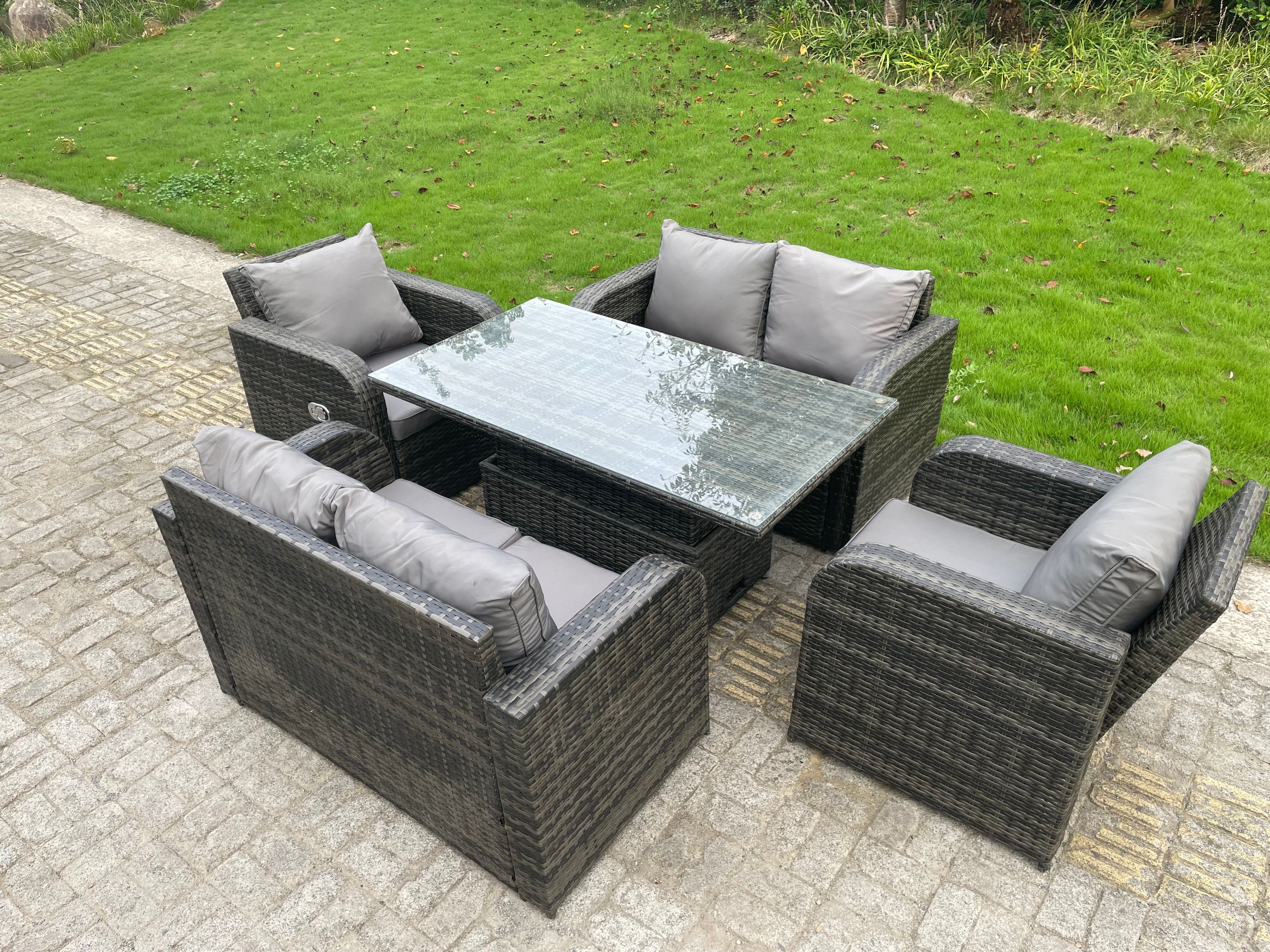 Fimous Outdoor Rattan Gartenmöbel Sitzgruppe 6 Sitzer