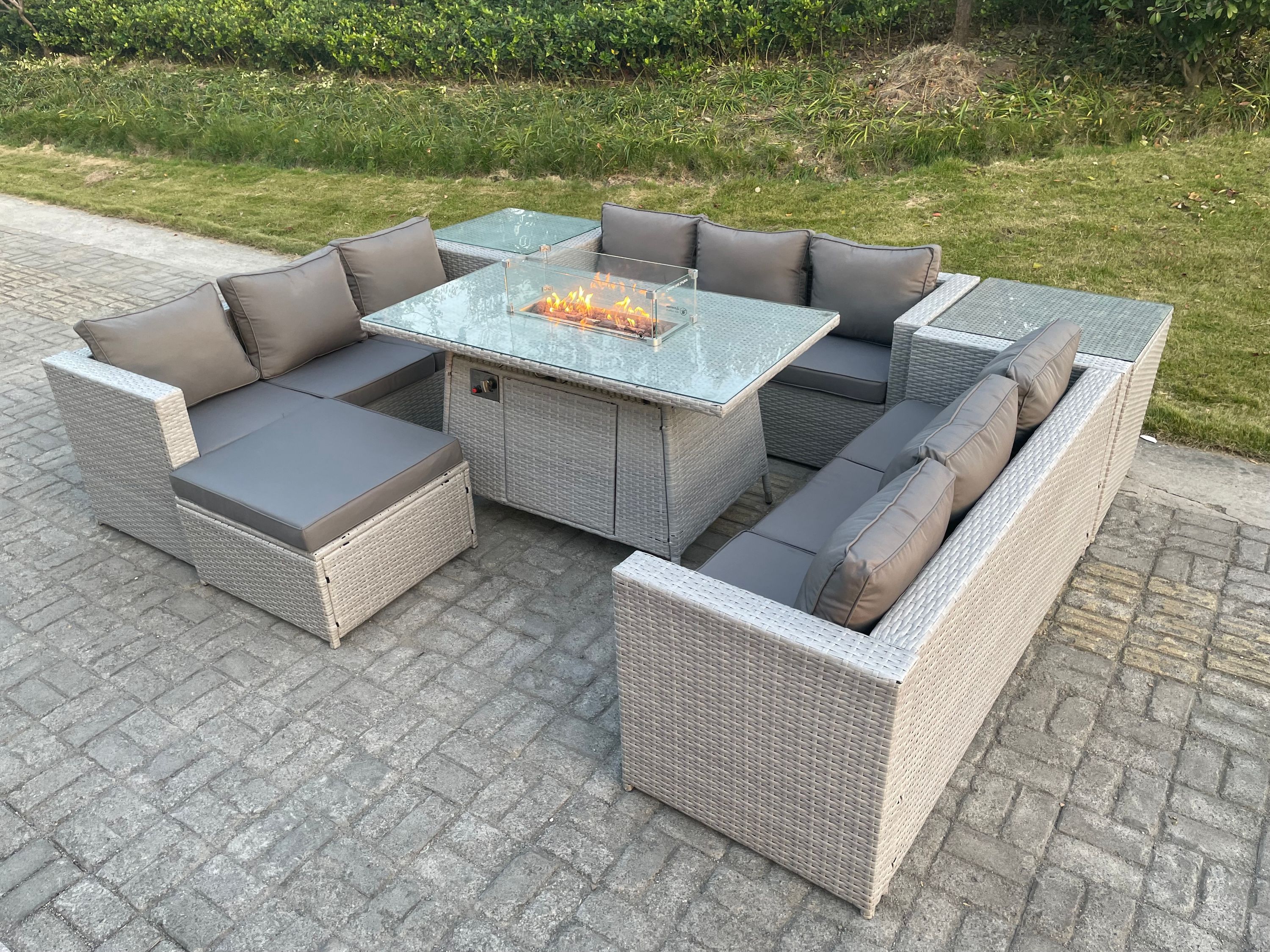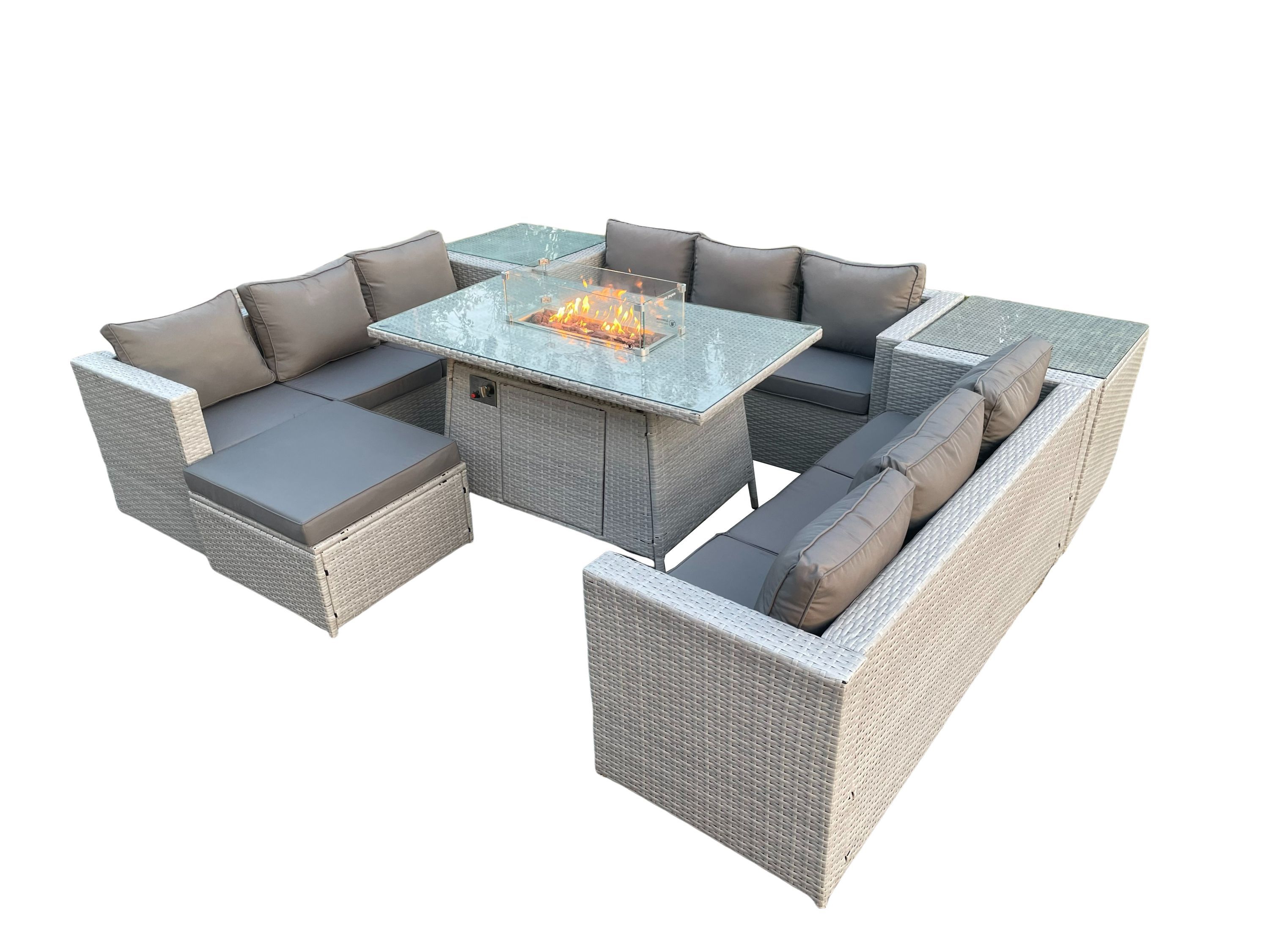 Fimous Polyrattan Gartenmöbel Sets im Freien Gas Feuertisch Sofa Set 2 Beistelltisch