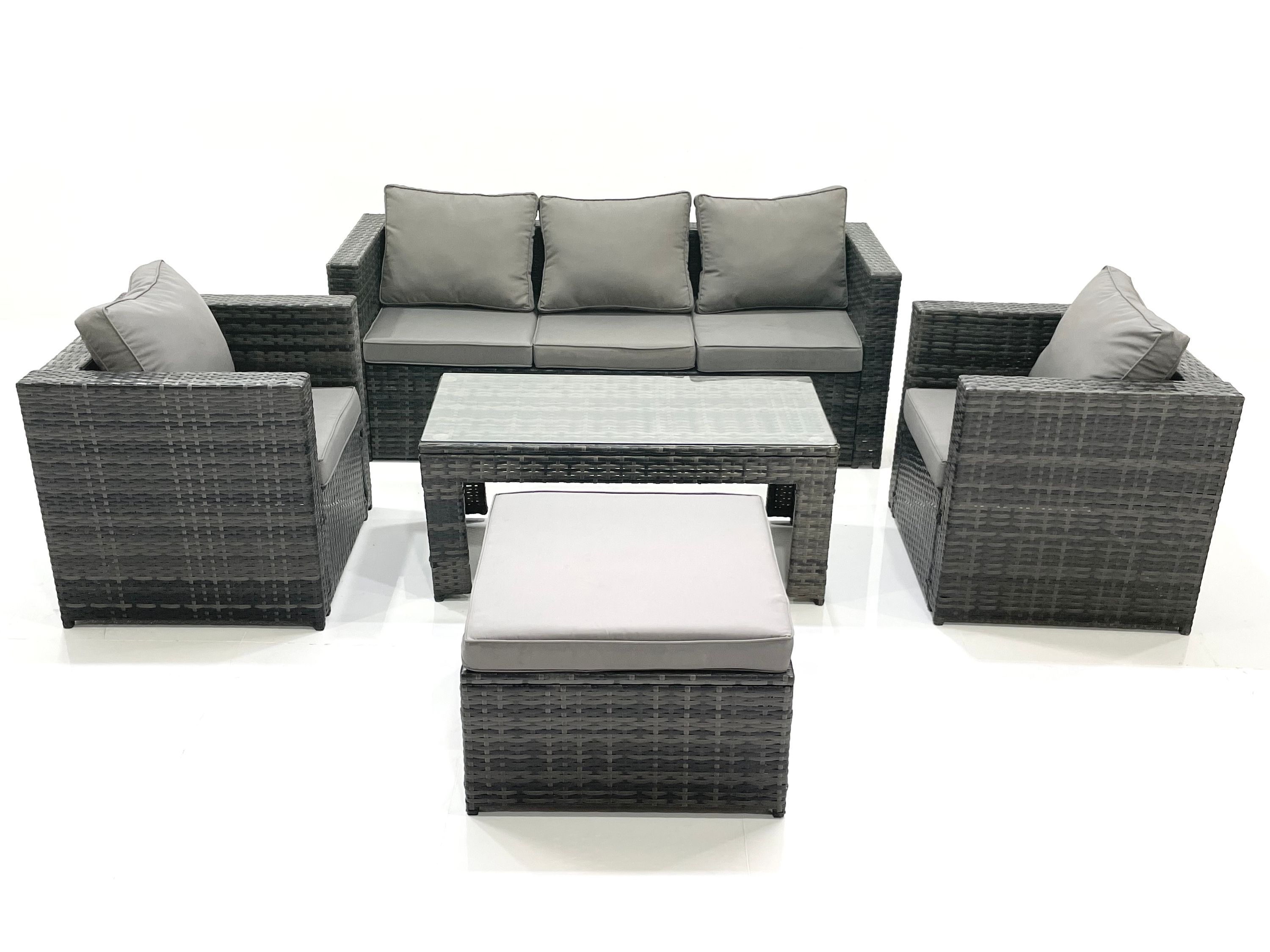 Fimous Polyrattan Gartensofa Set 2 Großer Hockern Dunkelgrau Gemischt
