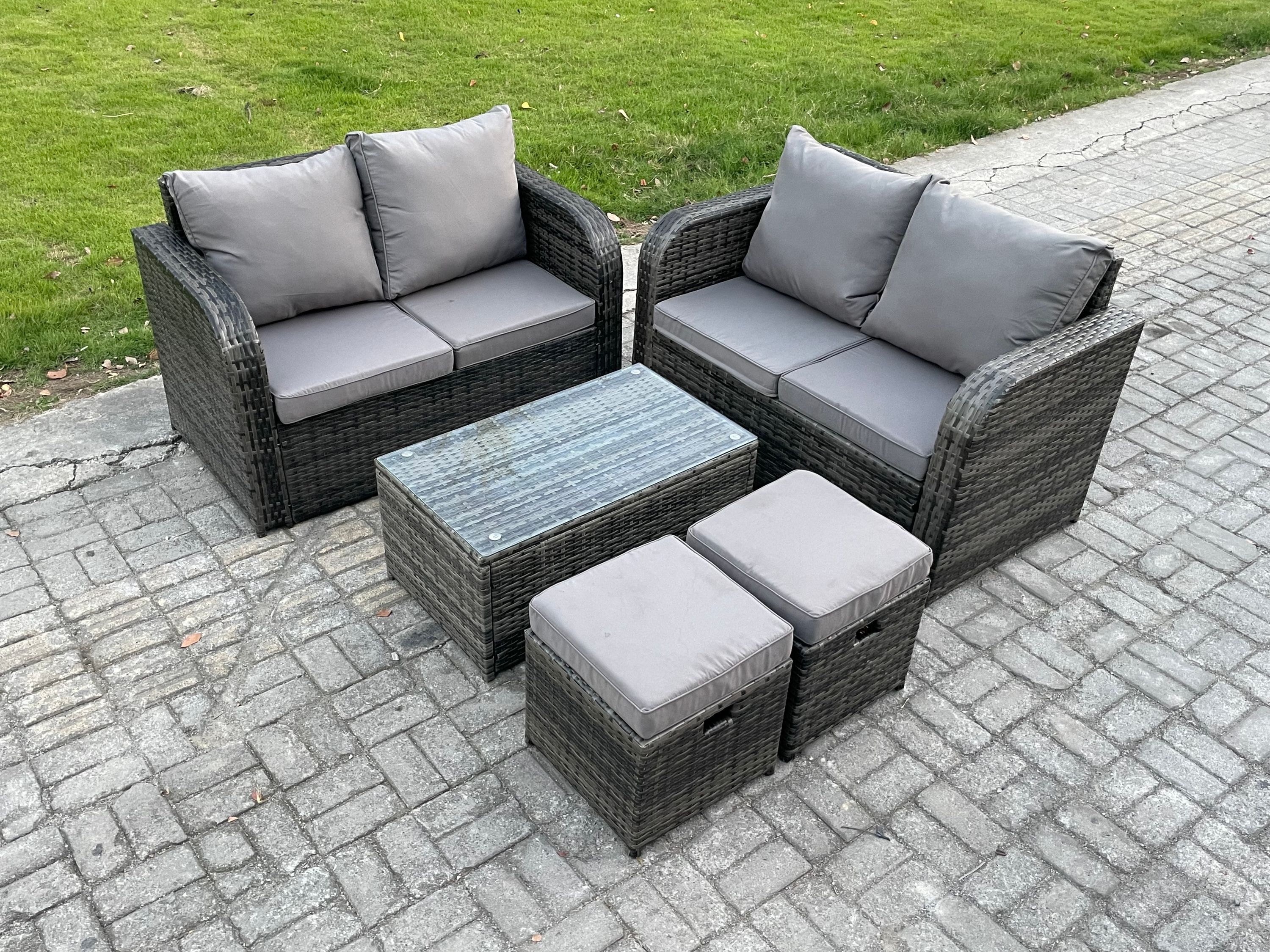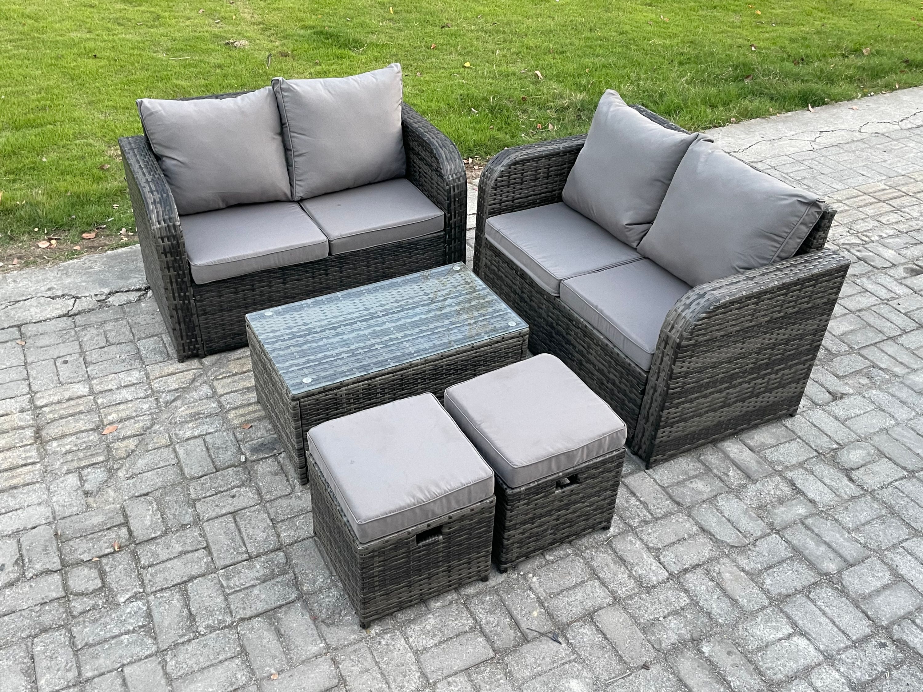 Fimous Rattan Gartenmöbel Set mit Sofa 6-Sitzer Dunkelgrau