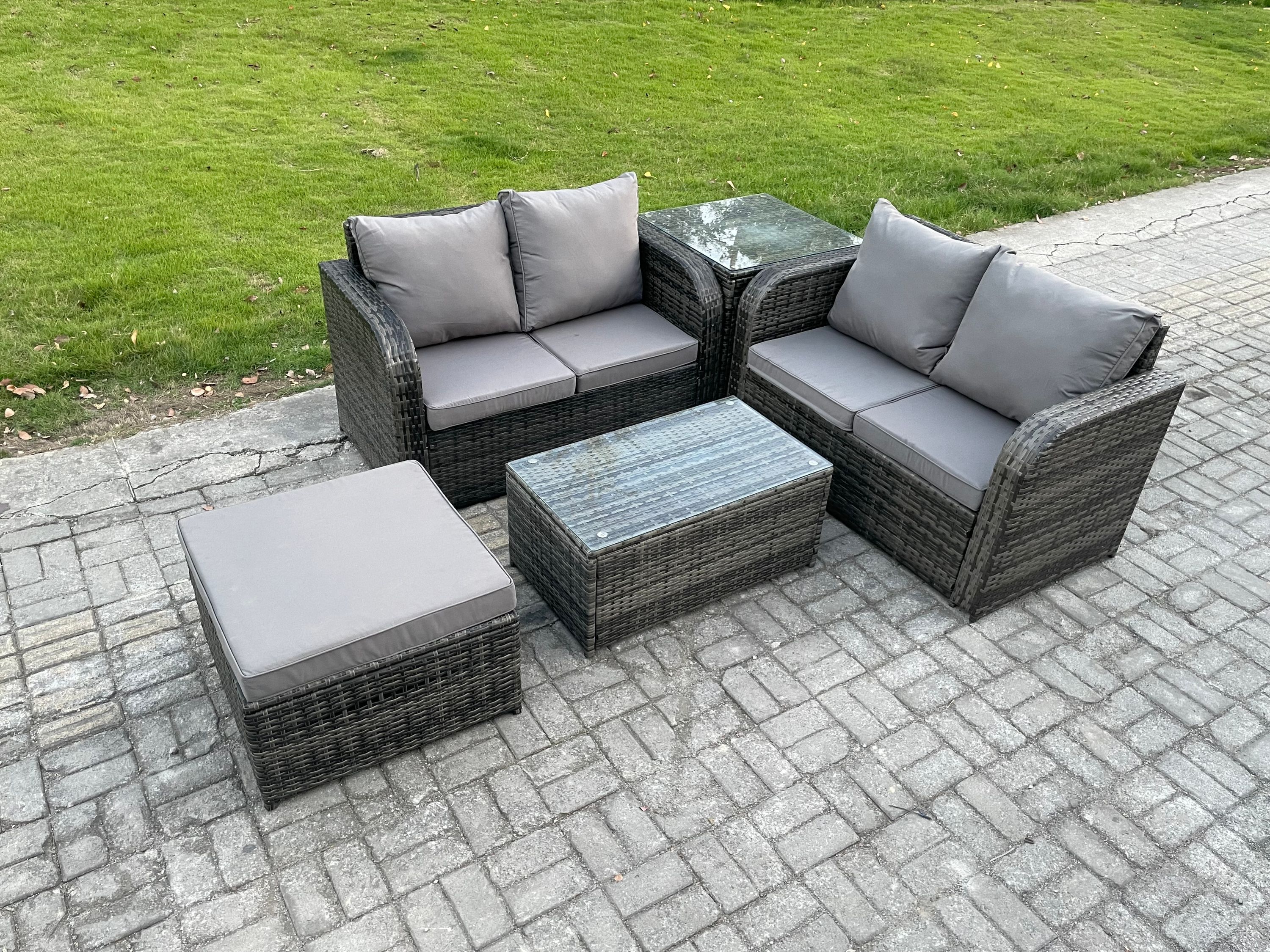 Fimous Rattan Gartenmöbel Set mit Sofa Dunkelgrau 5-Sitzer