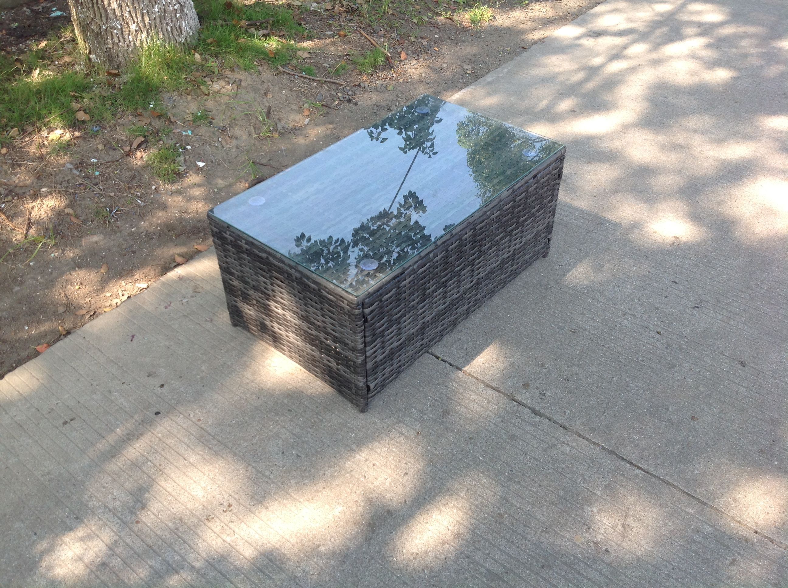 Fimous Rattan Gartentisch Rechteckiger Couchtisch Outdoor Lounge Gartenmöbel