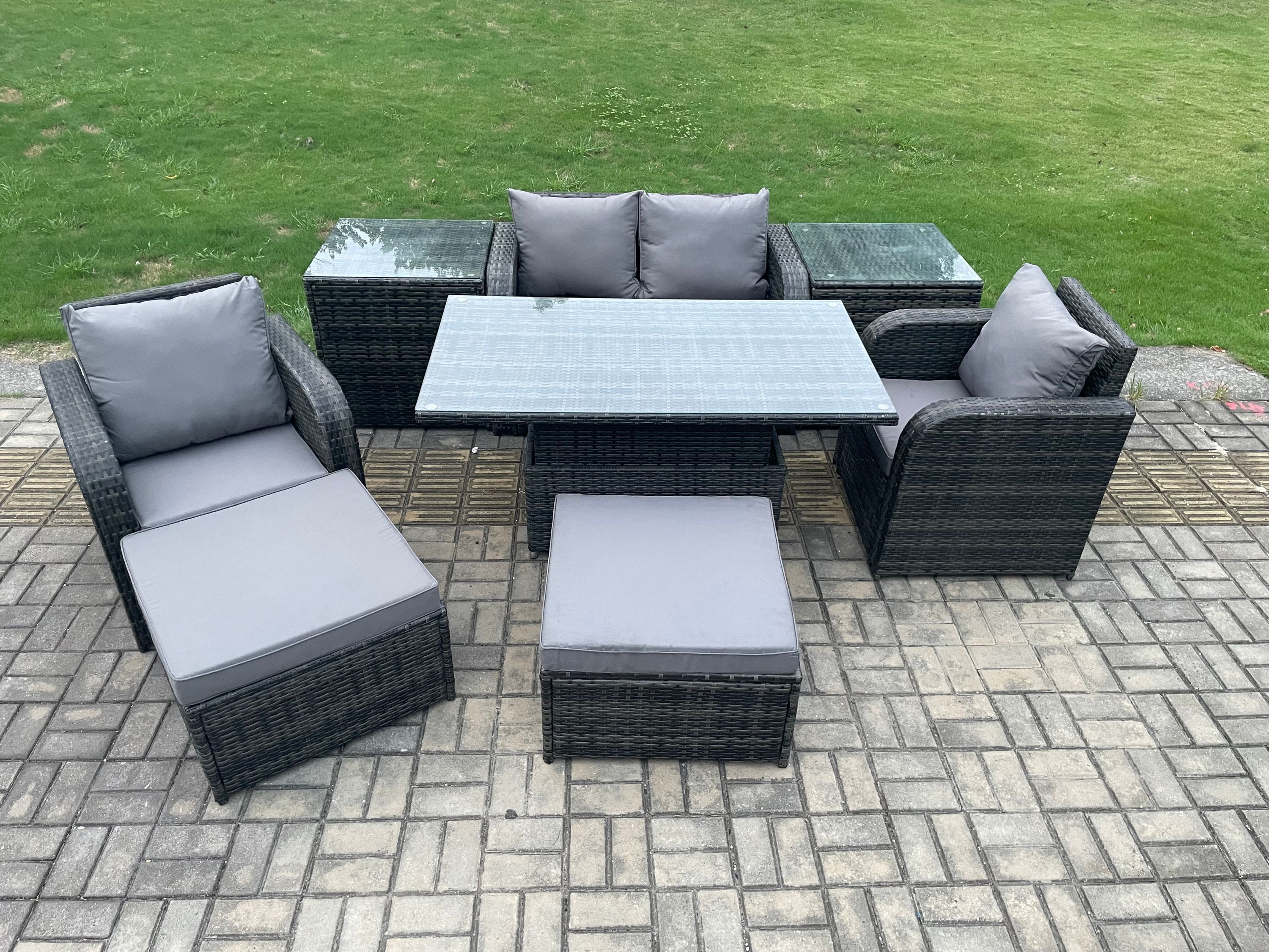 Fimous Rattan Möbel Outdoor Garten Dining Sets Mit 2 Beistelltische Hocker