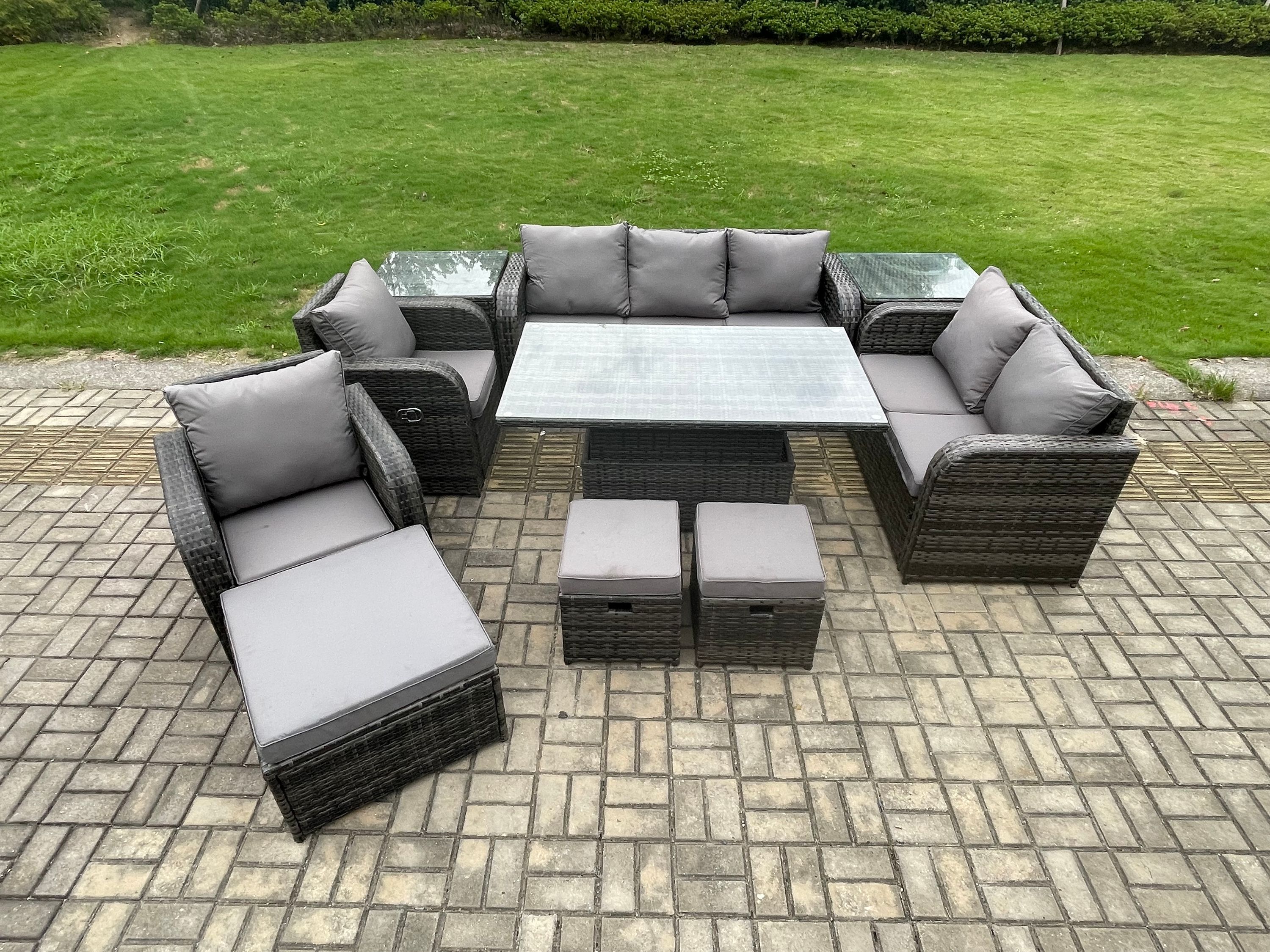Fimous Wicker PE Rattan Outdoor Gartenmöbel Sets mit 2 Beistelltischen 3 Fußhocker