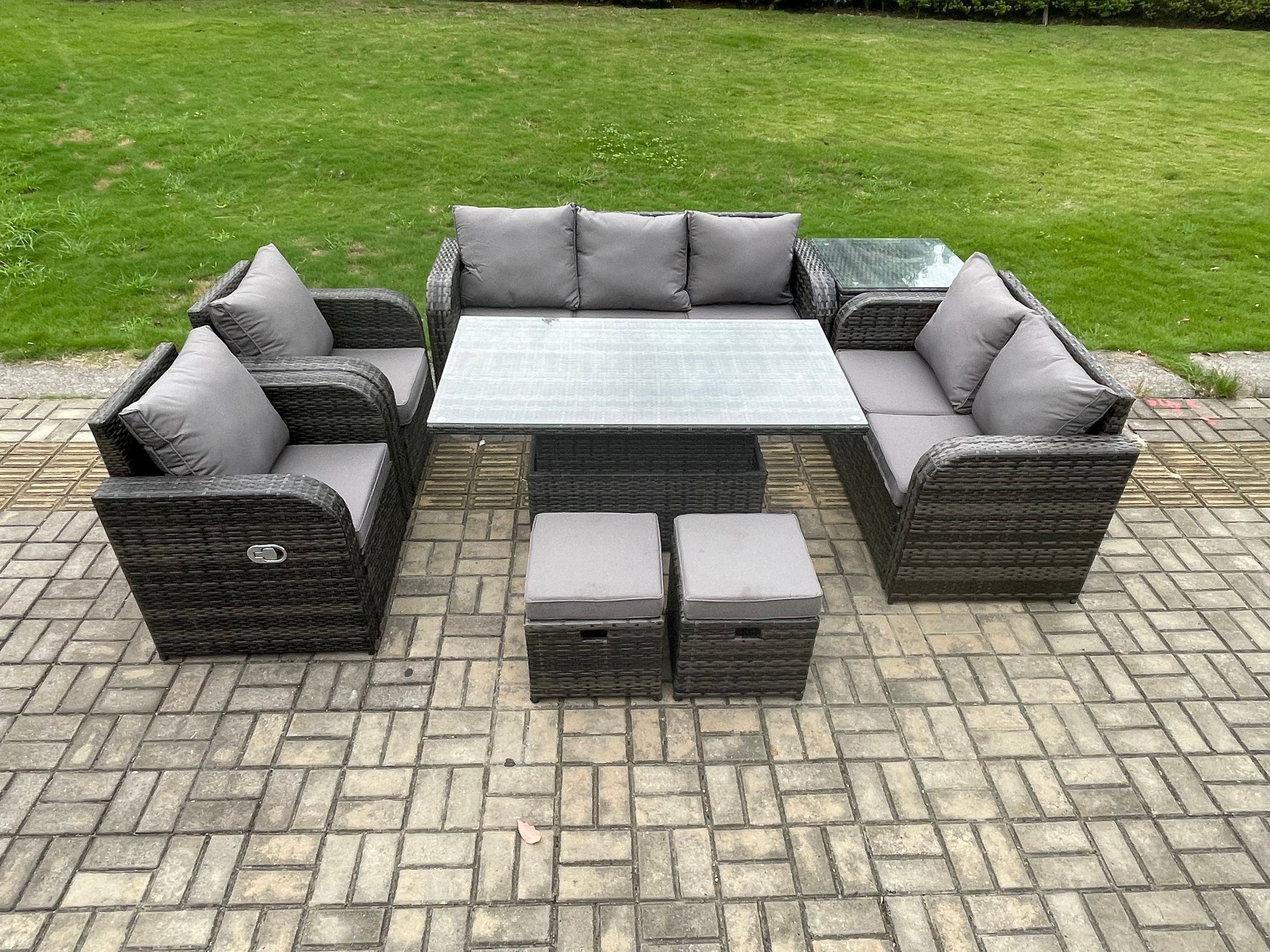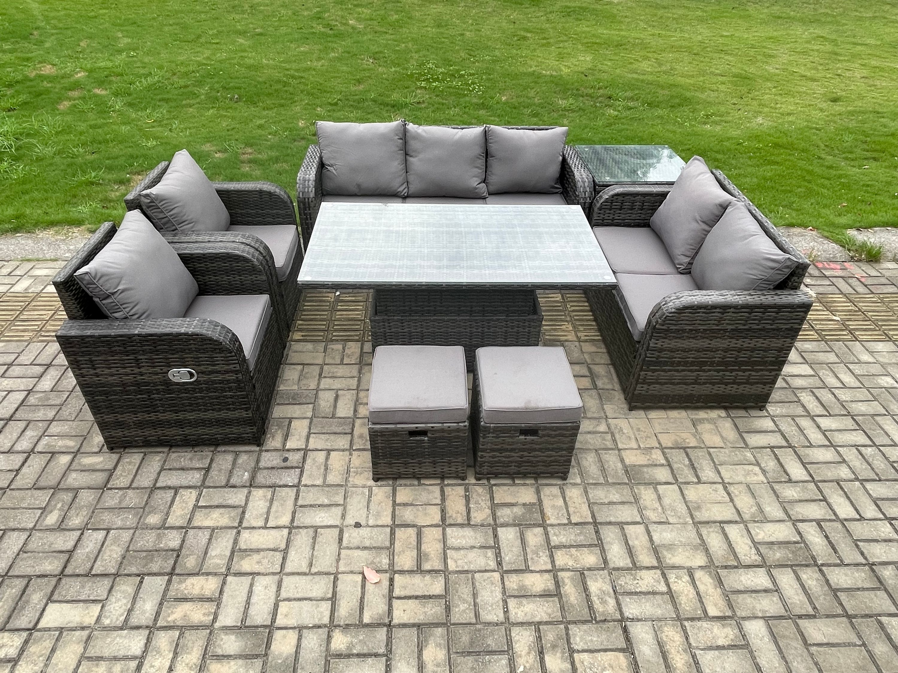 Fimous Wicker PE Rattan Outdoor Gartenmöbel Sets mit Beistelltisch 2 Kleine Fußhocker