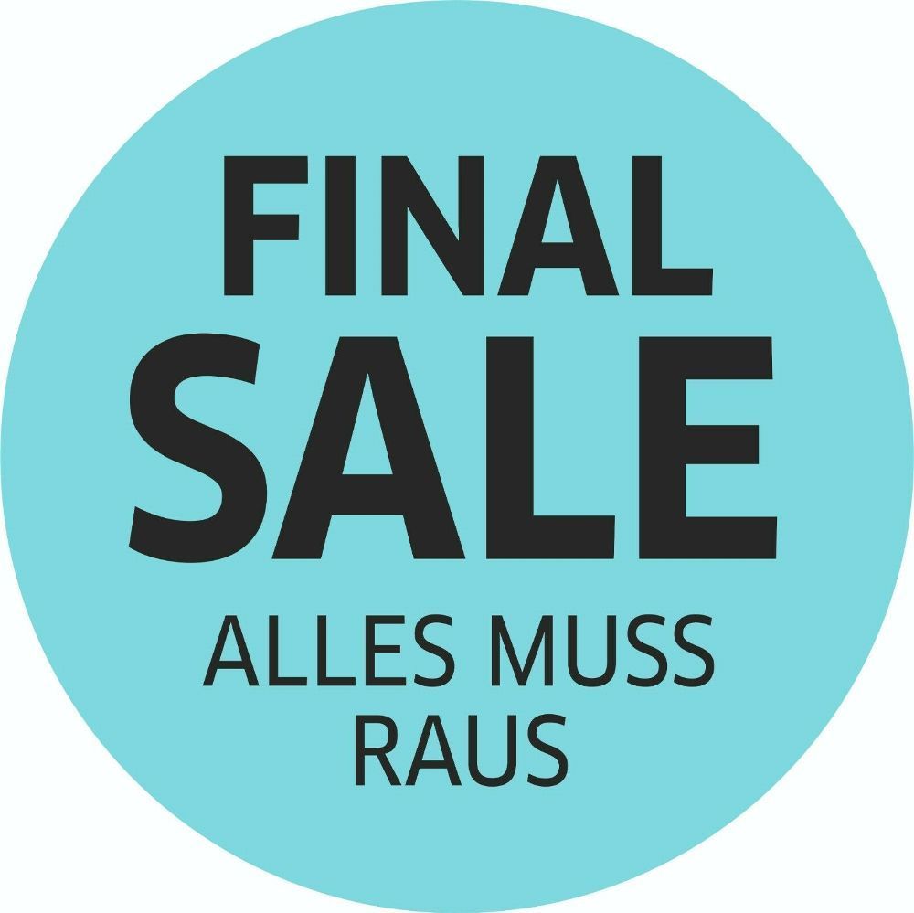 Aufkleber FINALE SALE - ALLES MUSS RAUS Eigenschaften: Farbe: BLAU (andere Farben und Prozente finden Sie in unseren weiteren Angeboten) Material: Klebefolie rückstandslos entfernbar einfache Verklebung geeignet für alle glatten Fächen (Glas, Kunststoff, Holz, Acryl...) Versand innerhalb von 24 Std.