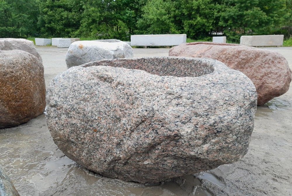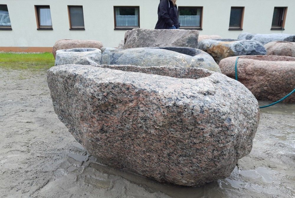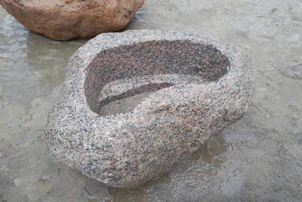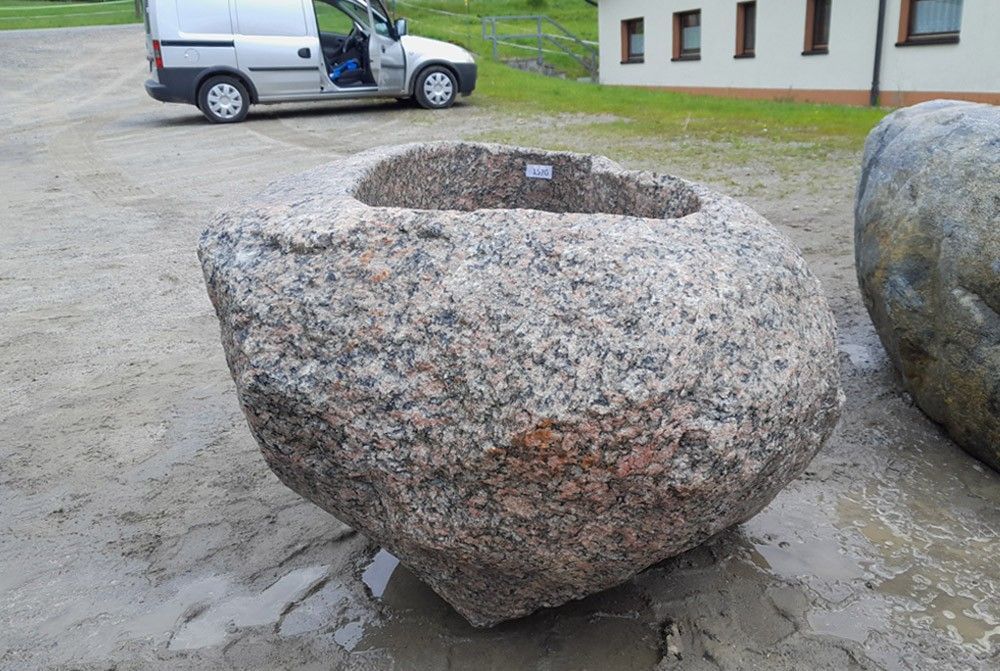 Findlingsbrunnen aus Granit, exklusives Einzelstück, ideal als Brunnen oder zum Bepflanzen in jedem Garten oder vor jedem Haus Außenmaße - Länge x Breite x Höhe: 120 x 70 x 59 cm Innenmaße - Länge x Breite x Höhe: 75 x 45 x 32 cm Gewicht: 650 kg Preis: Euro 1007,56 zzgl. MwSt. = Euro 1199,-- Lieferu... Mehr