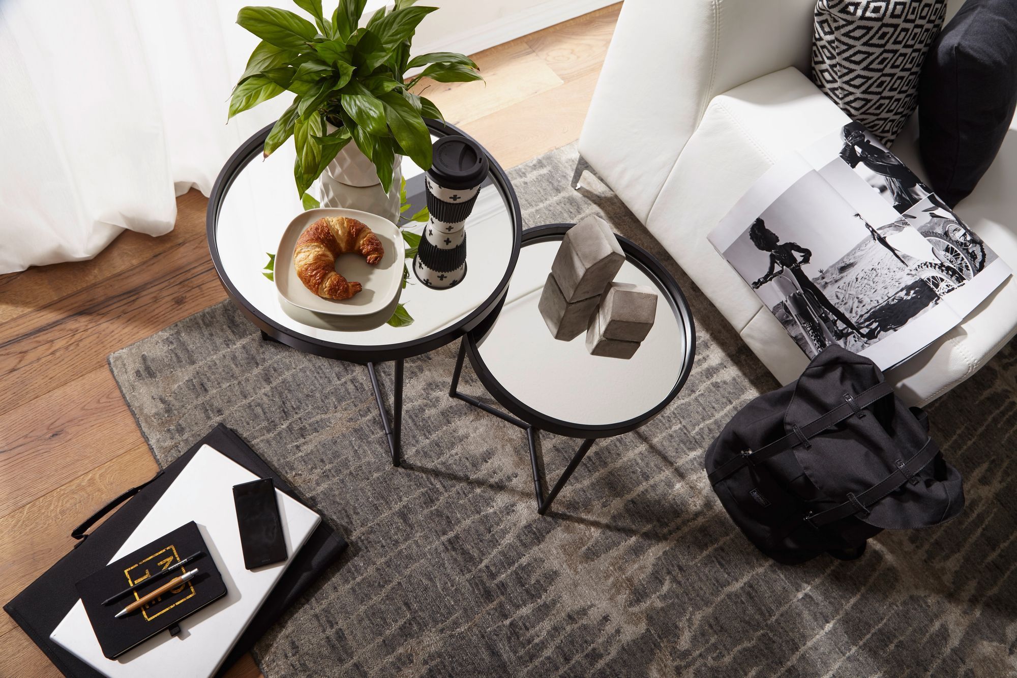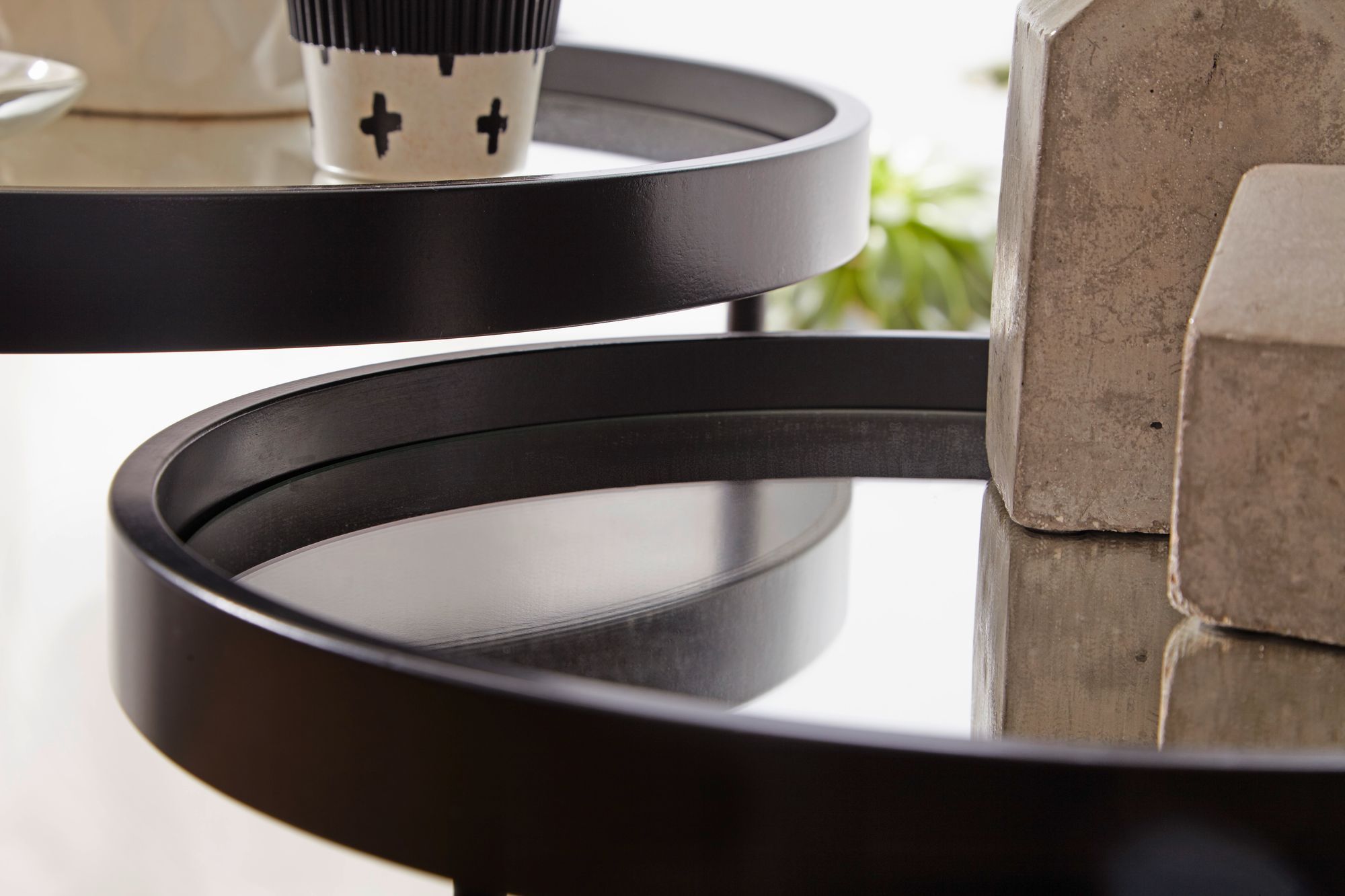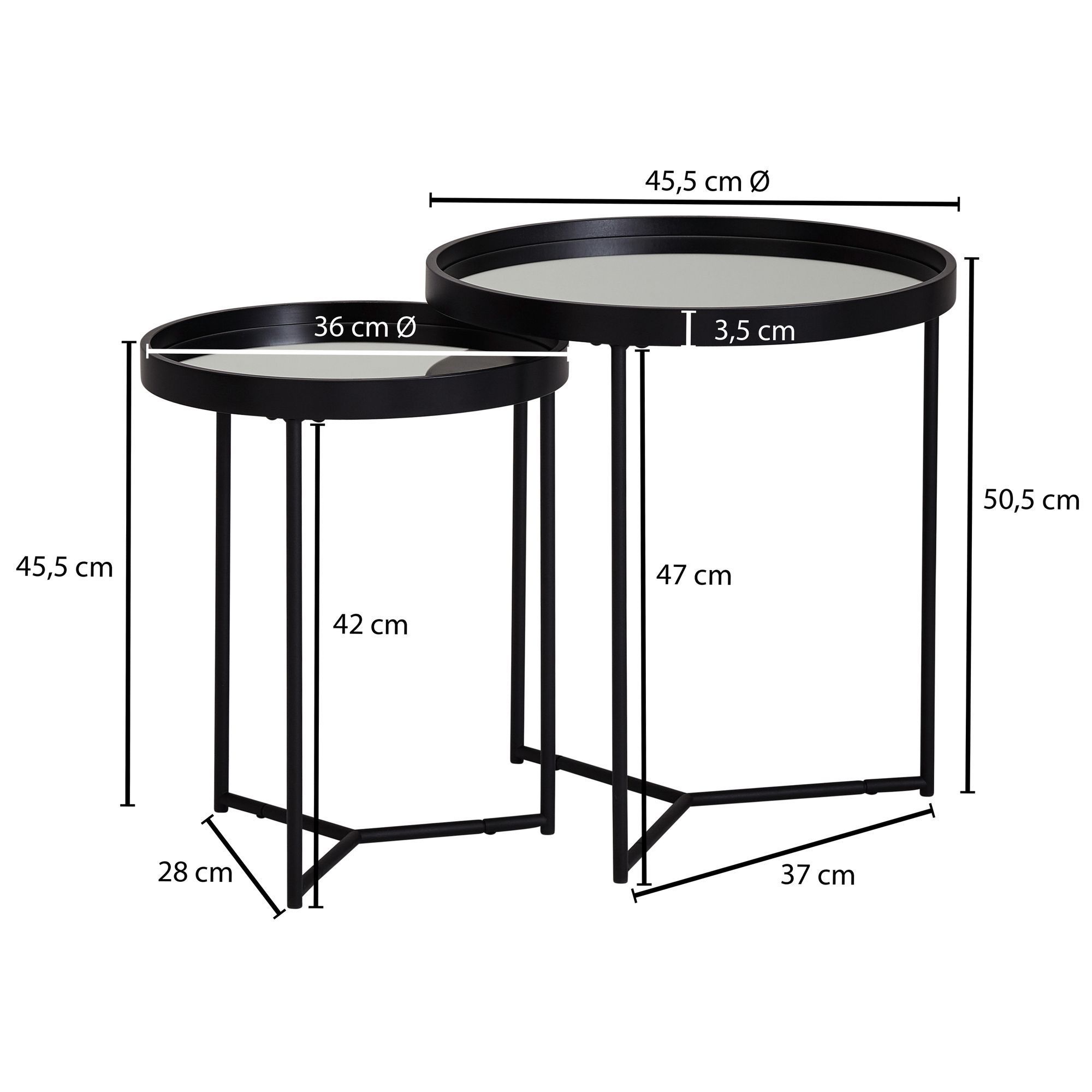 FineBuy FineBuy Beistelltisch 2tlg Rund Schwarz Spiegel Glas Wohnzimmertisch Satztisch