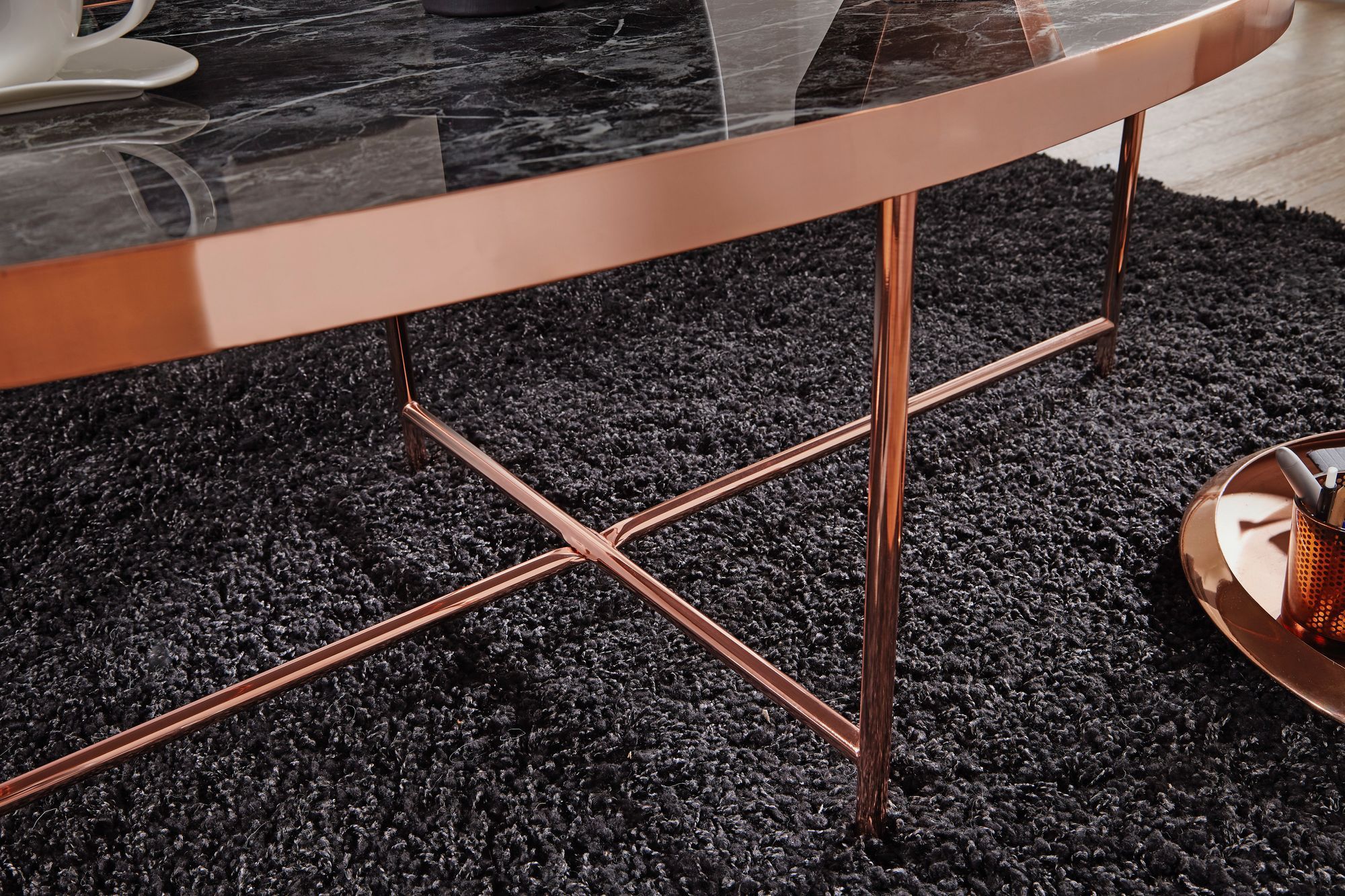 FineBuy FineBuy Couchtisch Marmor Optik Schwarz Oval 110 x 56 cm Wohnzimmertisch Kupfer