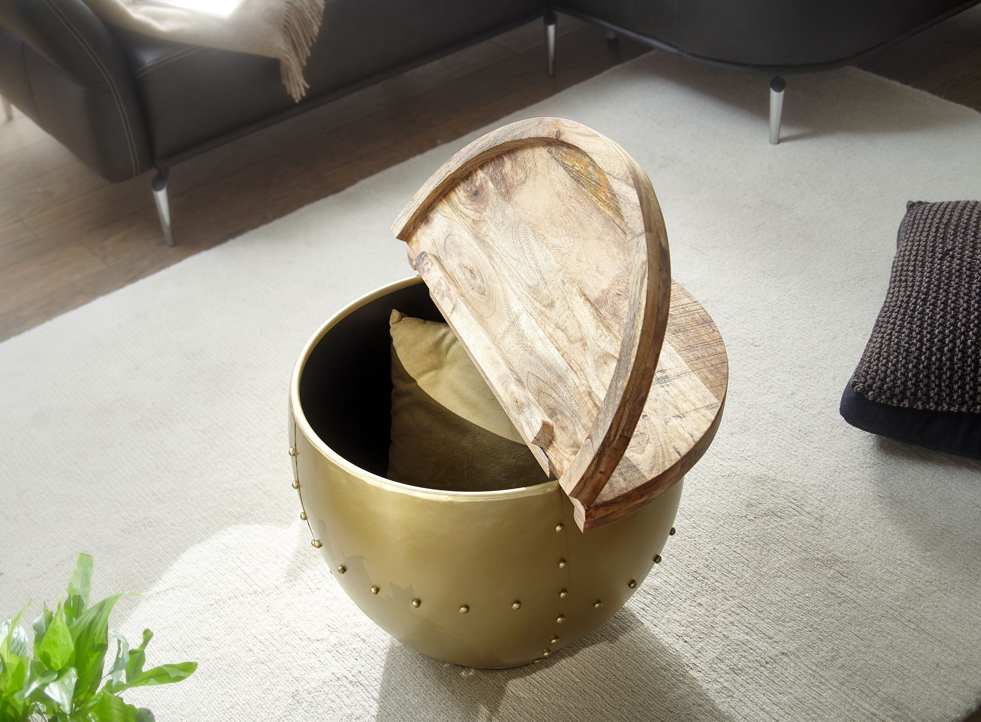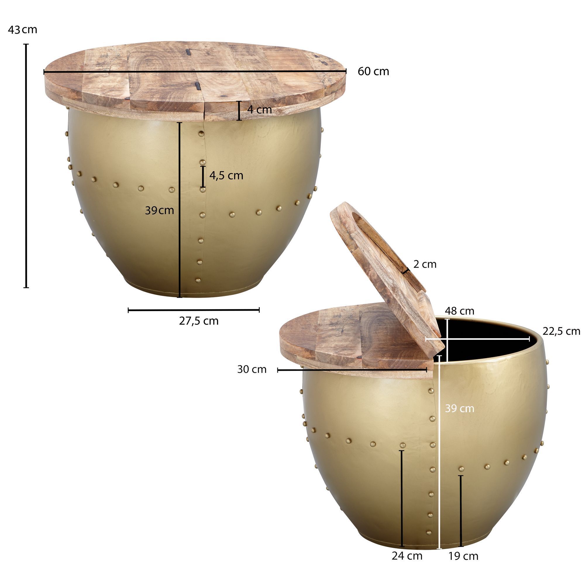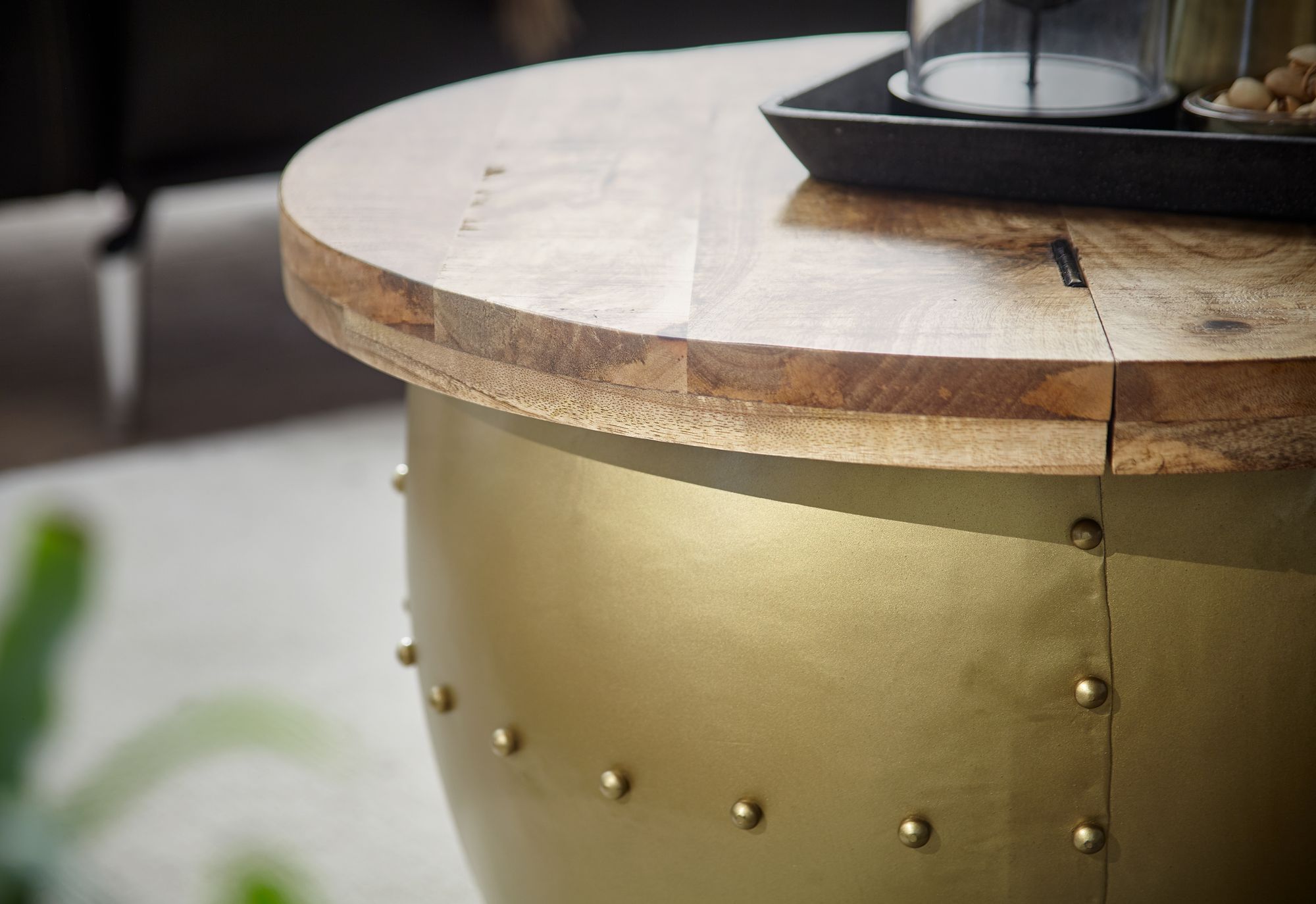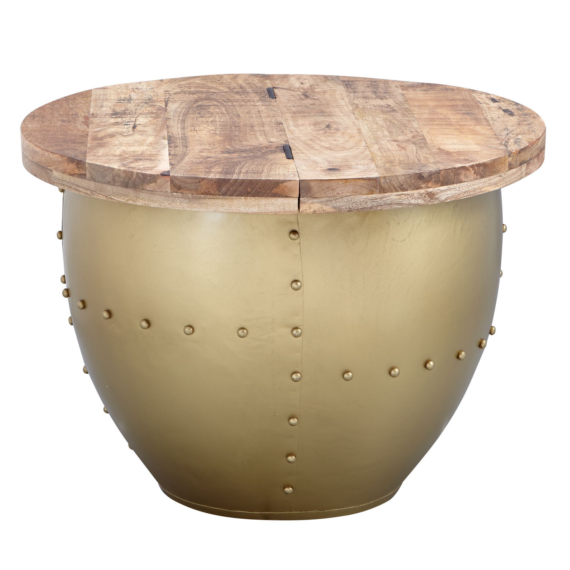 FineBuy Couchtisch Mango Massivholz / Metall 60x43x60 cm Industrial Style Rund, Design Wohnzimmertisch mit Stauraum, Moderner Loungetisch Sofatisch