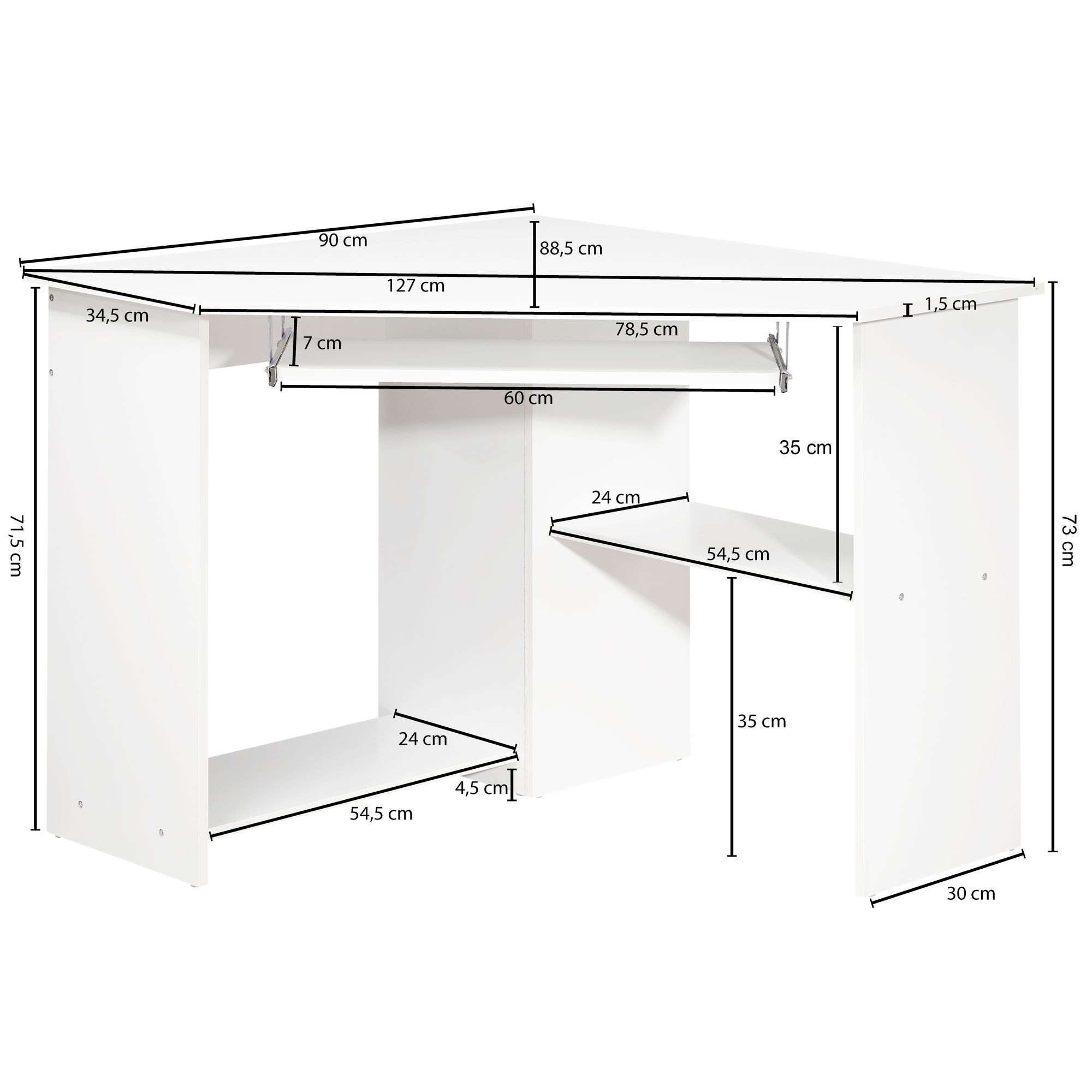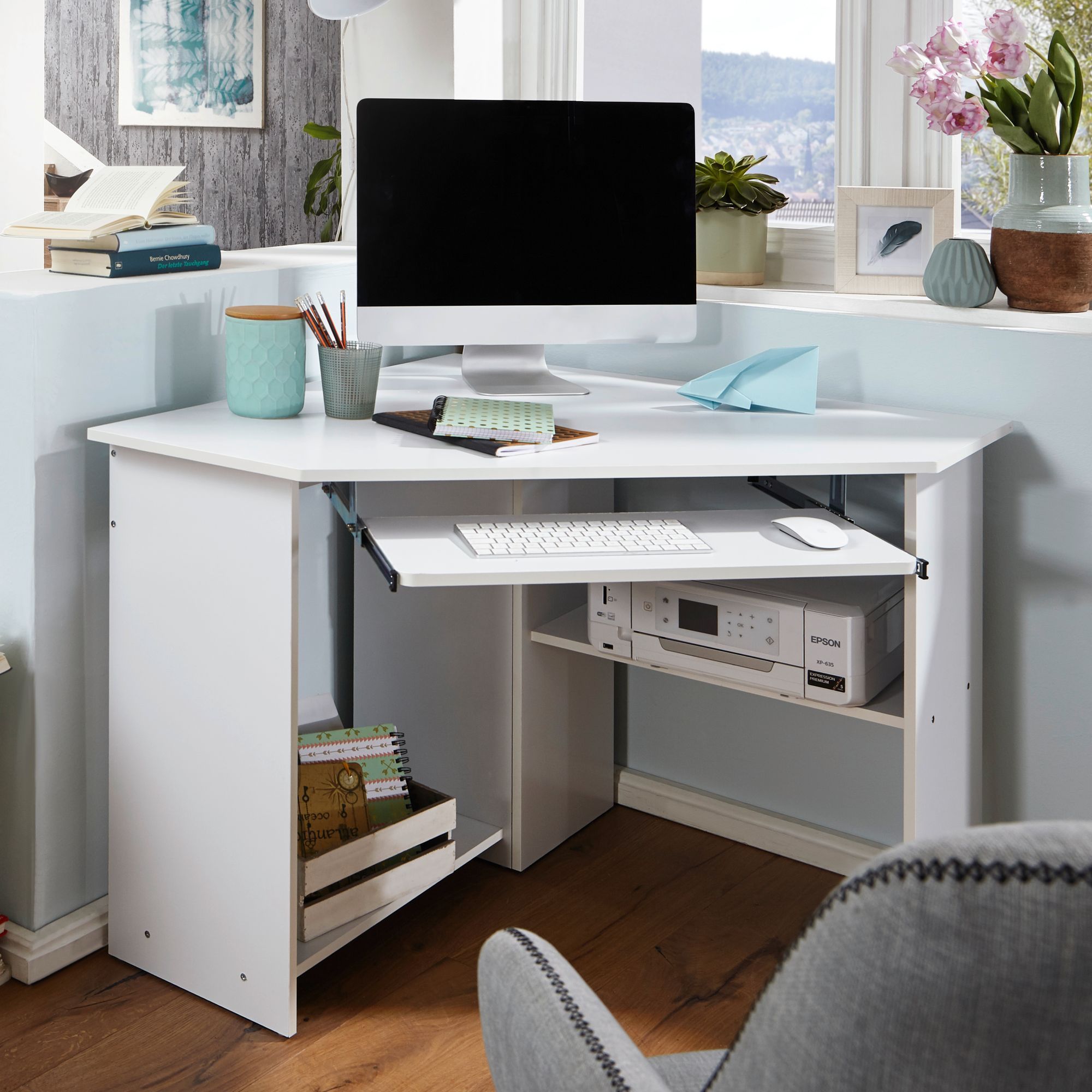 FineBuy FineBuy Eckschreibtisch Computertisch ROM Weiß mit Ablage PC Schreibtisch