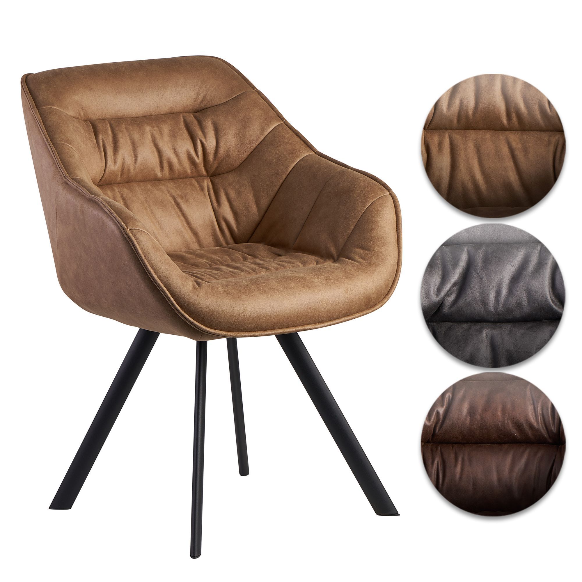 FineBuy Esszimmerstuhl Wildlederoptik Gepolstert, Küchenstuhl mit Schwarzen Beinen, Moderner Schalenstuhl mit Armlehnen, Design Polsterstuhl Stoffbezug