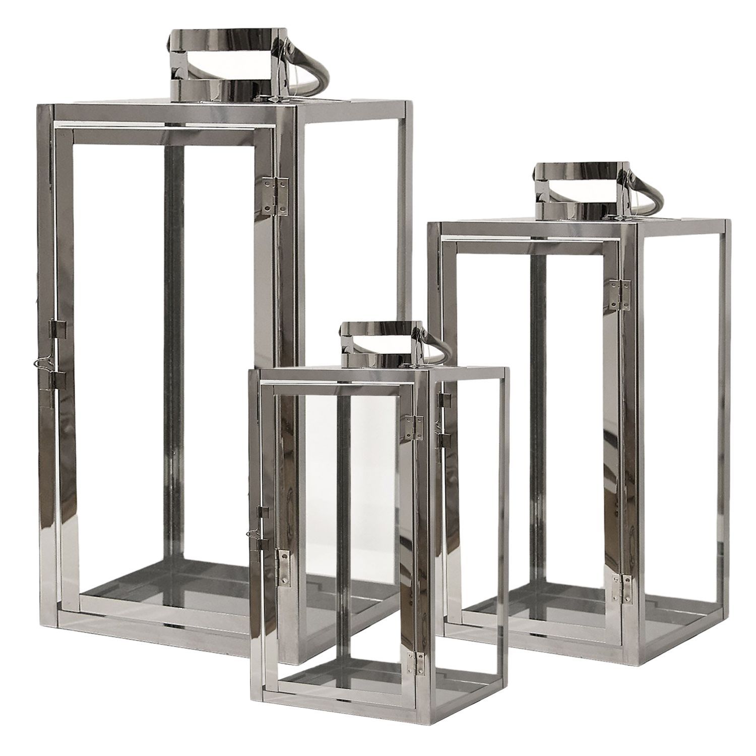 FineHome Luxus Edelstahl 3-tlg XXL Gartenlaternen Windlichter Laterne Rostfrei