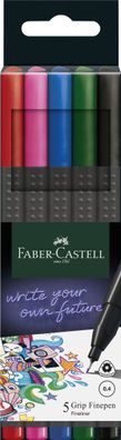 • Faber-Castell 151604 Fineliner Finepen Grip basic - 0,4 mm, 5er Etui