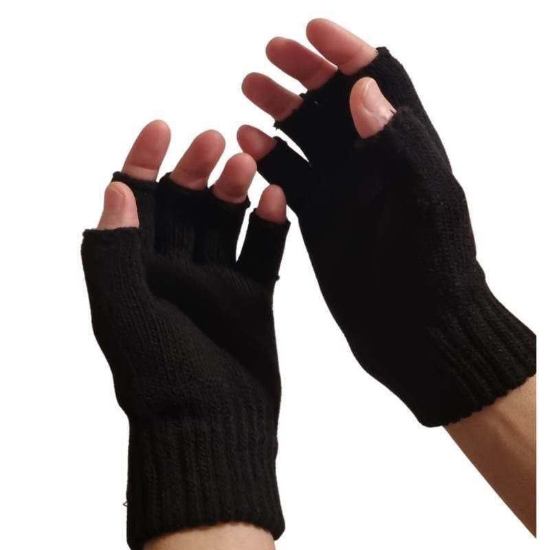 Fingerlose Handschuhe Unisex Schwarz Gloves Warm Strick Fingerless Herren Damen
