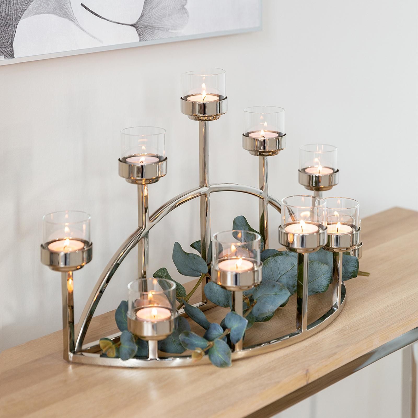 Fink Fink 10-flammiger Kerzenhalter 48x17x30 cm Edelstahl vernickelter Teelichthalter
