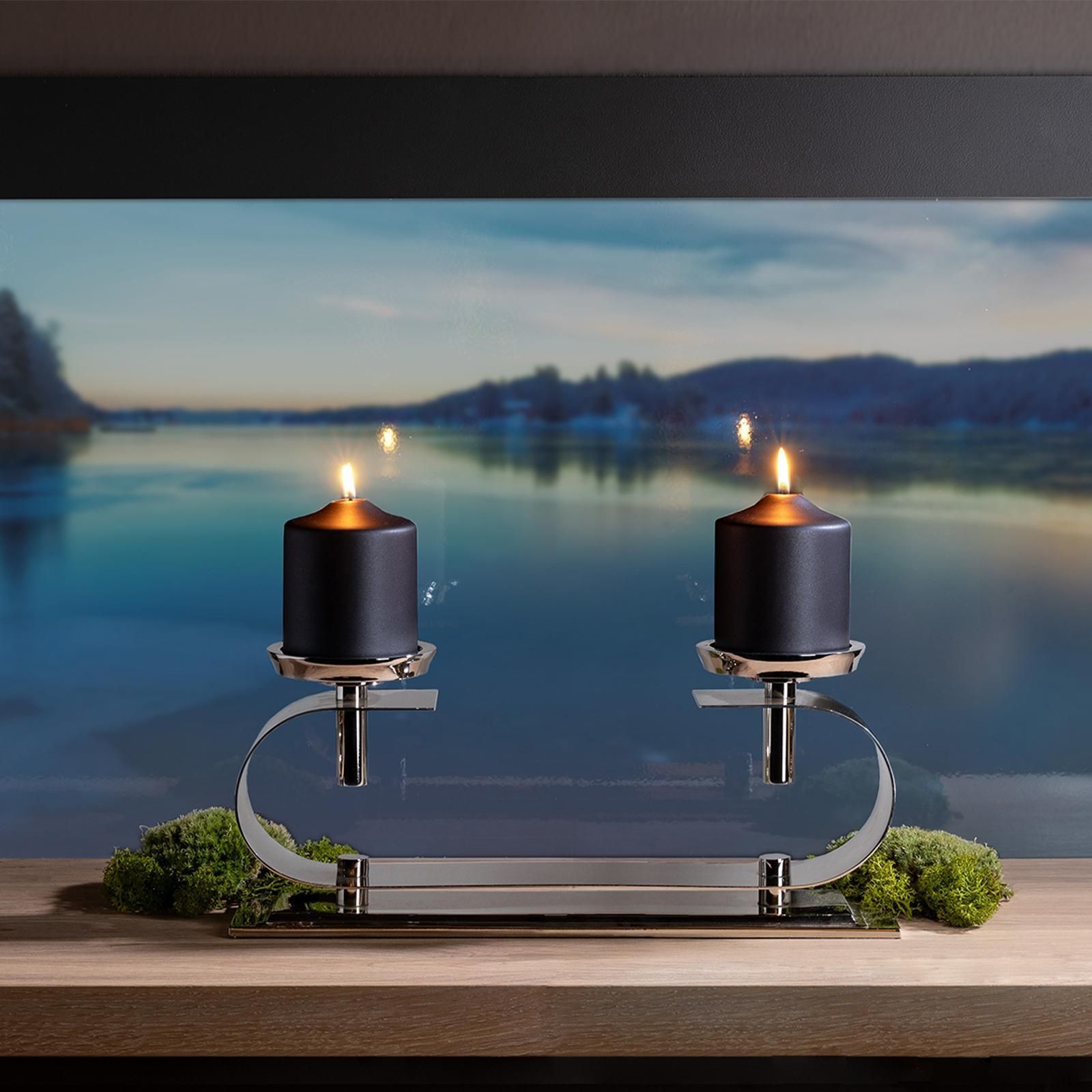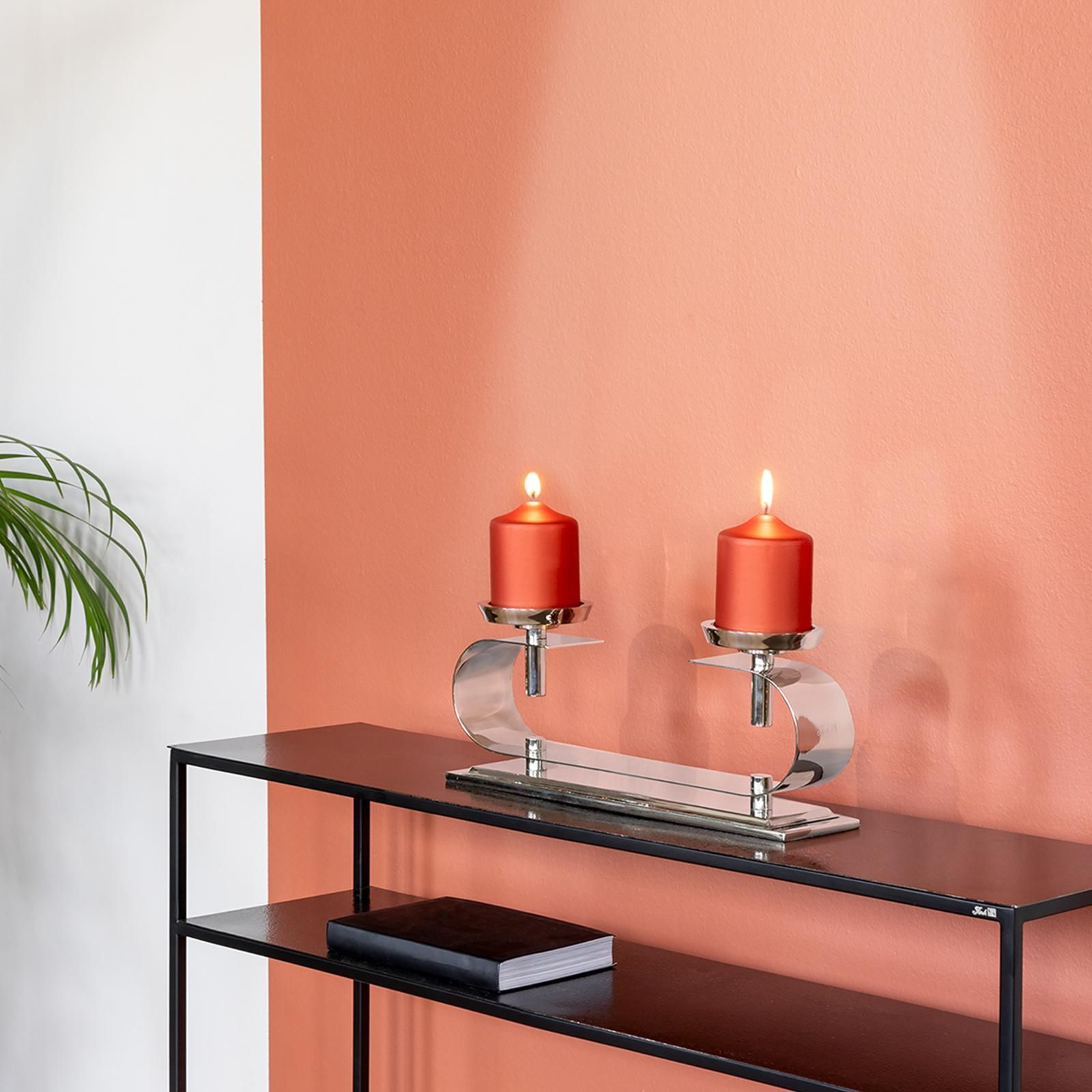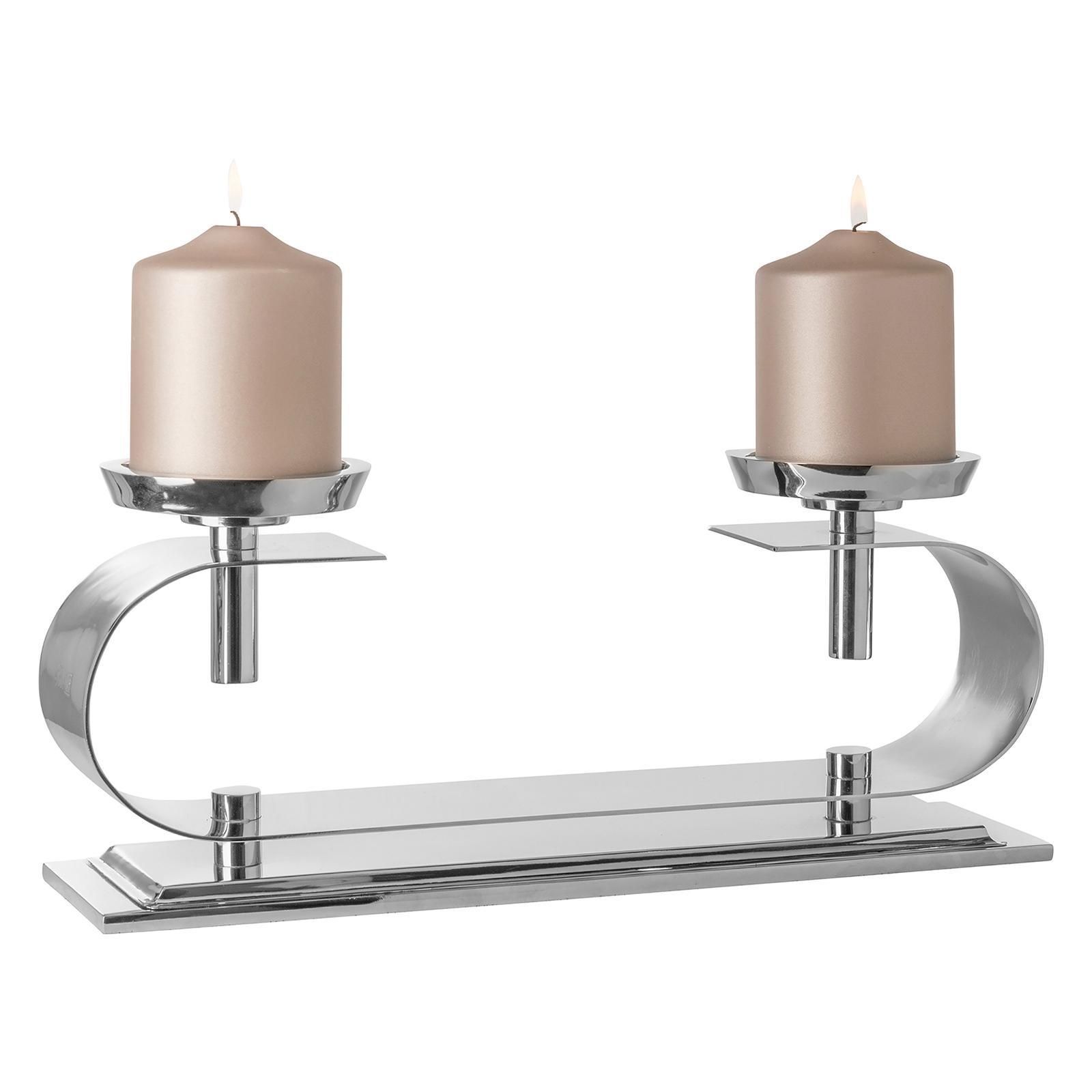 Fink Fink 2-flammiger Stumpenkerzen-Halter 39 cm Kerzenständer vernickelter Edelstahl