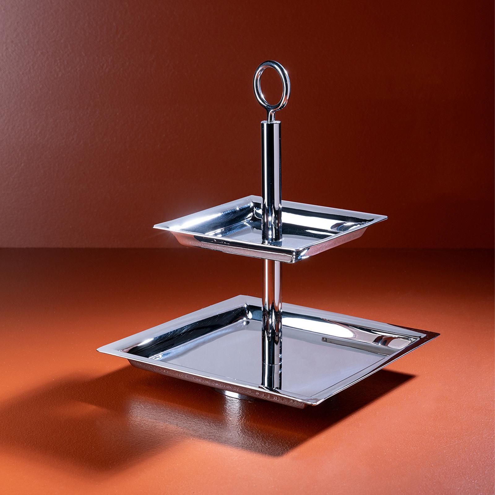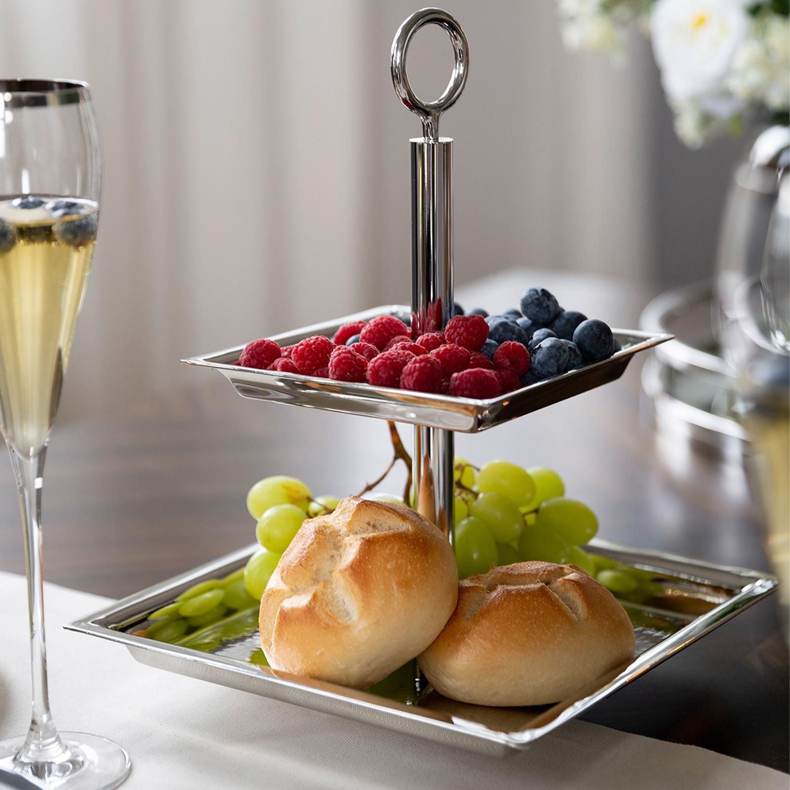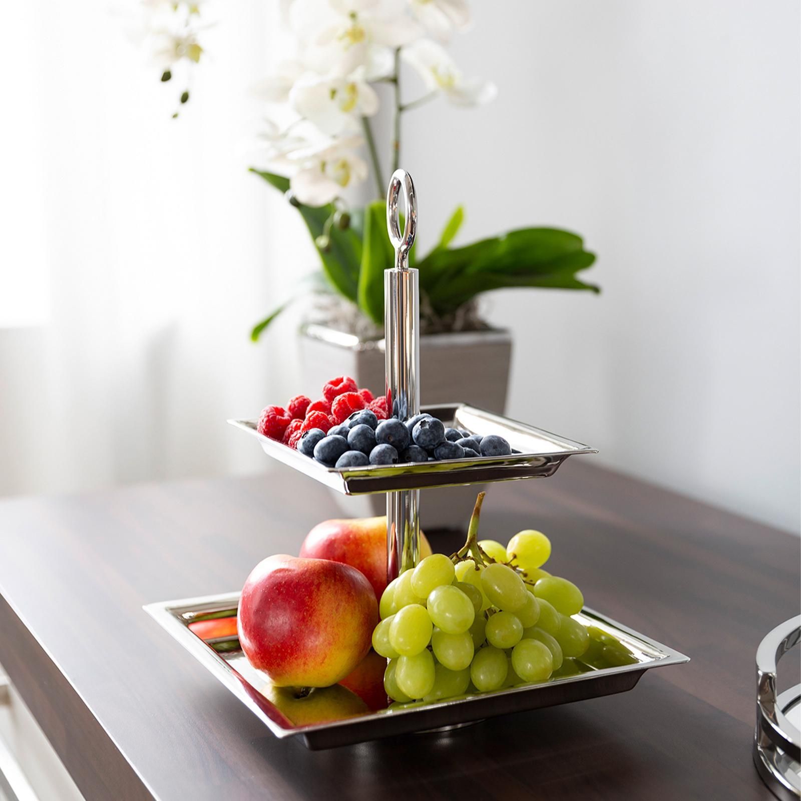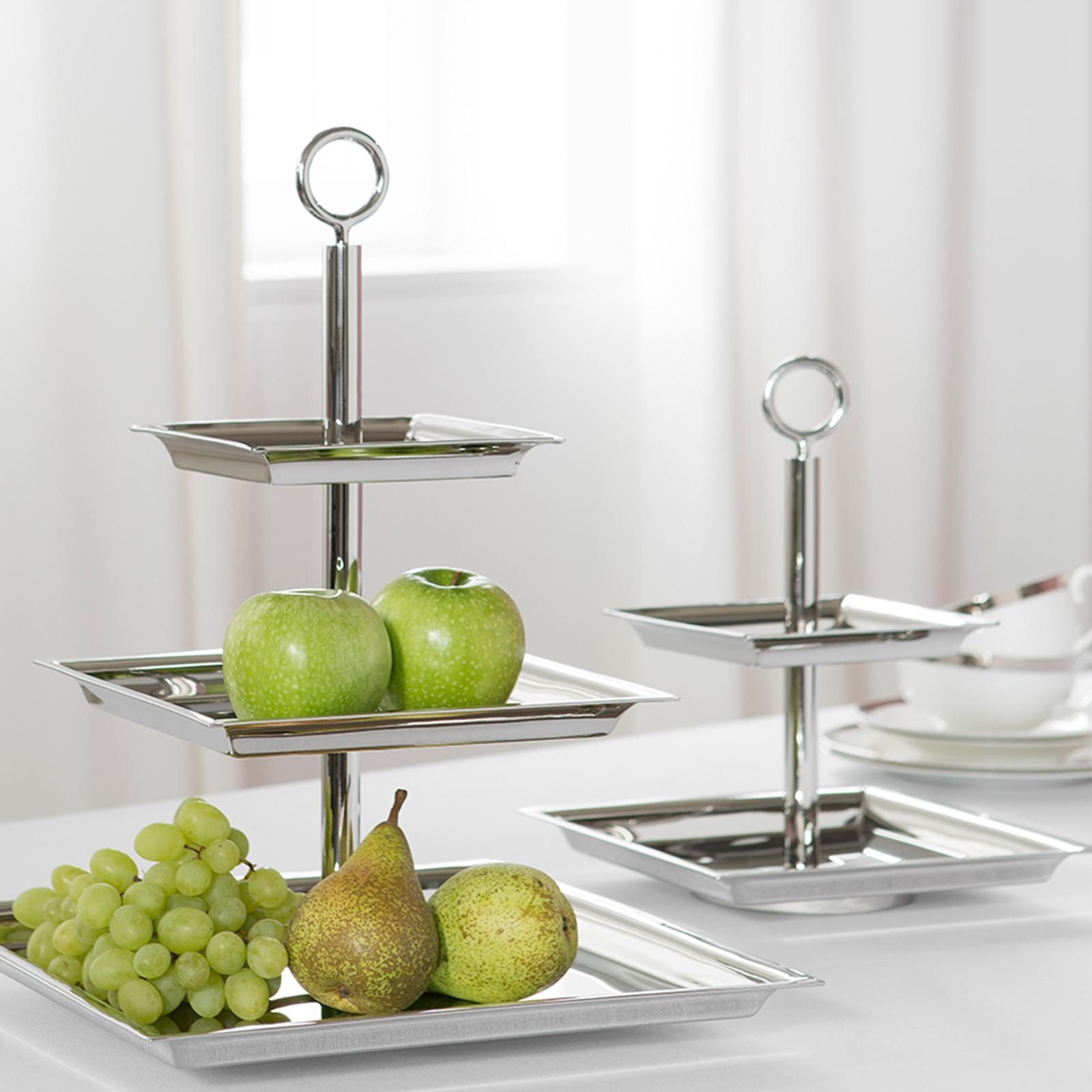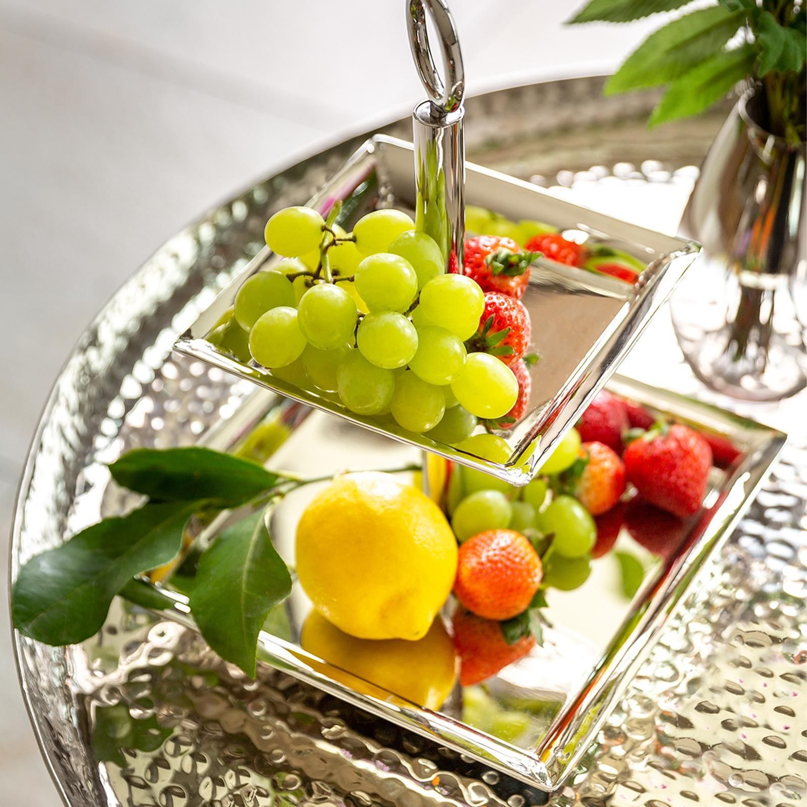 Fink Fink 2-stöckige Etagere 24x24 cm Stufentablett eckig Edelstahl mit rundem Griff