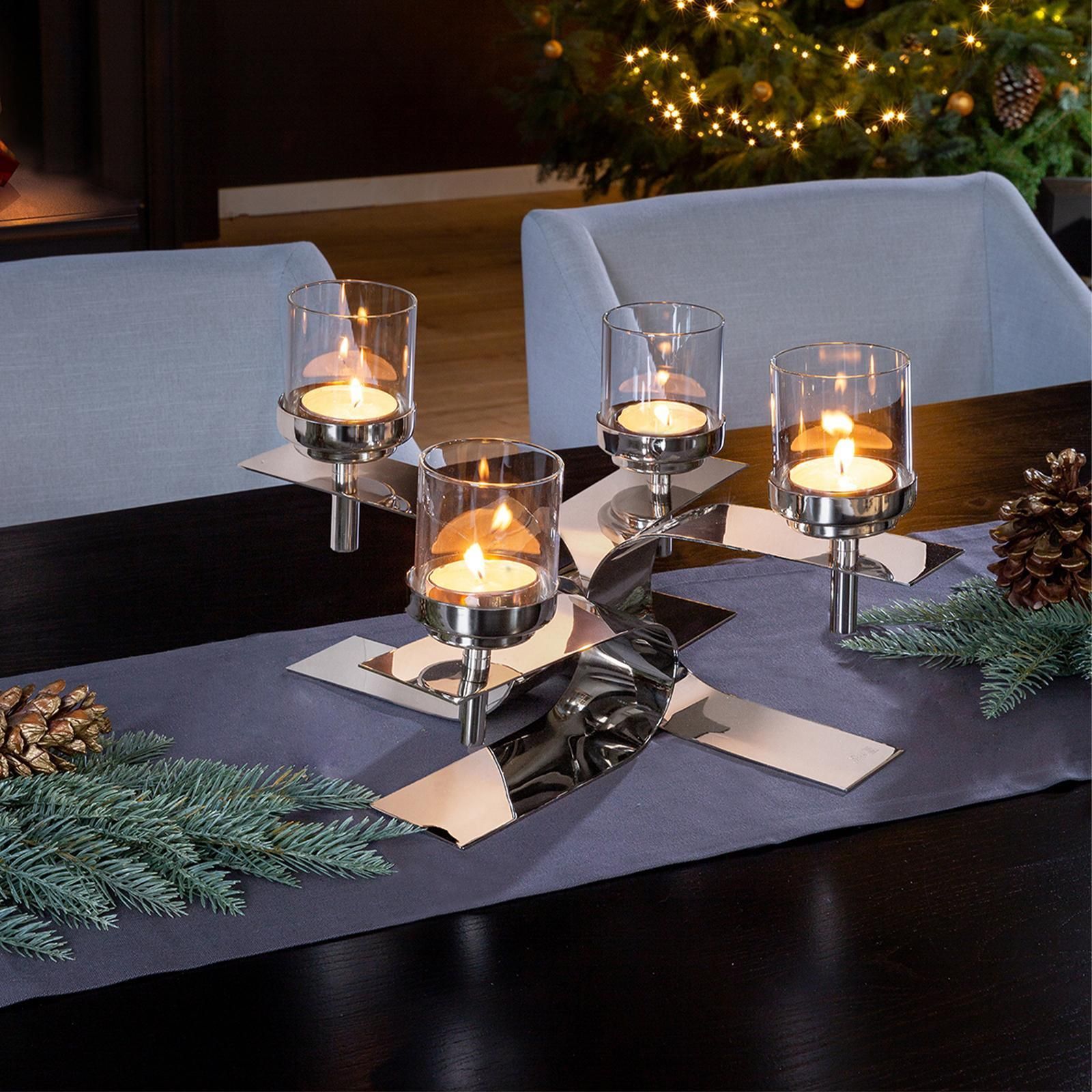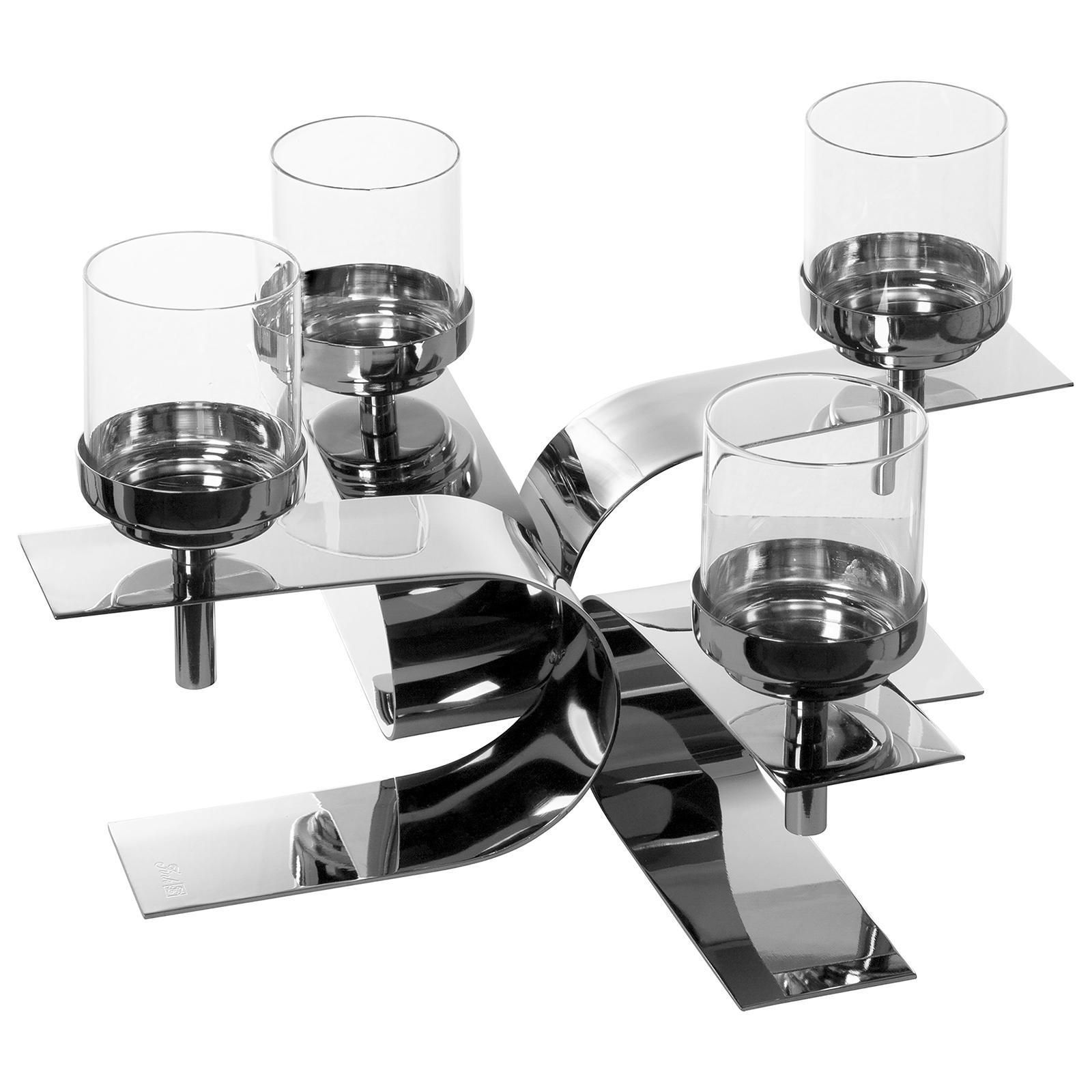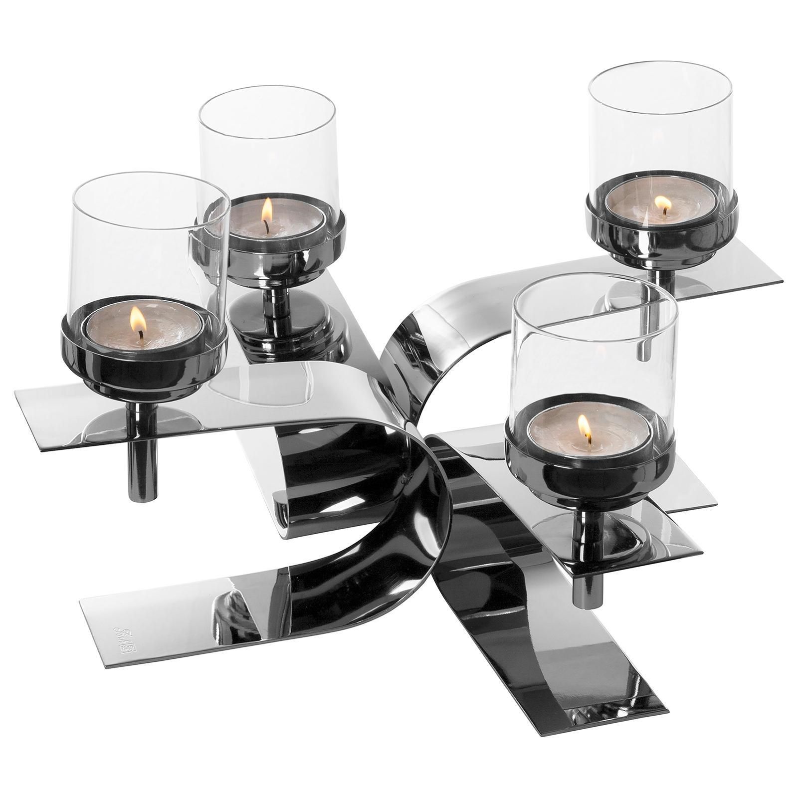 Fink Fink 4-armiger Teelichthalter 42x42 cm 4-flammiger Alu Kerzenhalter inkl. Gläser