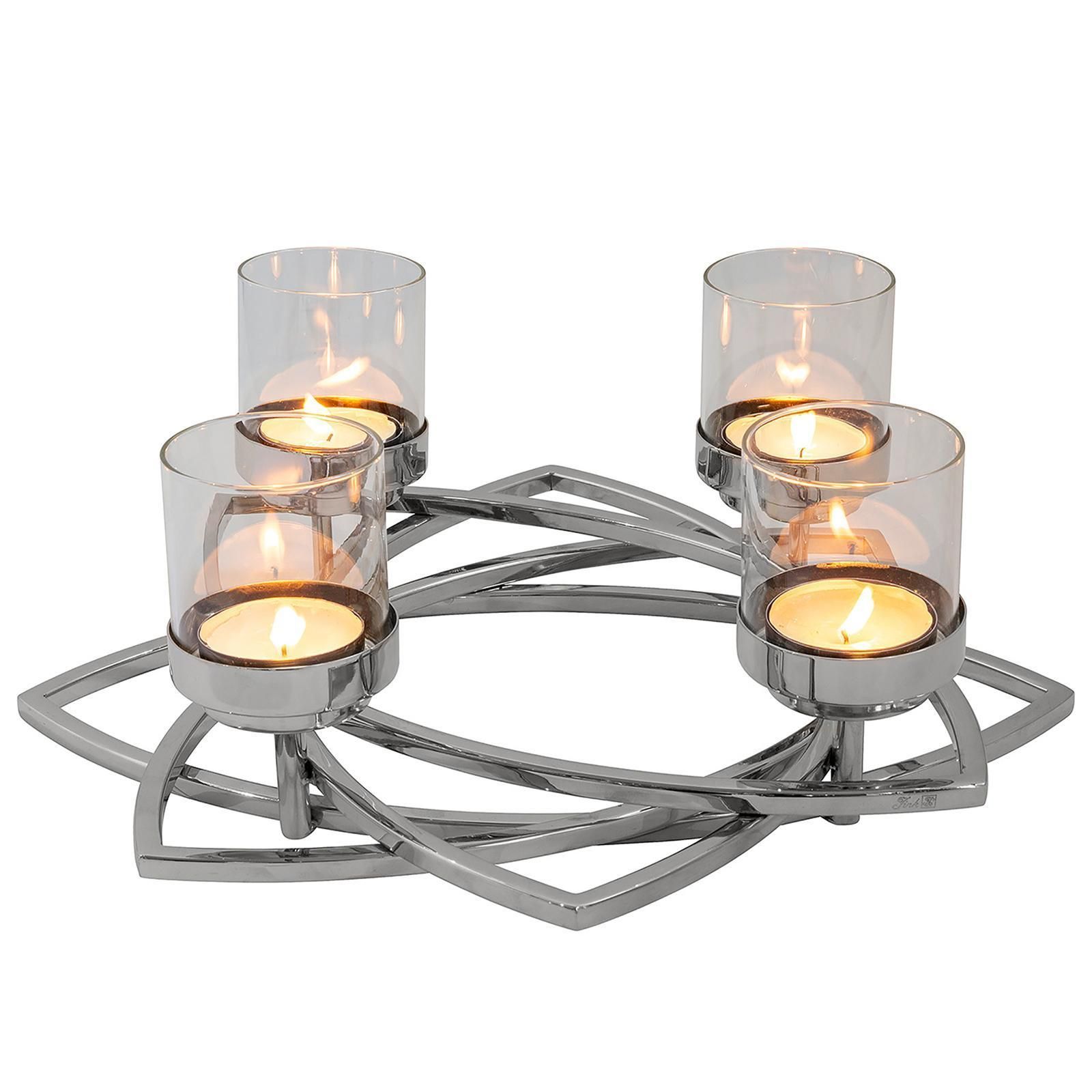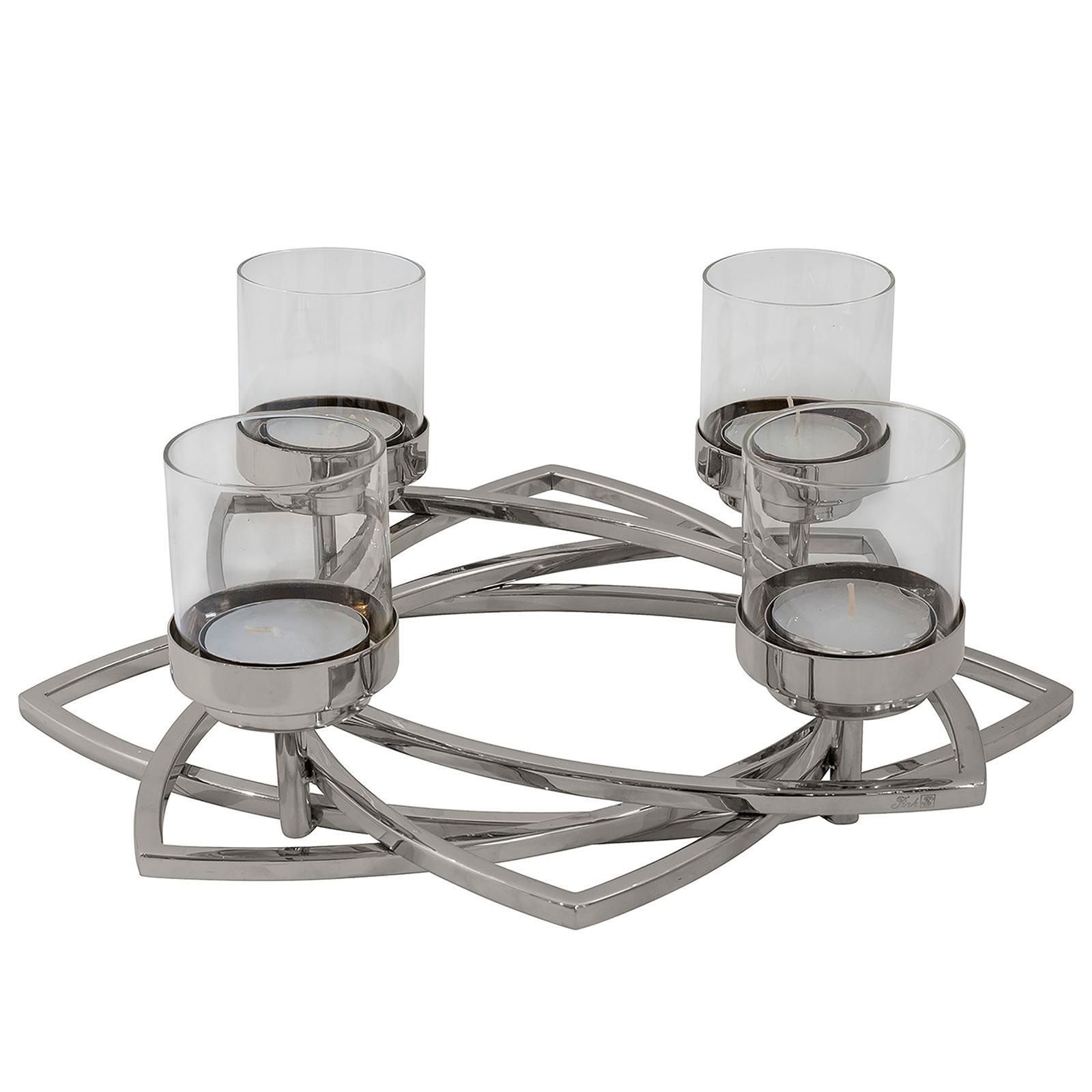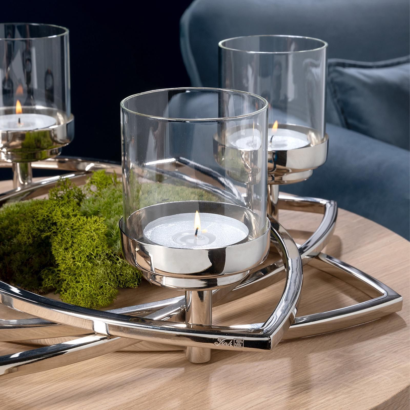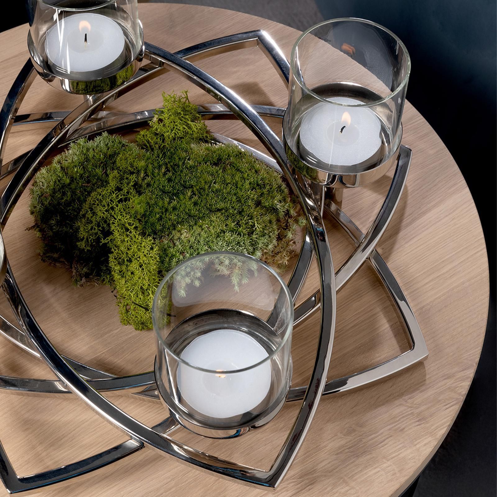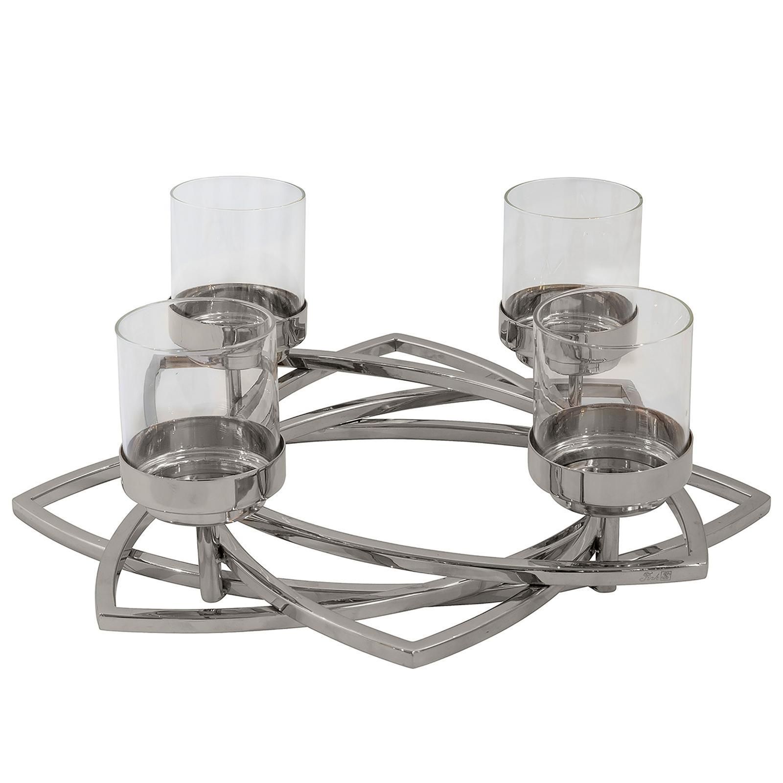 Fink Fink 4-flg. Edelstahl Kerzenhalter Ø43cm mit Glas für Stumpenkerzen & Teelichter