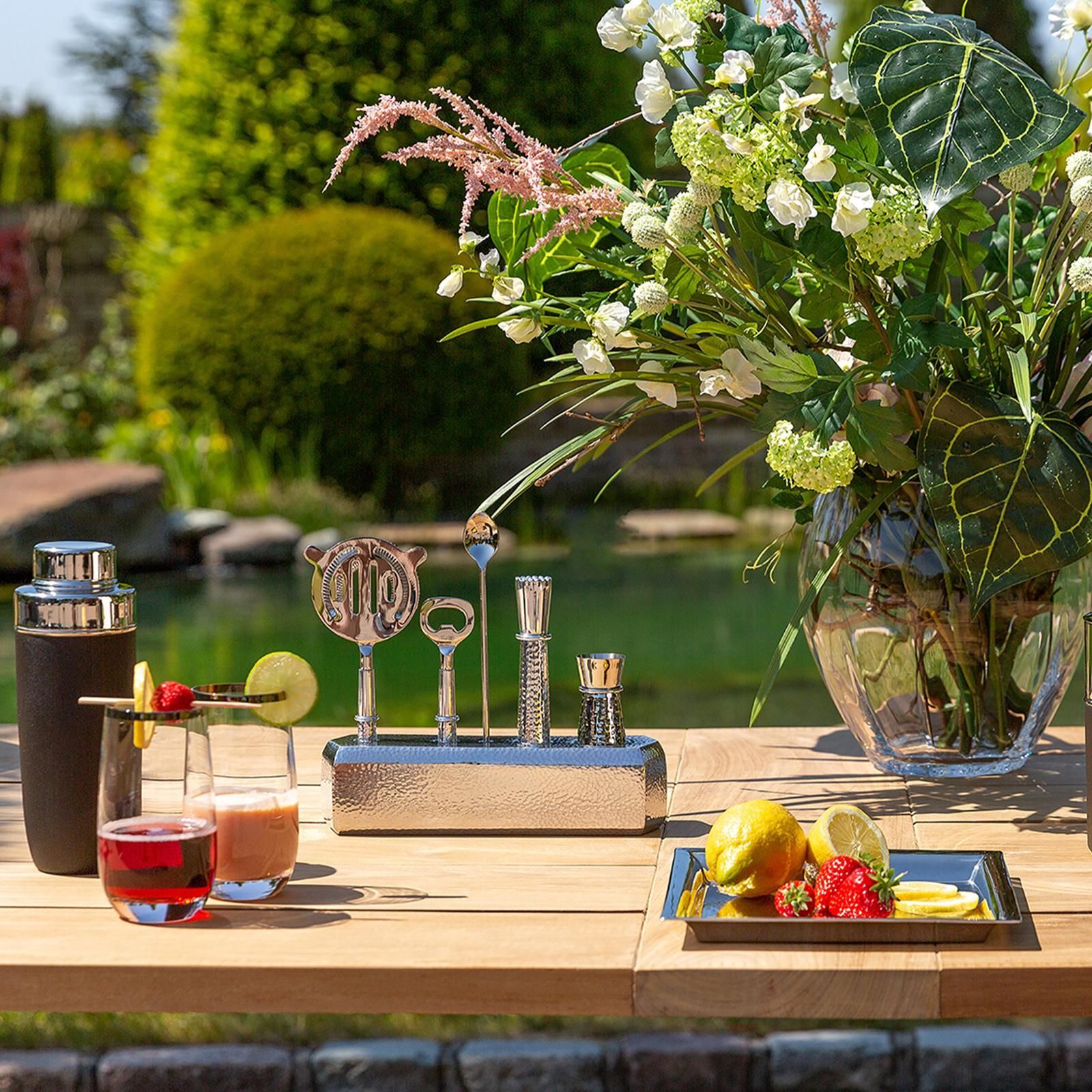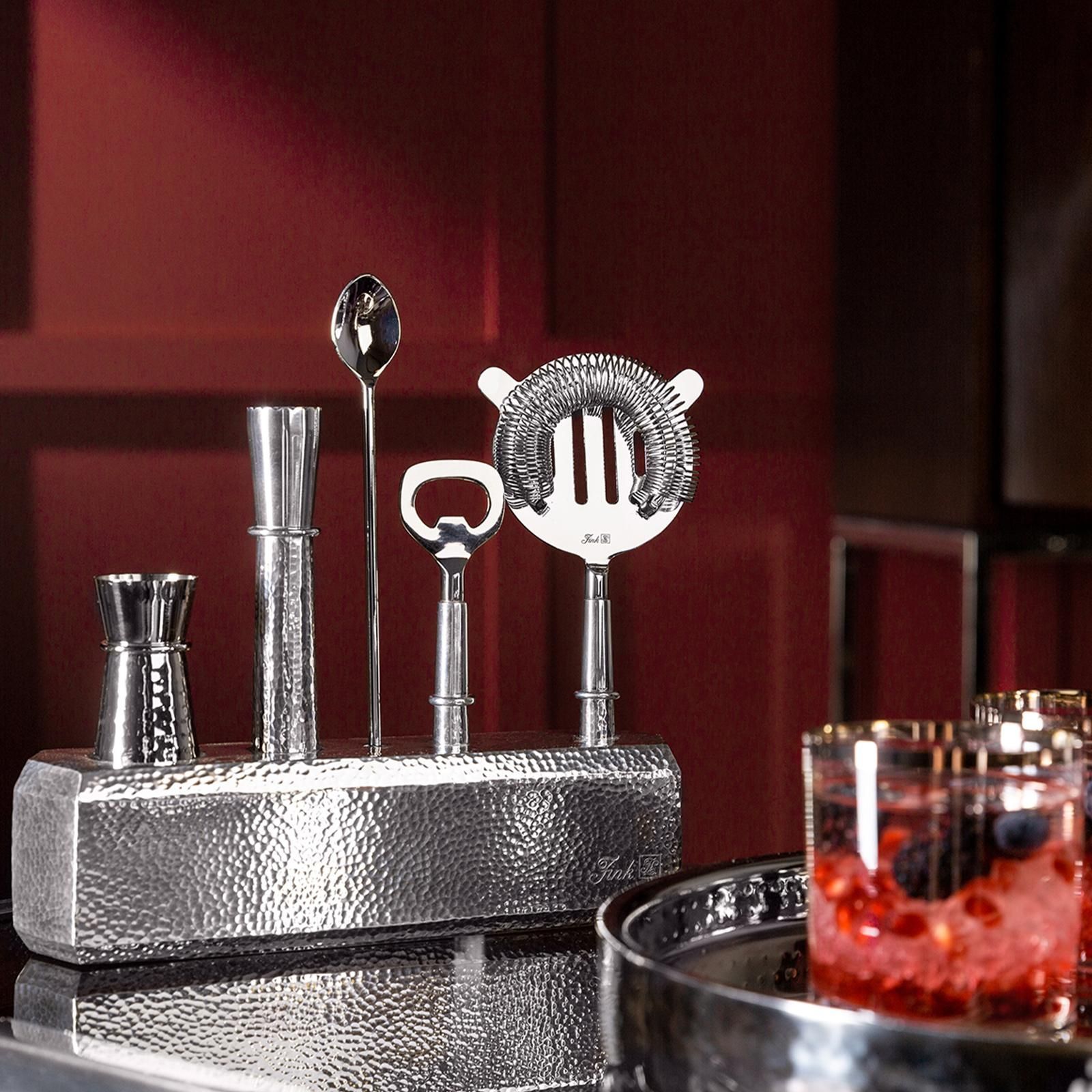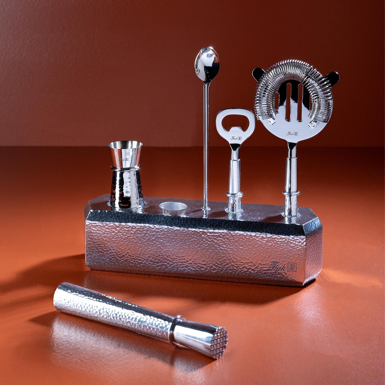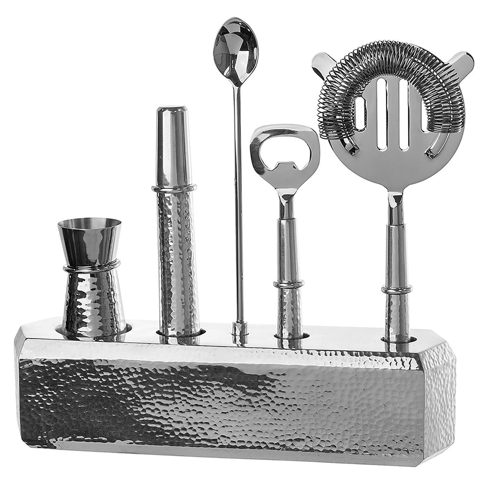 Fink Fink 6-teiliges Bar-Set Aluminium gehämmert Barzubehör im Ständer 26x27 cm