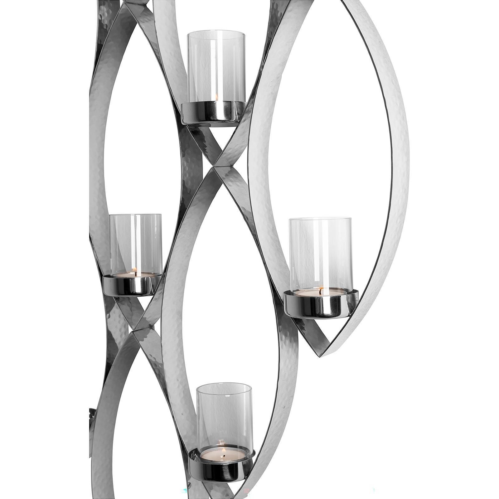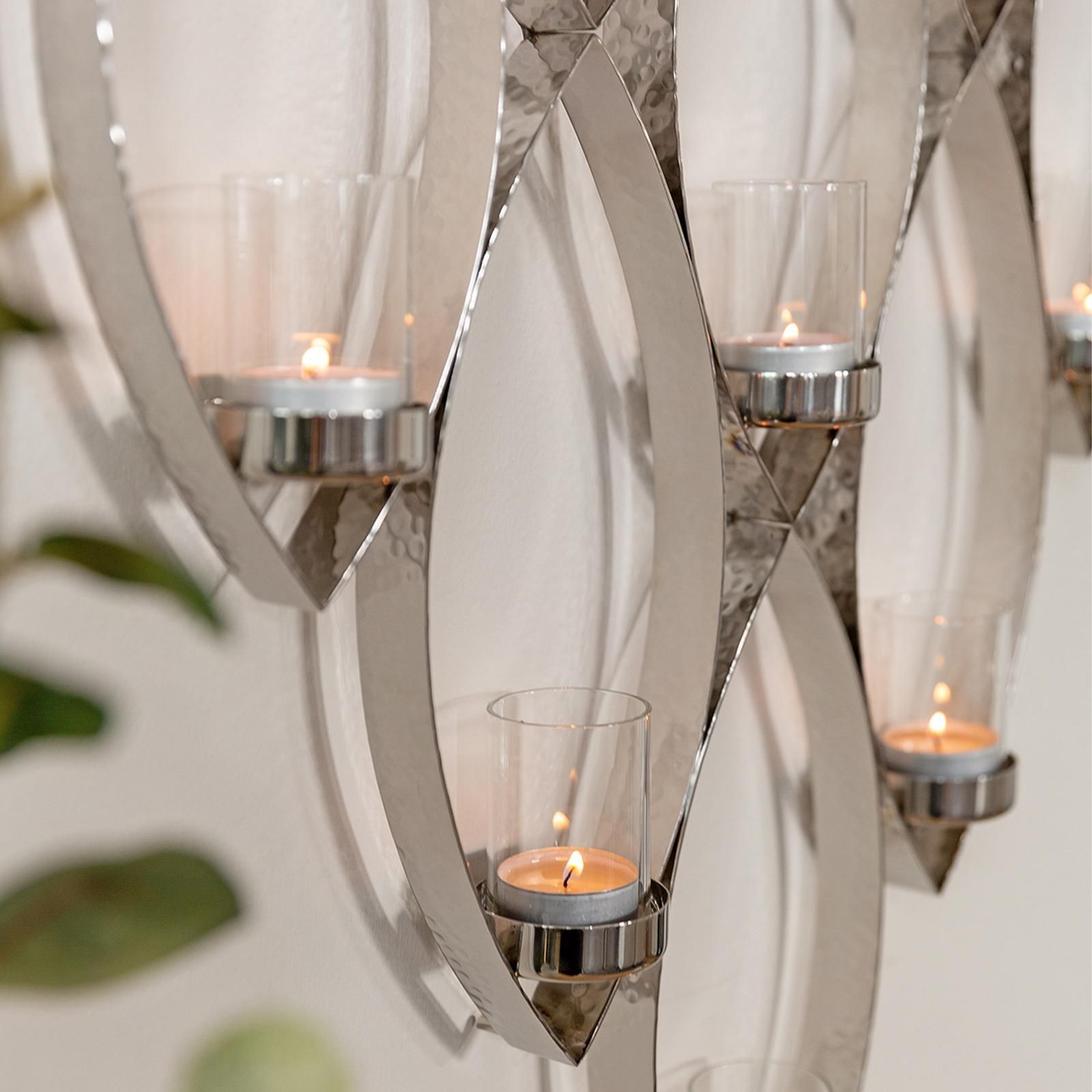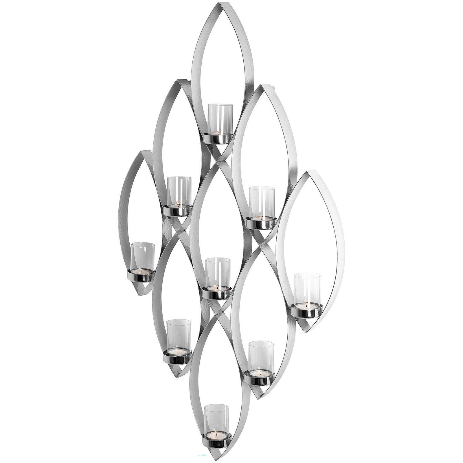 Fink Fink 9-flammiger Wand-Teelichthalter 84cm aus gehämmerten Edelstahl inkl. Gläser