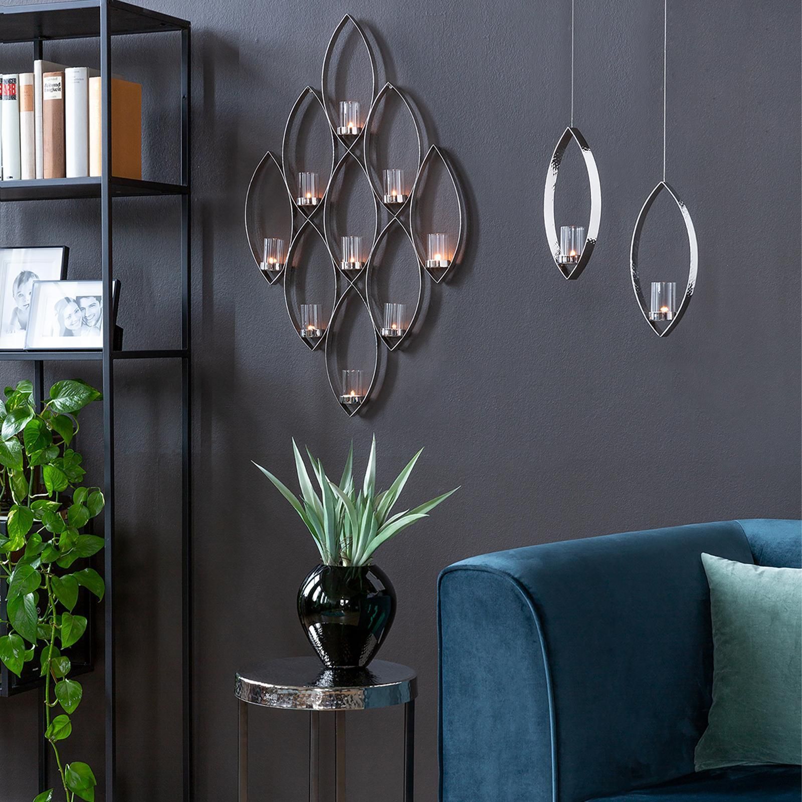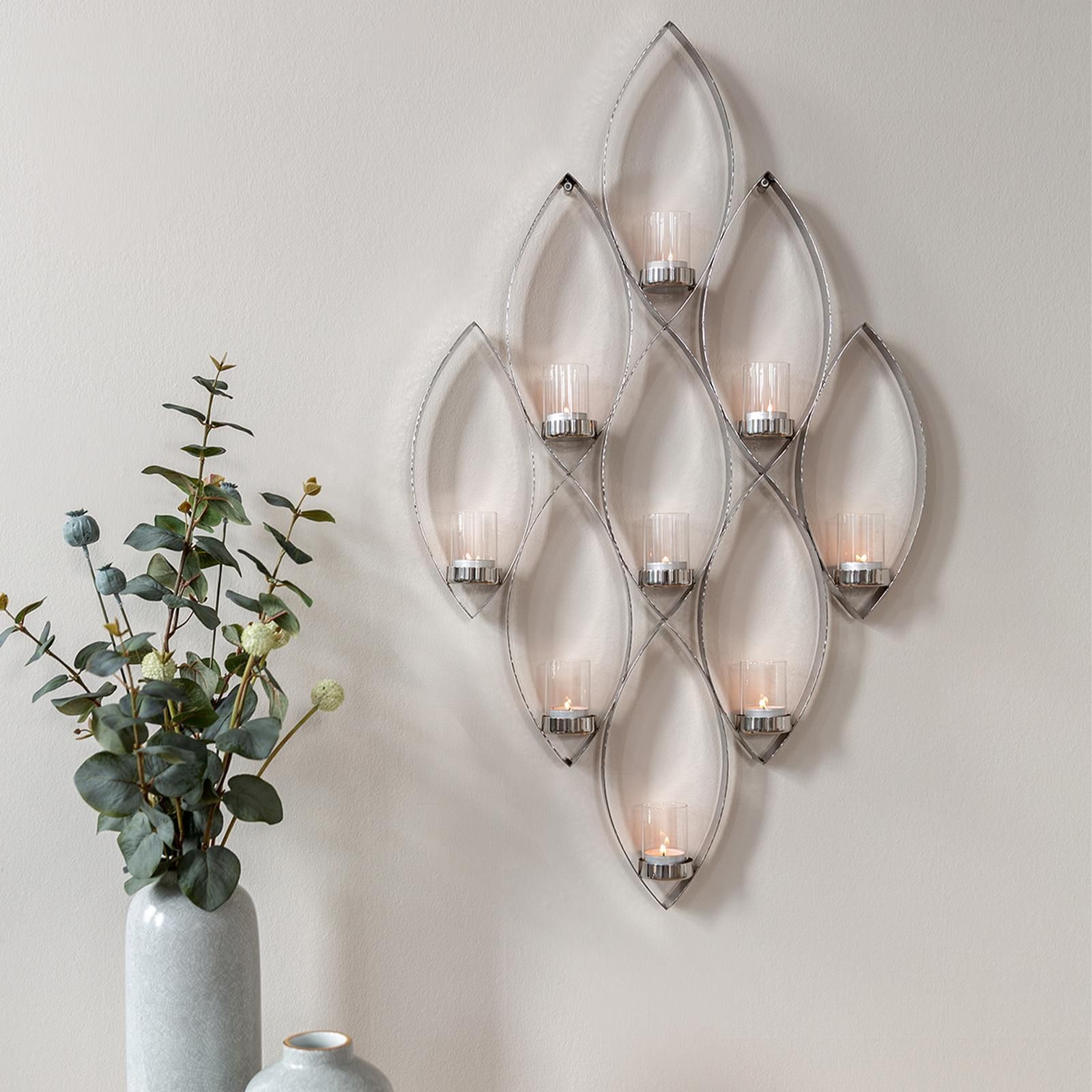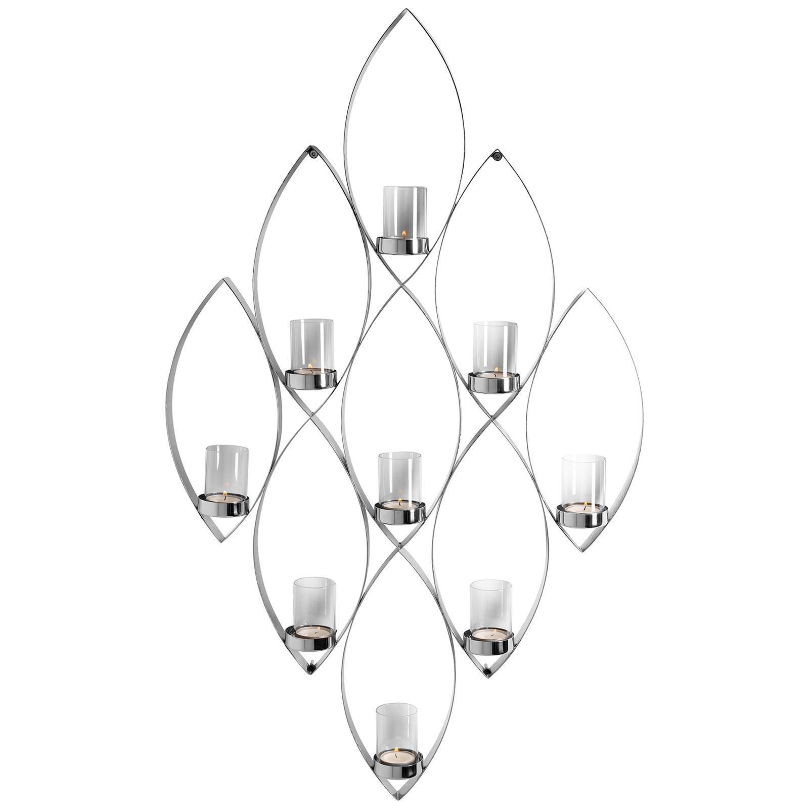 Fink Fink 9-flammiger Wand-Teelichthalter 84cm aus gehämmerten Edelstahl inkl. Gläser