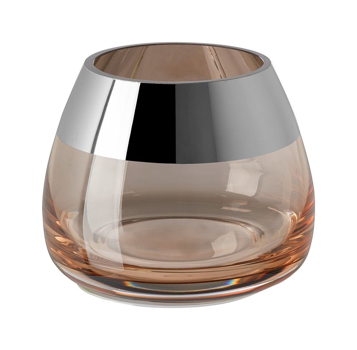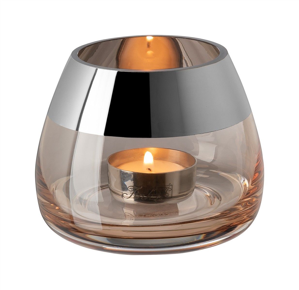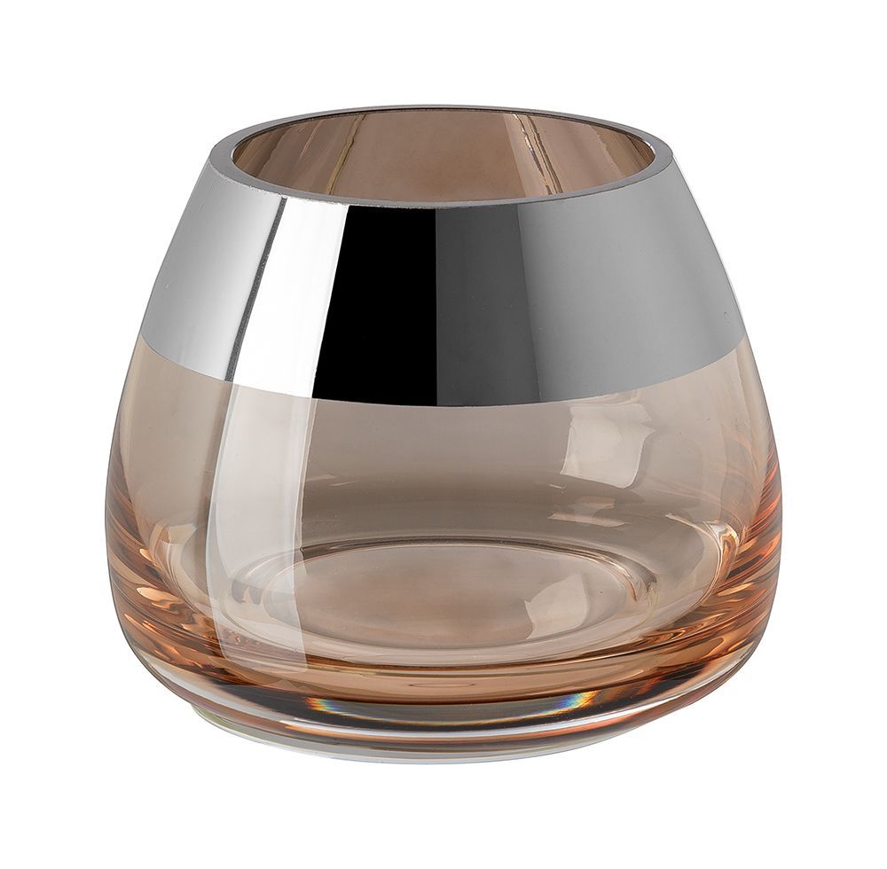 Fink Fink BELLA, Teelichthalter, Glas, glatt, silberfarben, sand, L. 11 cm, B. 11 cm,
