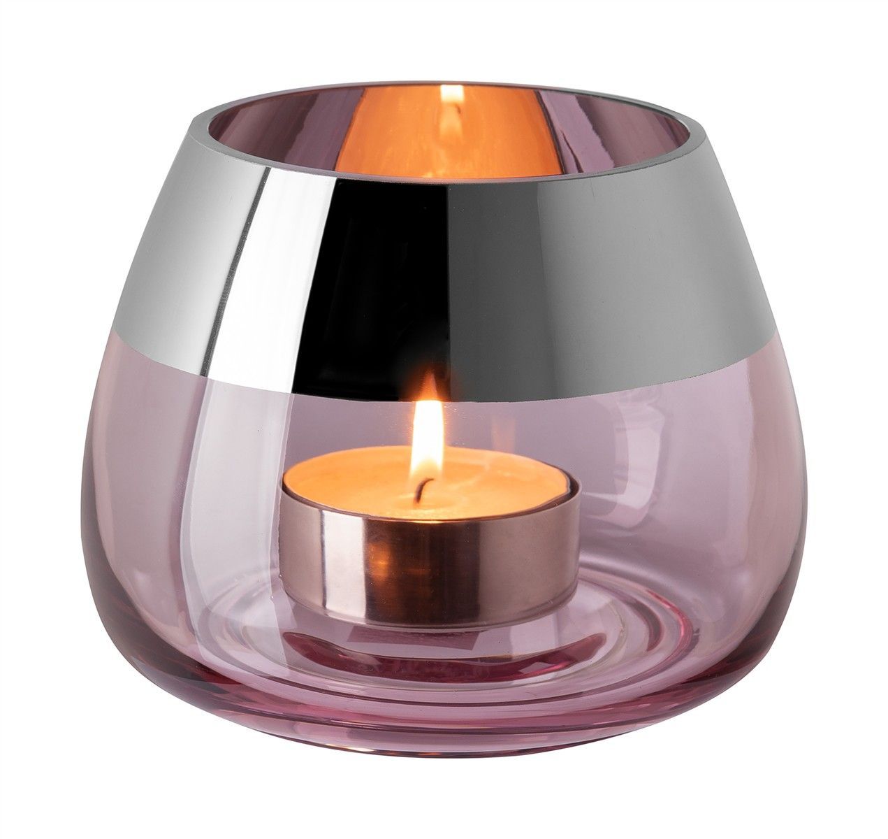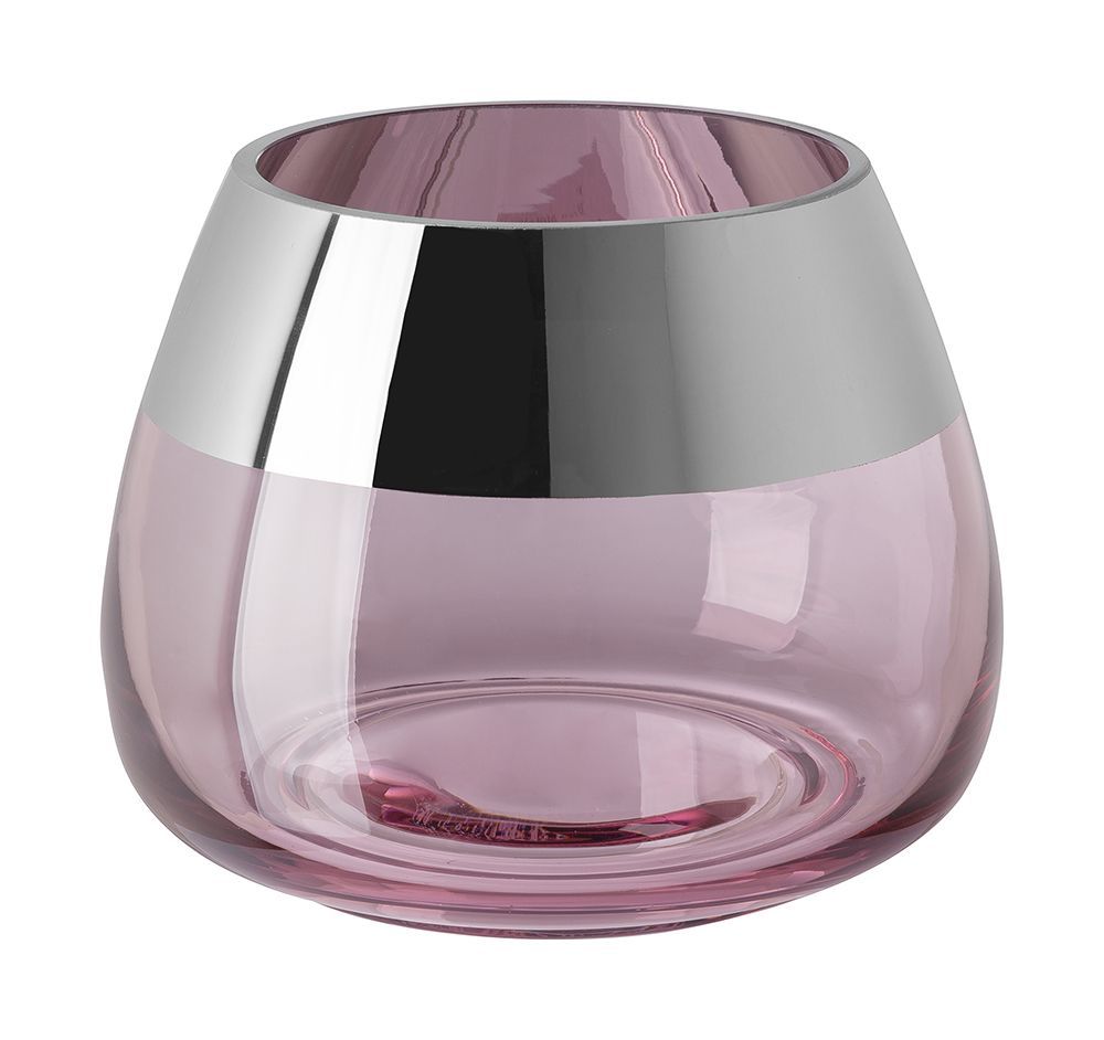 Fink Fink BELLA, Teelichthalter, Glas, Silberfolie, silberfarben, rose, L. 15 cm, B