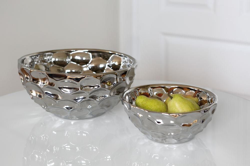 Fink Fink BORA, Schale, Keramik, silberfarben, H. 9 cm, D. 21 cm Höhe: 8.50 cm Durchmes
