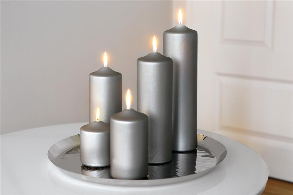 Fink Fink CANDLE, metallic Stumpenkerze, Paraffin, grau, H. 25 cm, D. 8 cm 123744