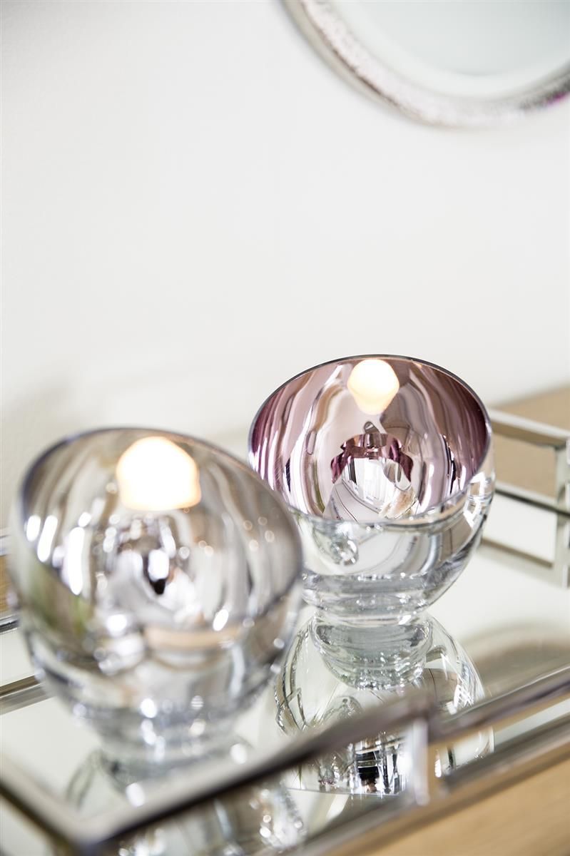 Fink Fink CANDY, Teelichthalter, Glas, silberfarben, H. 11 cm, D. 11 cm Höhe: 11.00 cm
