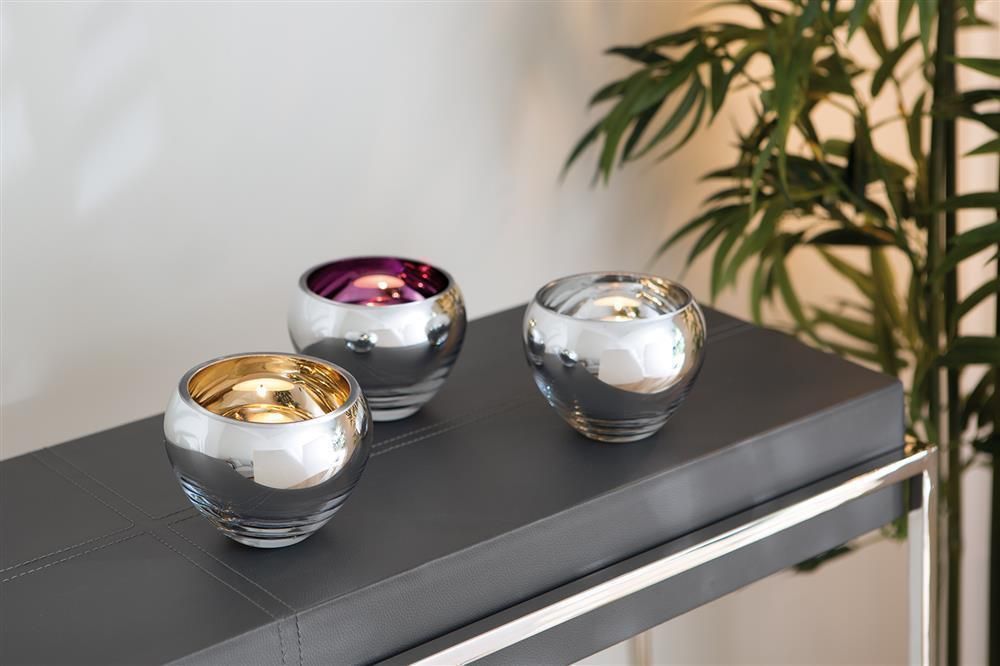 Fink Fink COLORE, Teelichthalter, Glas, glatt, goldfarben, L. 11 cm, B. 11 cm, H. 9
