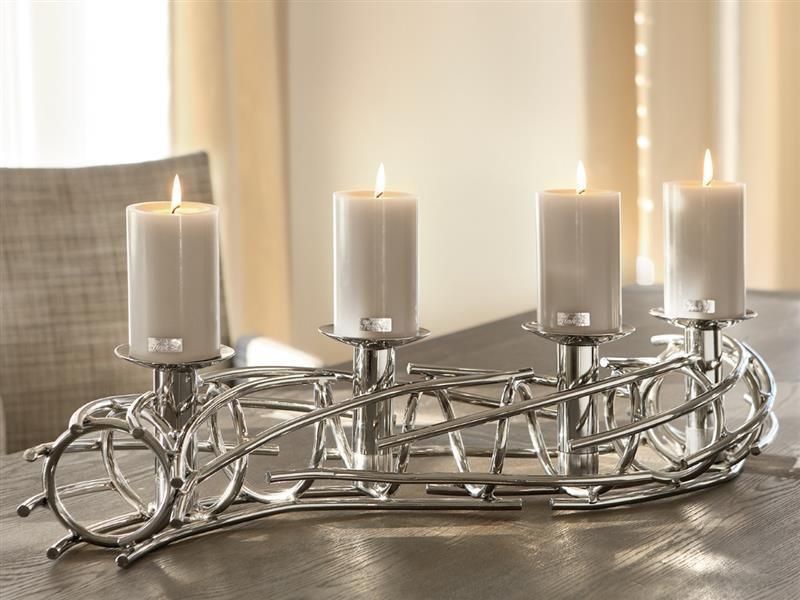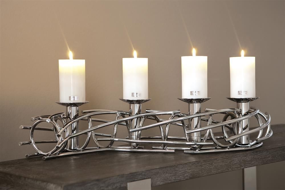 Fink Fink CORONA, Stumpenkerzenleuchter, 4-flammig, vernickelt, silberfarben, L. 104