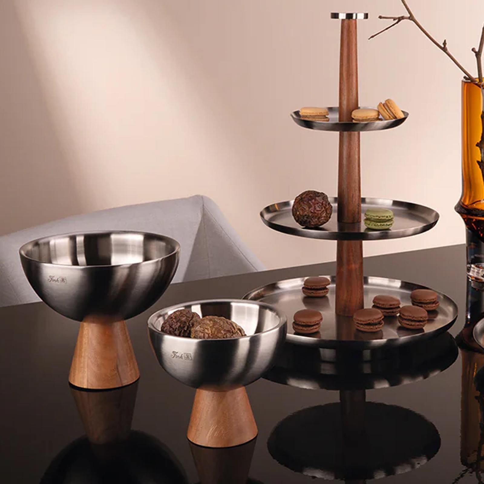 Fink Fink Deko Schale 19.5cm Edelstahl & Akazienholz-Fuß Edelstahlschale auf Standfuß