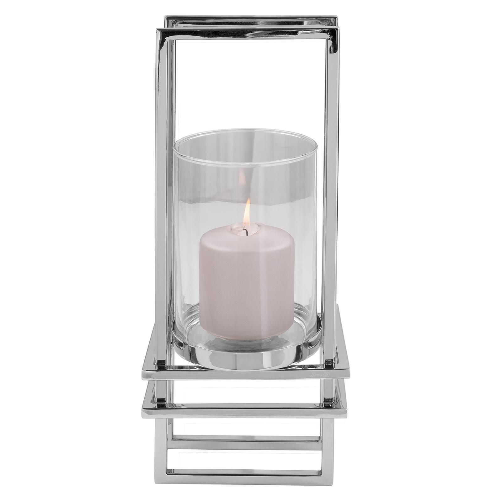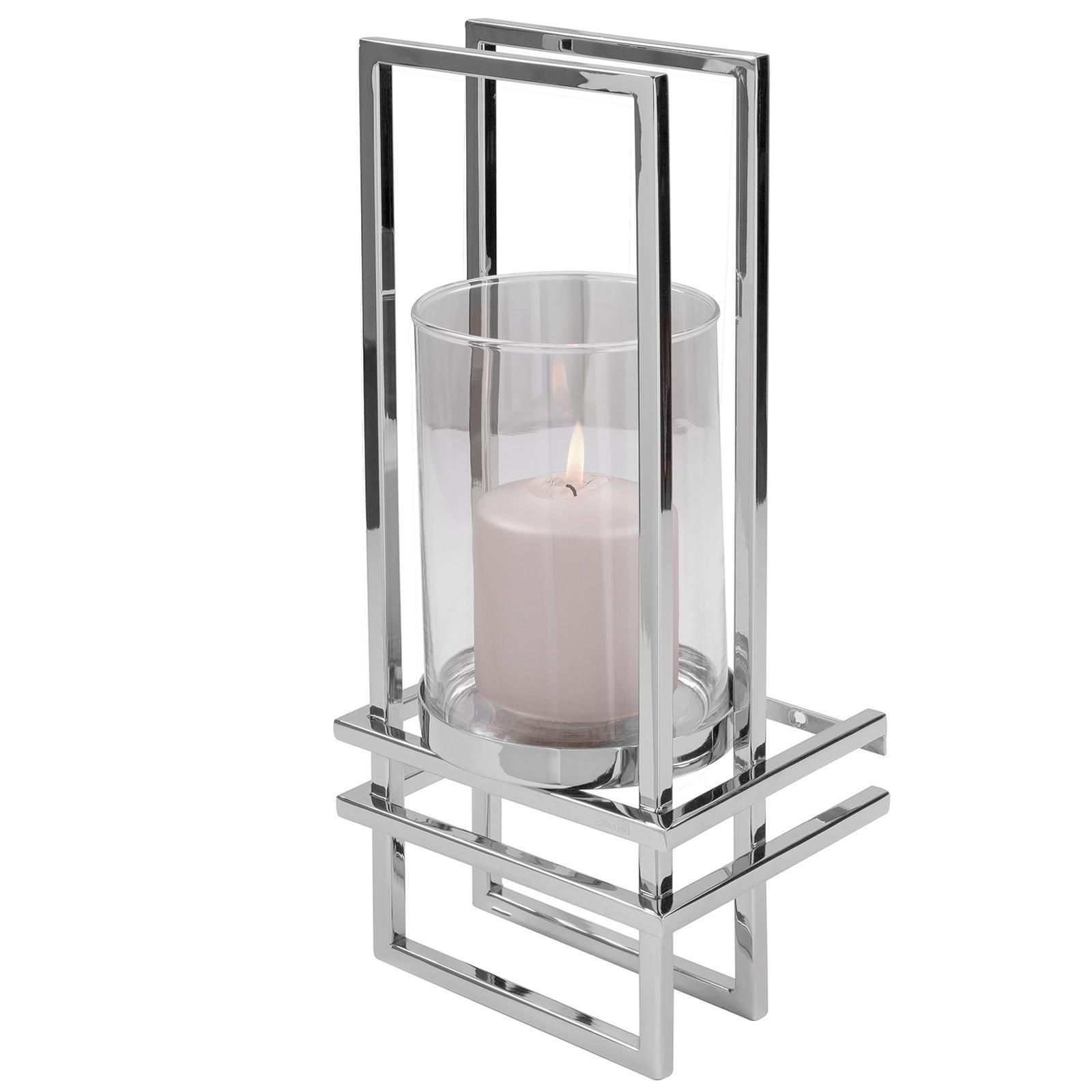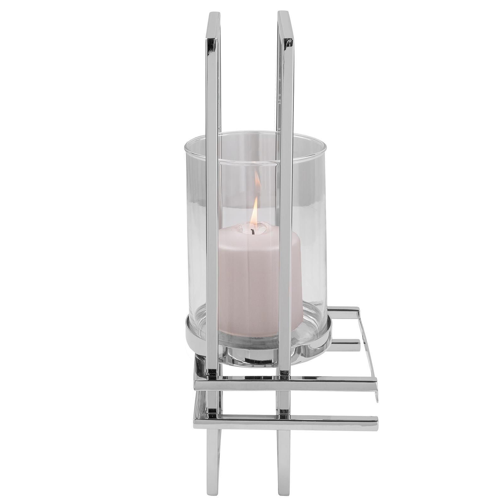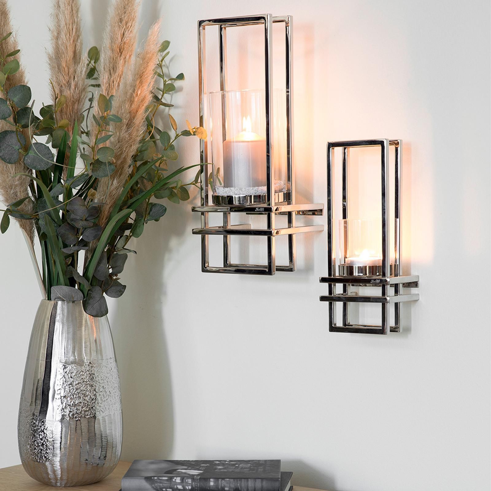 Fink Fink dekoratives Edelstahl Wand-Windlicht 41x16 cm Stumpenkerzenhalter mit Glas