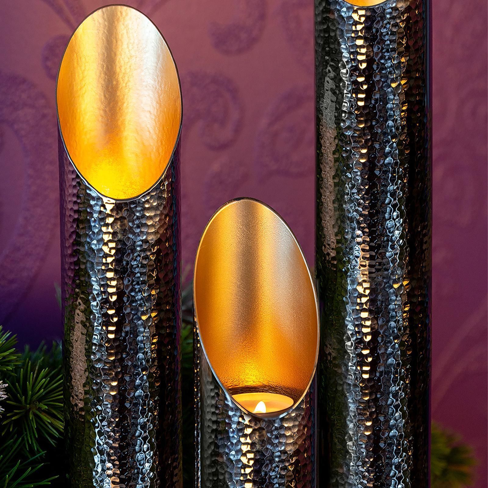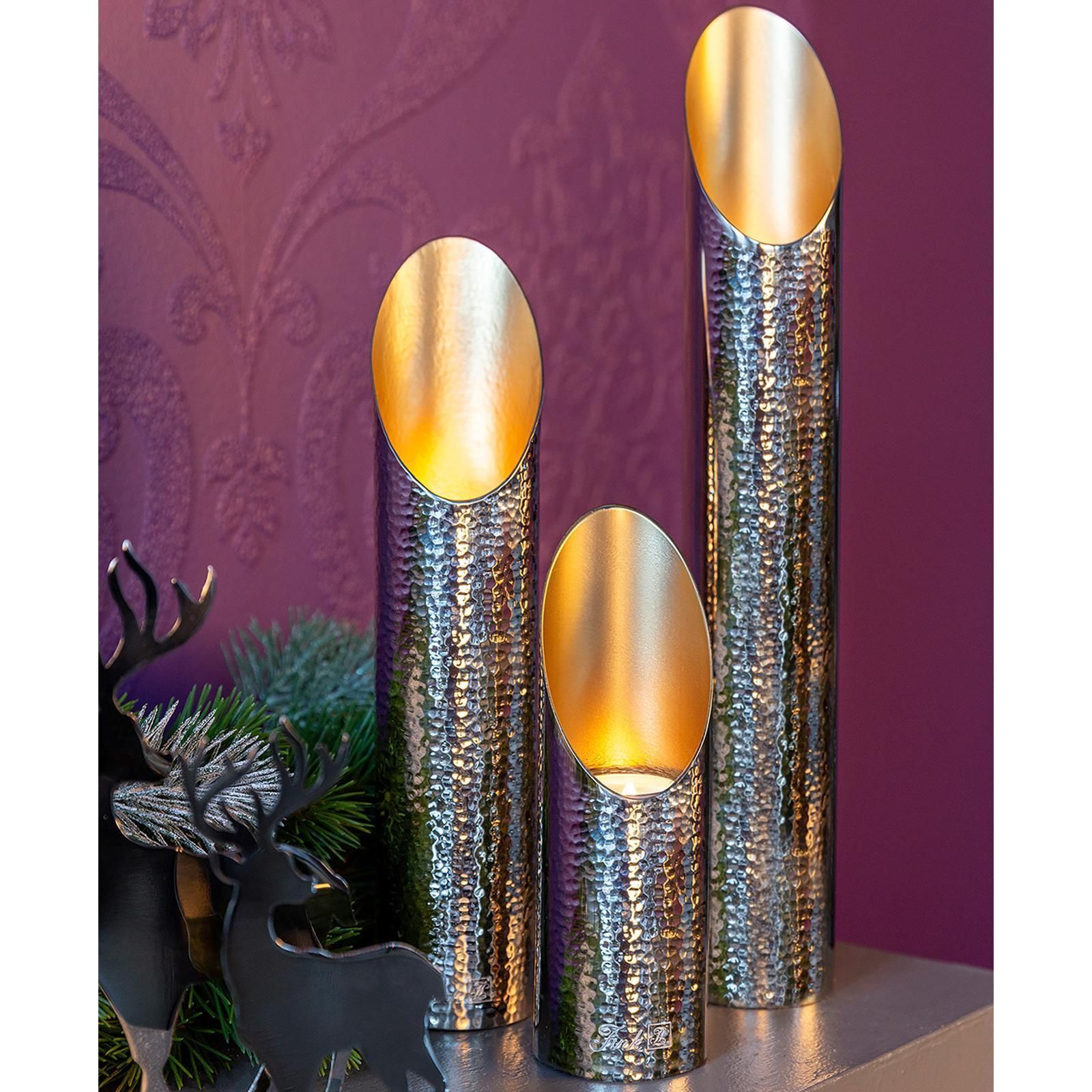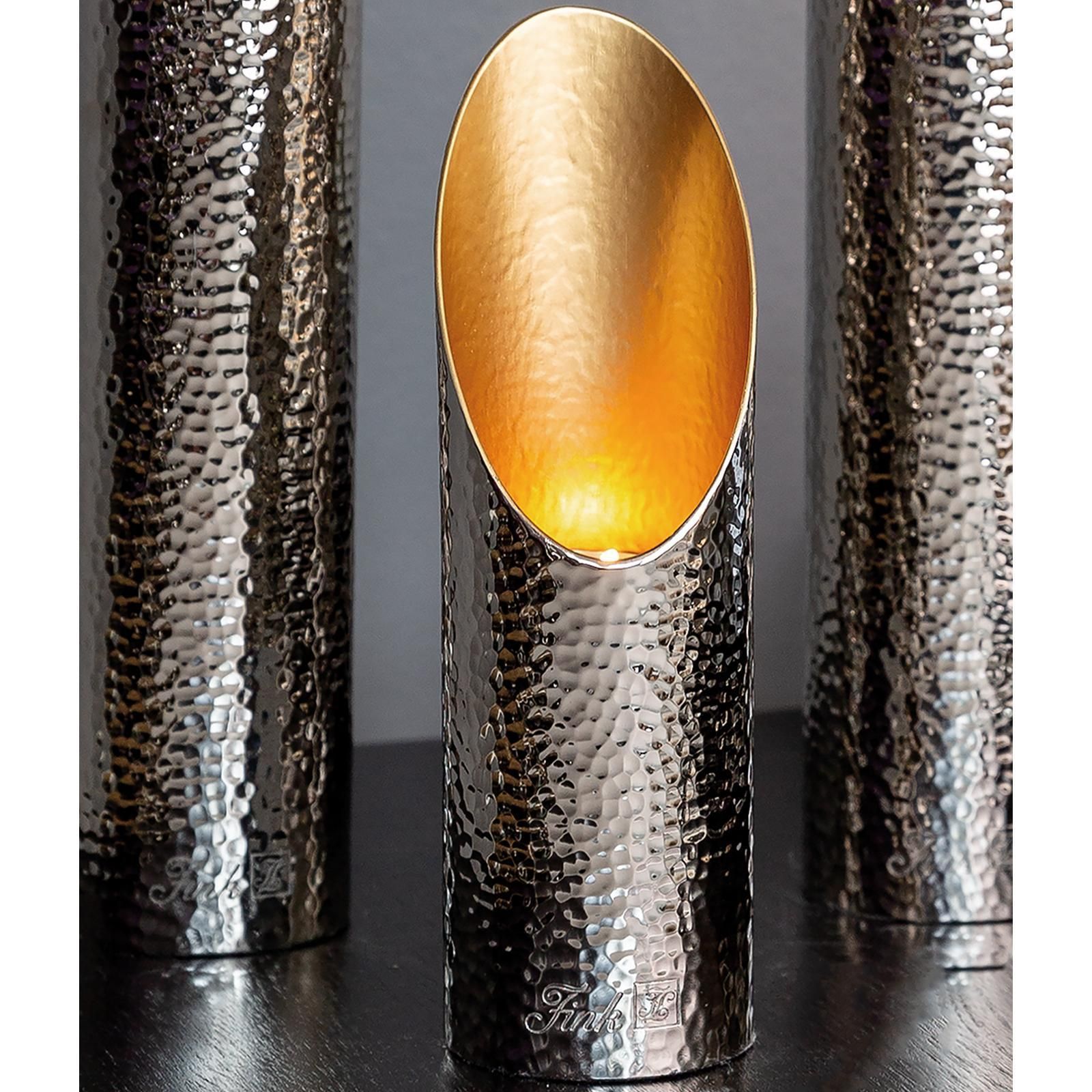 Fink Fink Design-Teelichthalter 20 cm Windlicht Alu gehämmerter Kerzenhalter silber