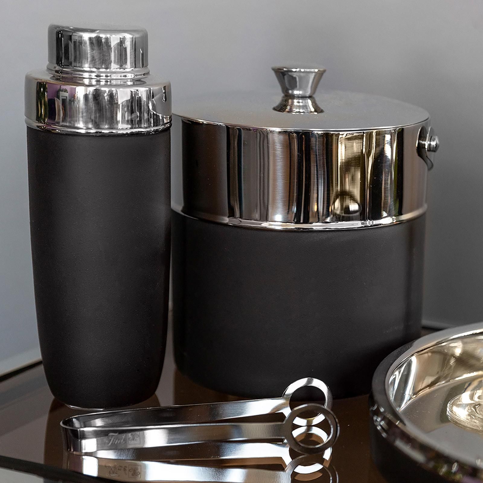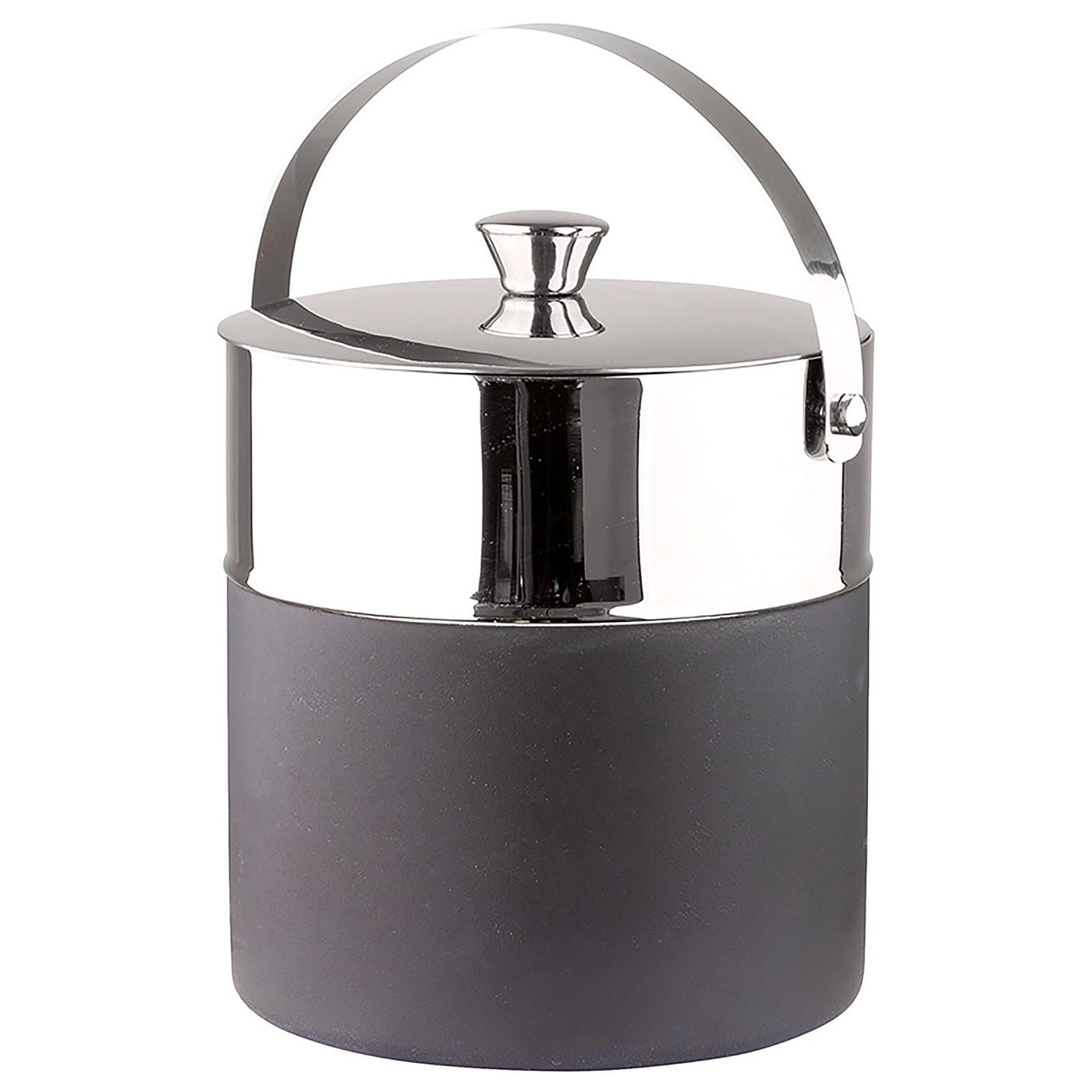 Fink Fink doppelwandiger Eiswürfeleimer 21 cm schwarz matter Eisbehälter mit Deckel