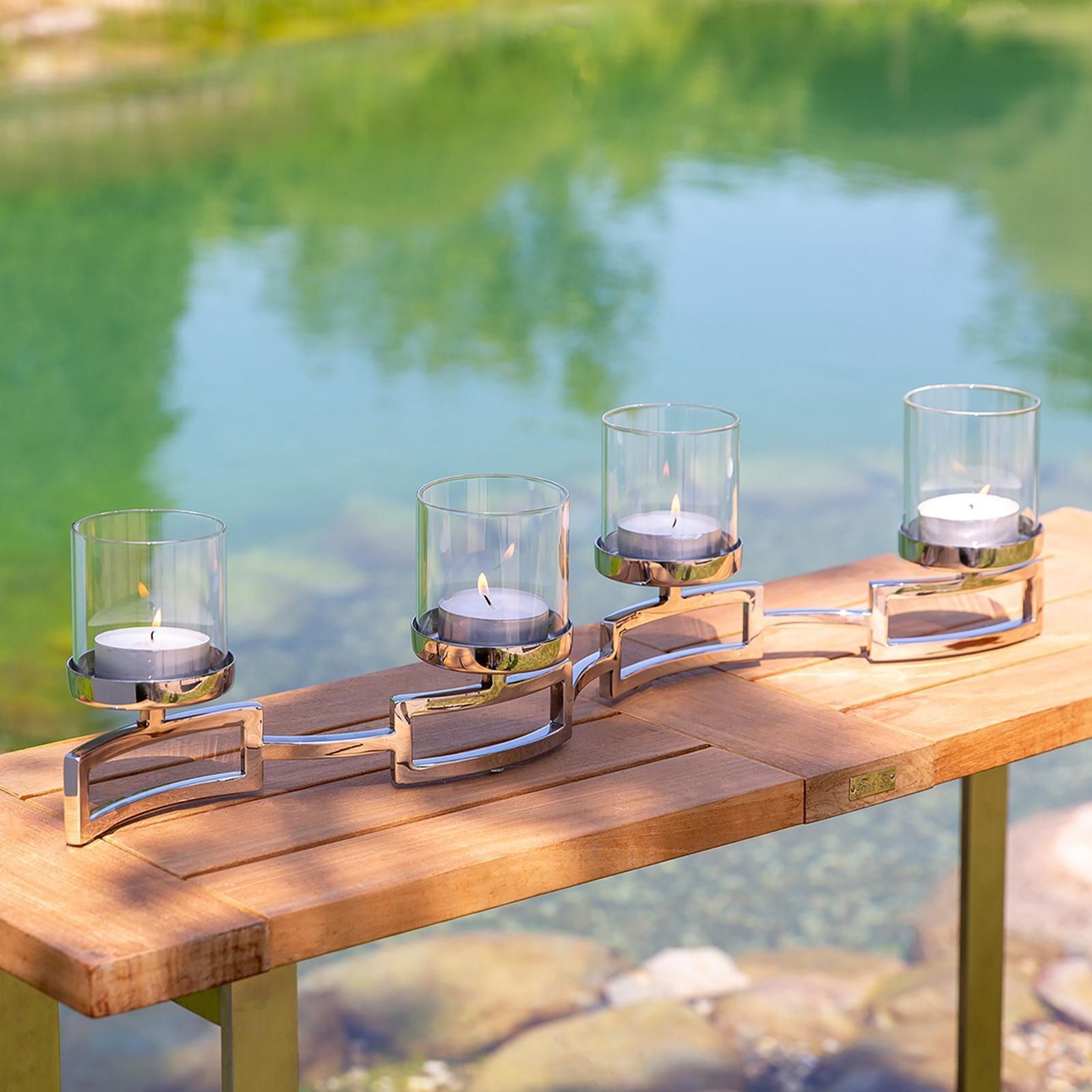 Fink Fink Edelstahl Teelichthalter 68 cm 4-flammiger Kerzenständer mit 4 Kerzengläser