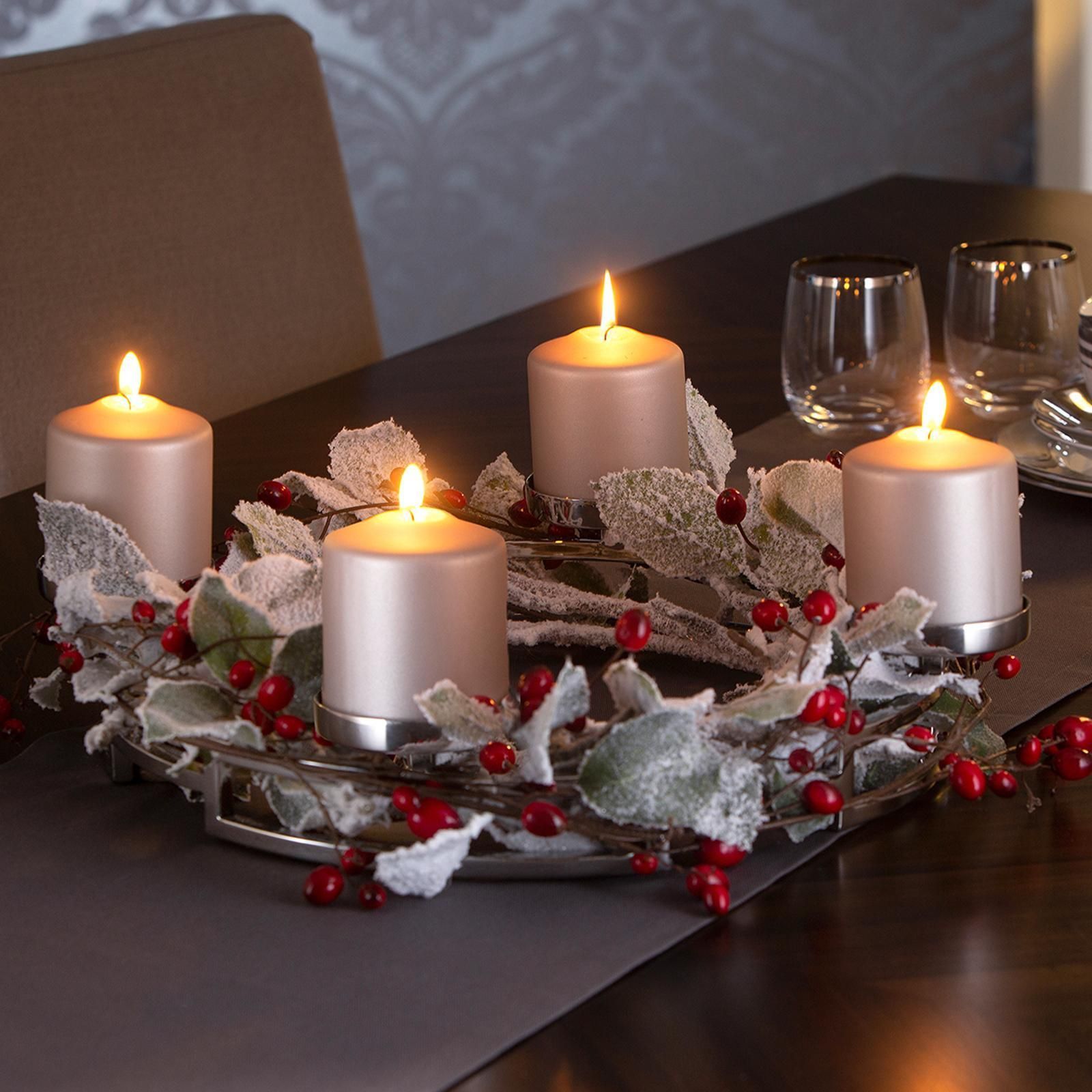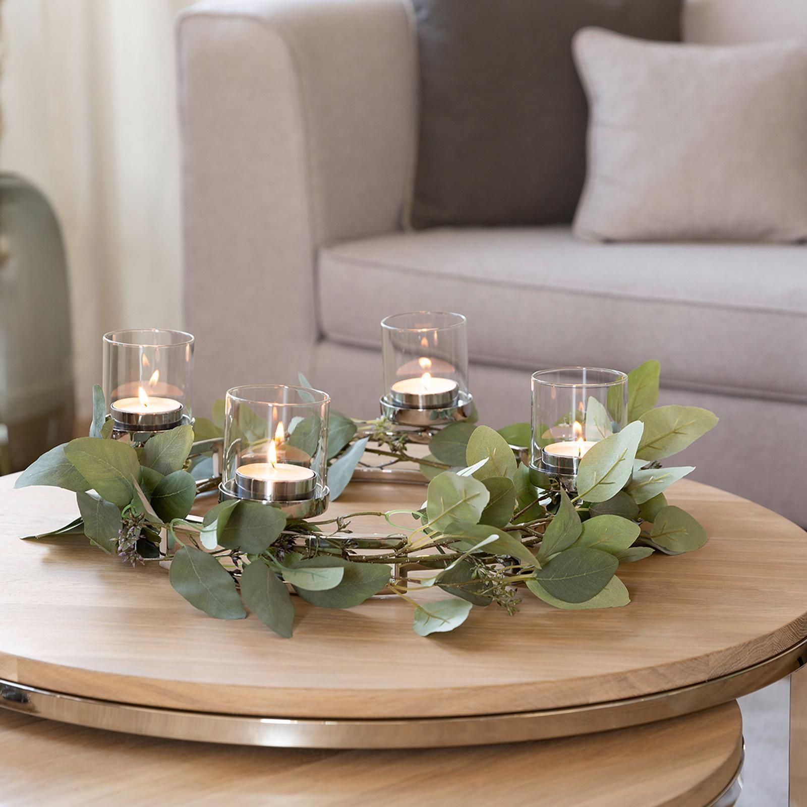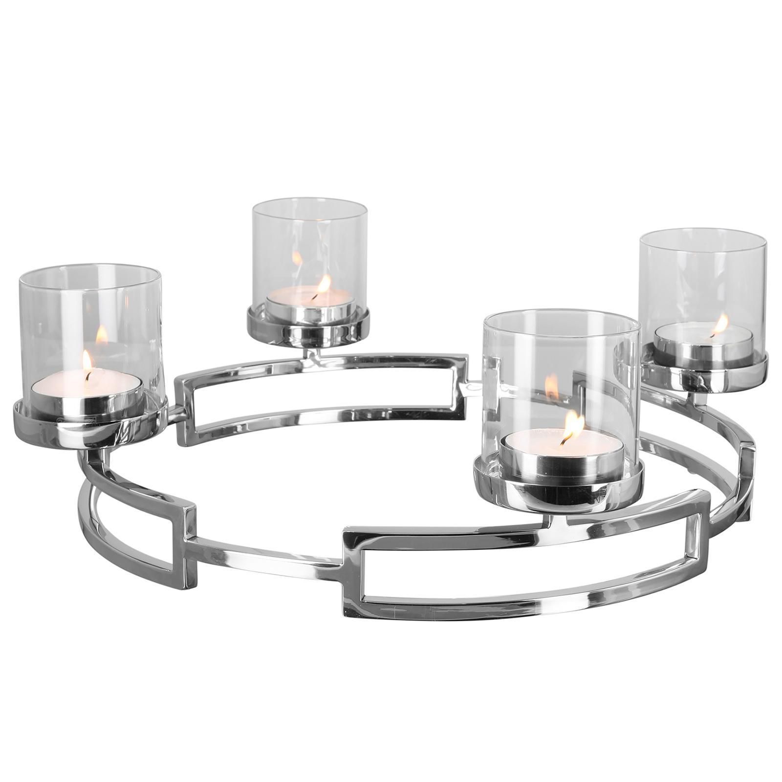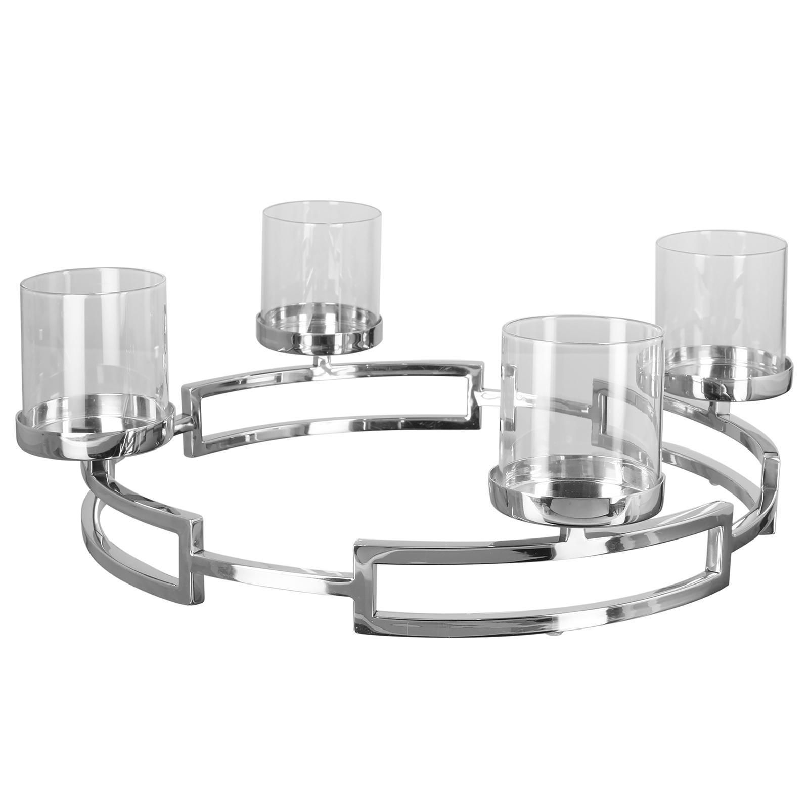Fink Fink Edelstahl Teelichtständer Ø 40 cm 4-flammig Kerzenhalter-Kranz inkl. Gläser