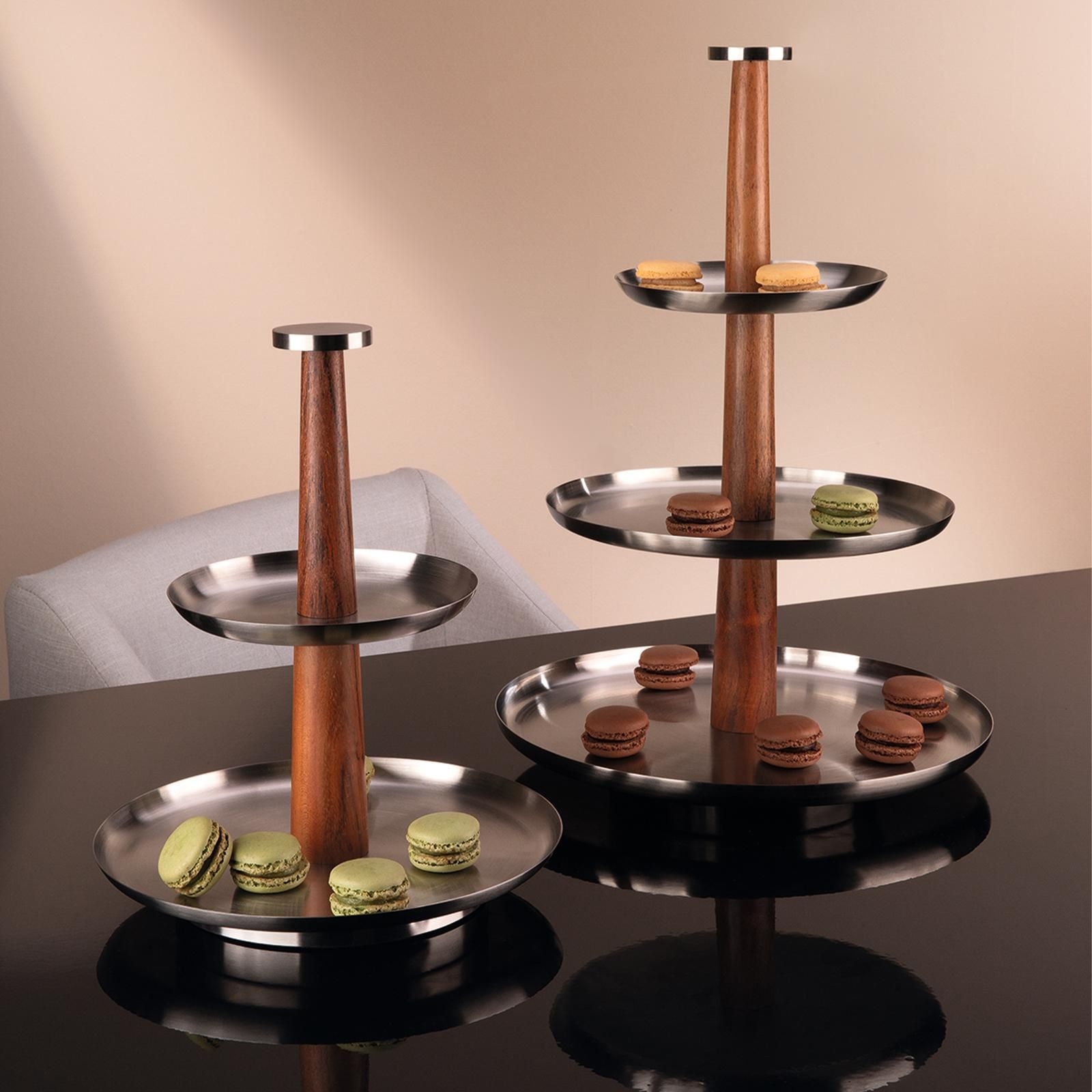 Fink Fink Etagere 27.8 x Ø 25 cm 2-stöckig Edelstahl & Akazienholz 2er Stufentablett