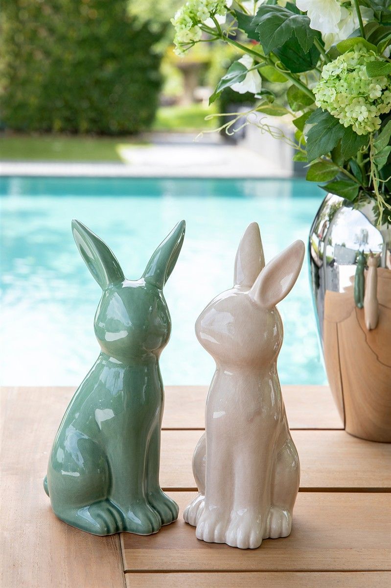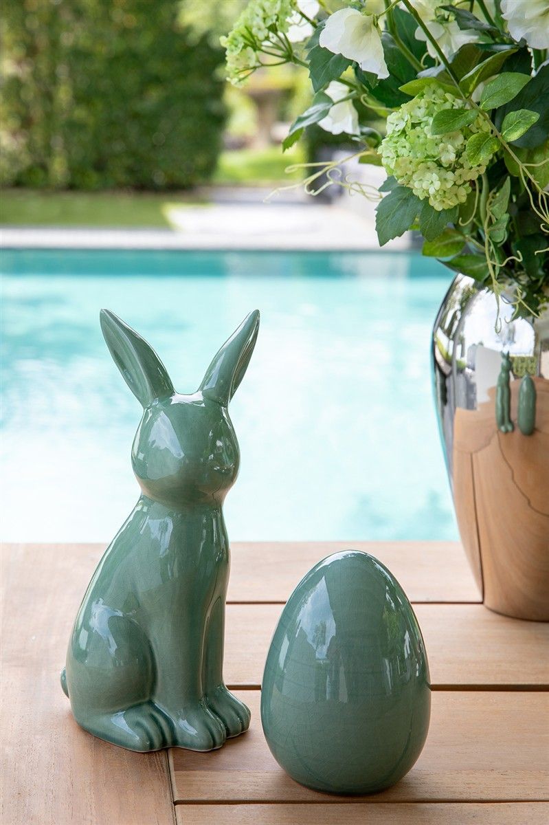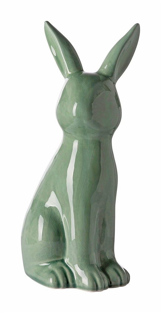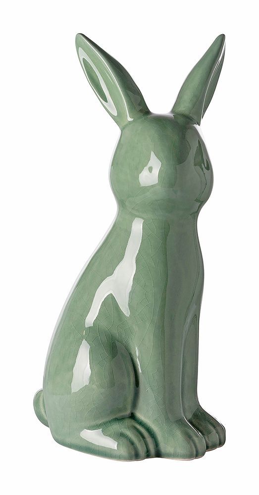 Fink Fink FABIUS, Deko Hase, Keramik, Krakelee, grün, L. 12.5 cm, B. 10.8 cm, H. 25 cm