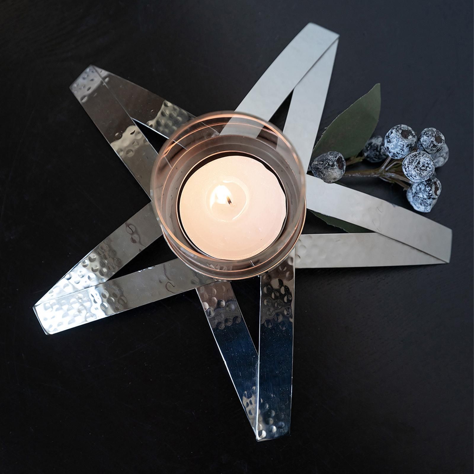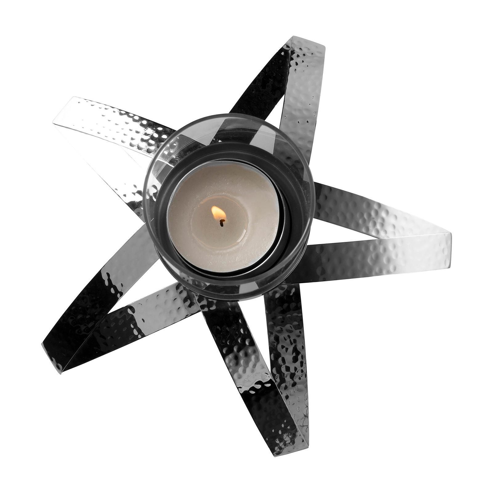 Fink Fink gehämmerter Kerzenhalter mit Glas 25 cm in Sternenform vernickelt