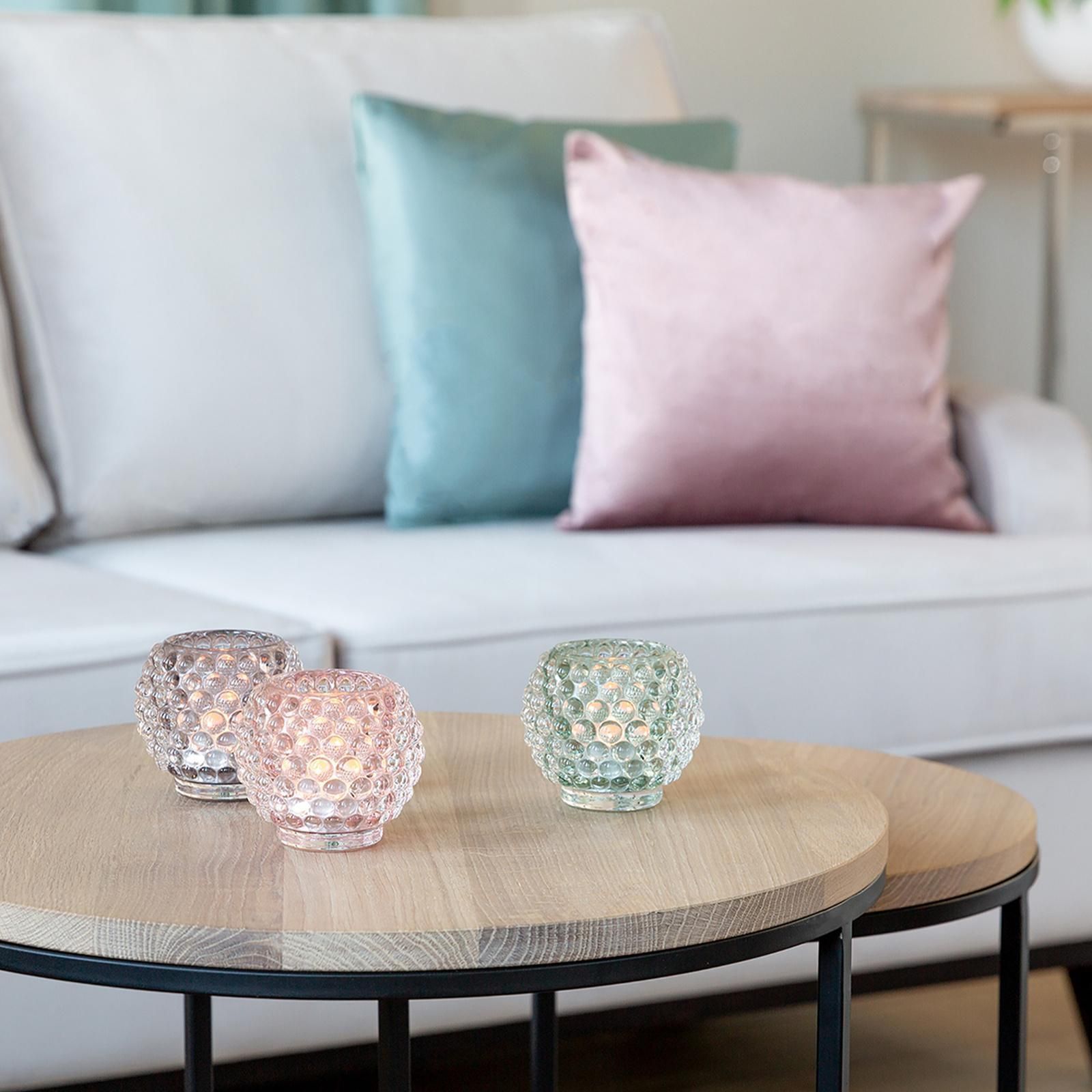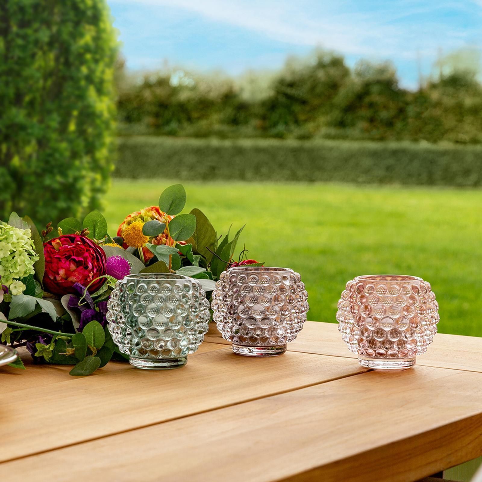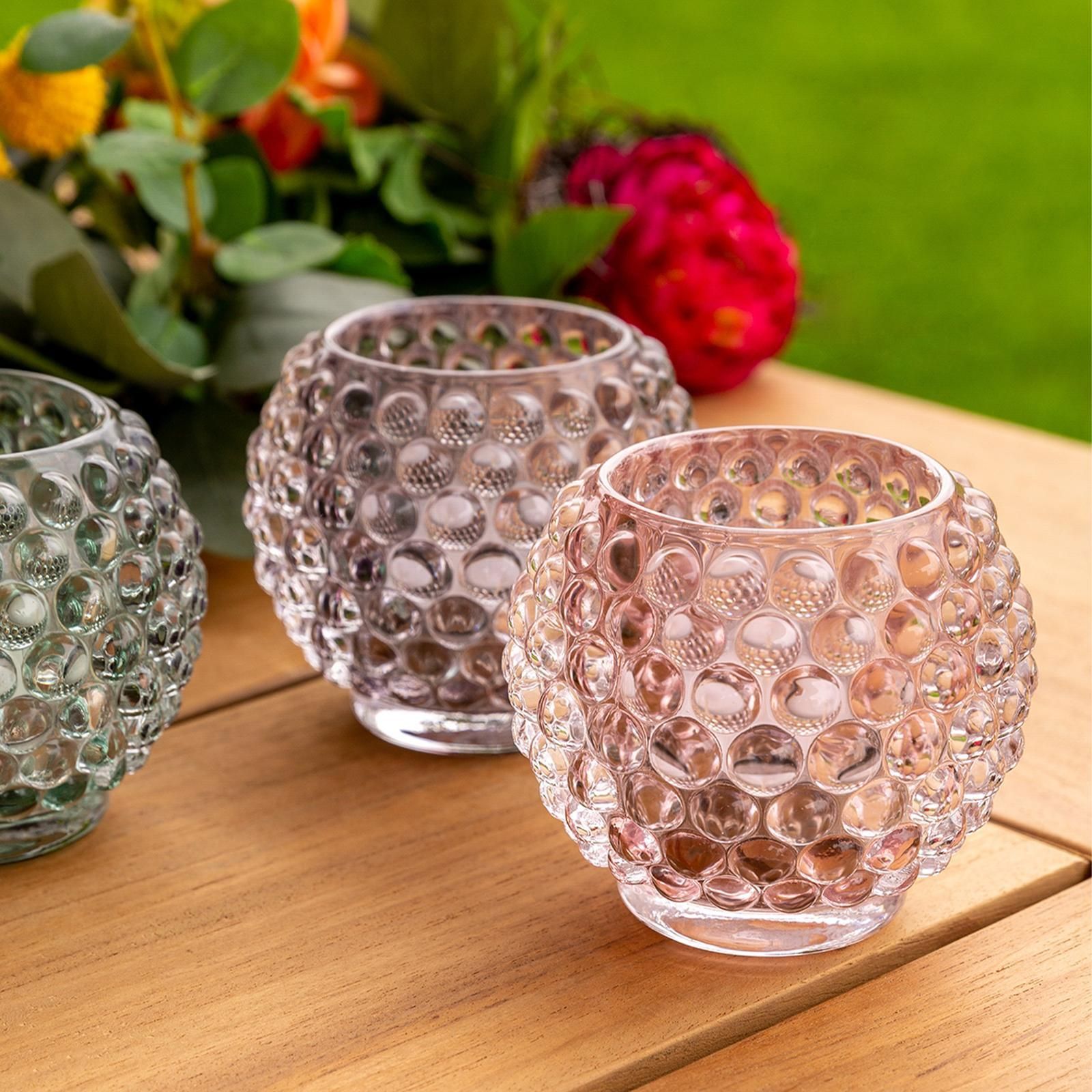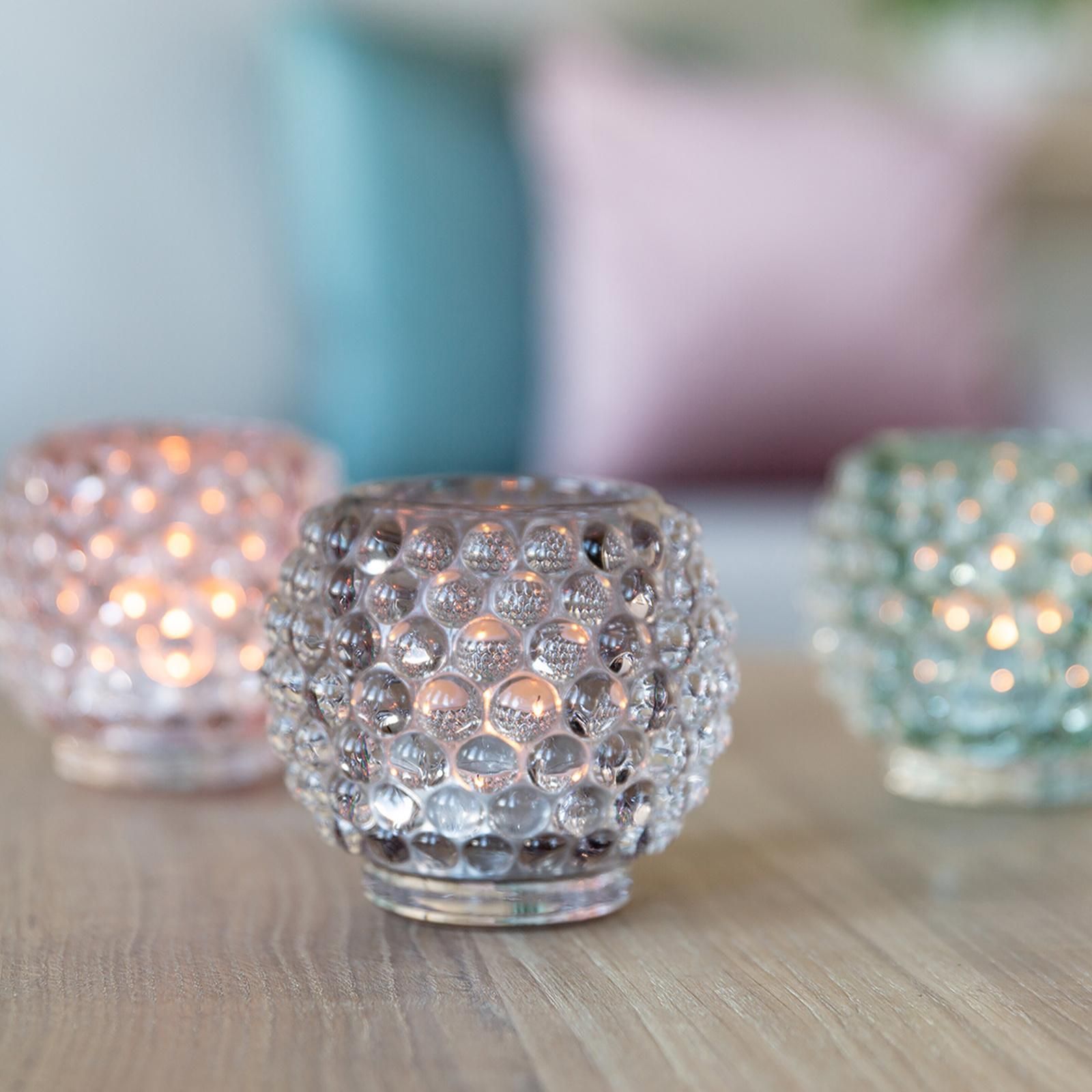 Fink Fink Glas-Teelichthalter Ø 9 cm grau Windlicht gläsern genoppter Kerzenhalter