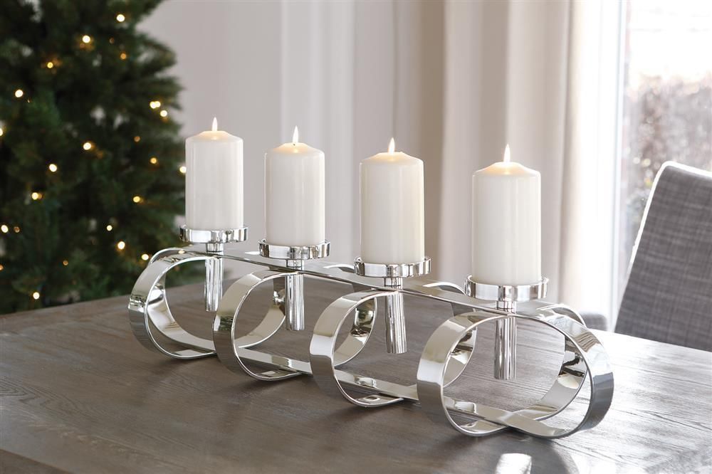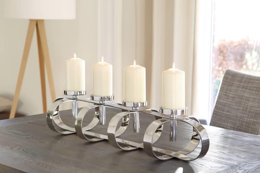 Fink Fink GORDEN, Stumpenkerzenleuchter, 4-flammig, vernickelt, silberfarben, L. 85