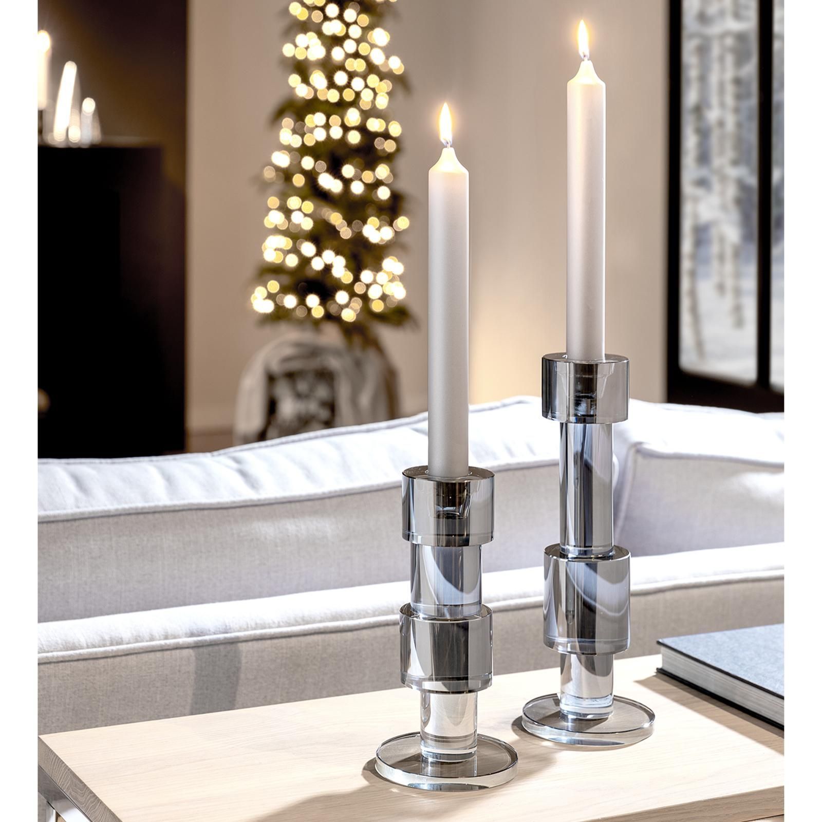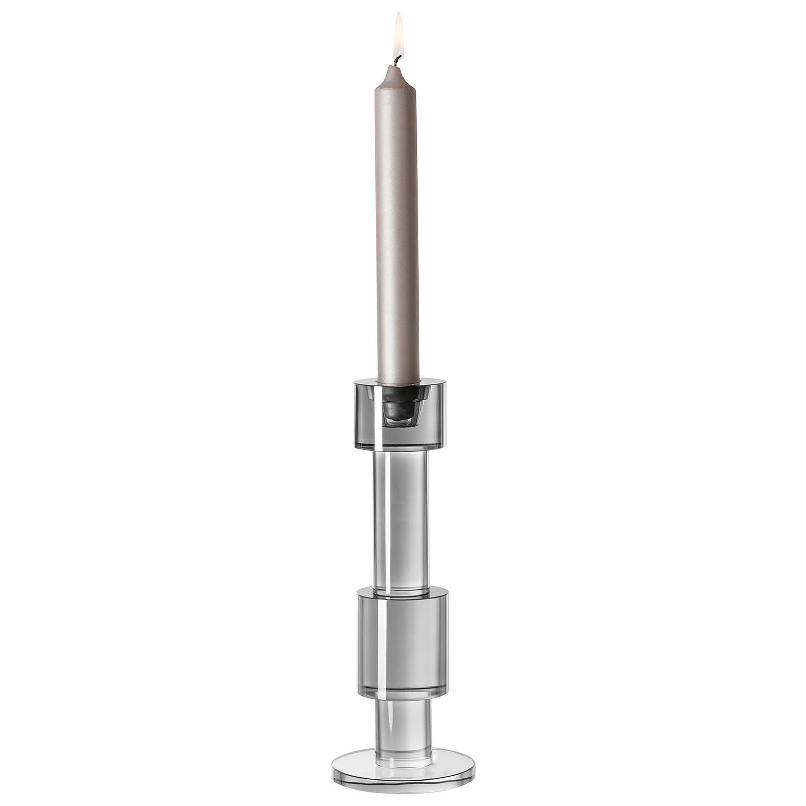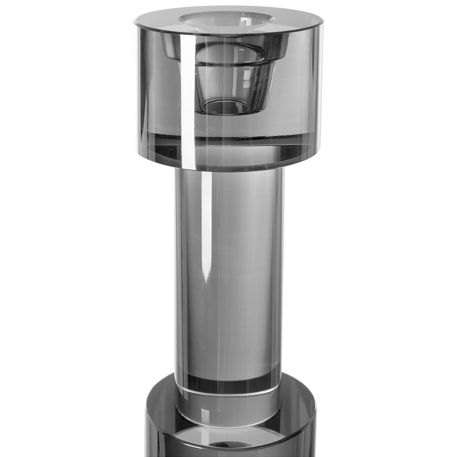 Fink Fink grauer Kerzenhalter 27 cm aus Kristallglas runder Halter für Stabkerzen