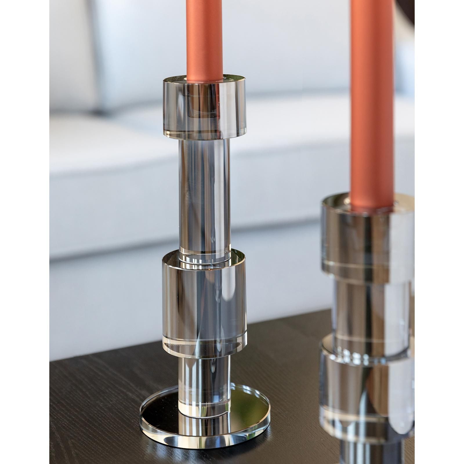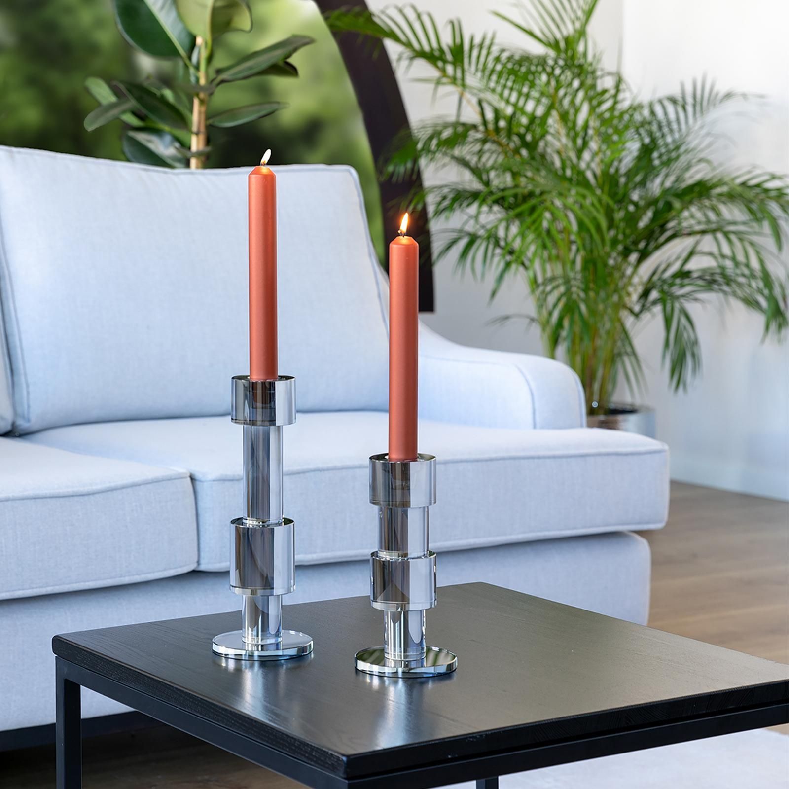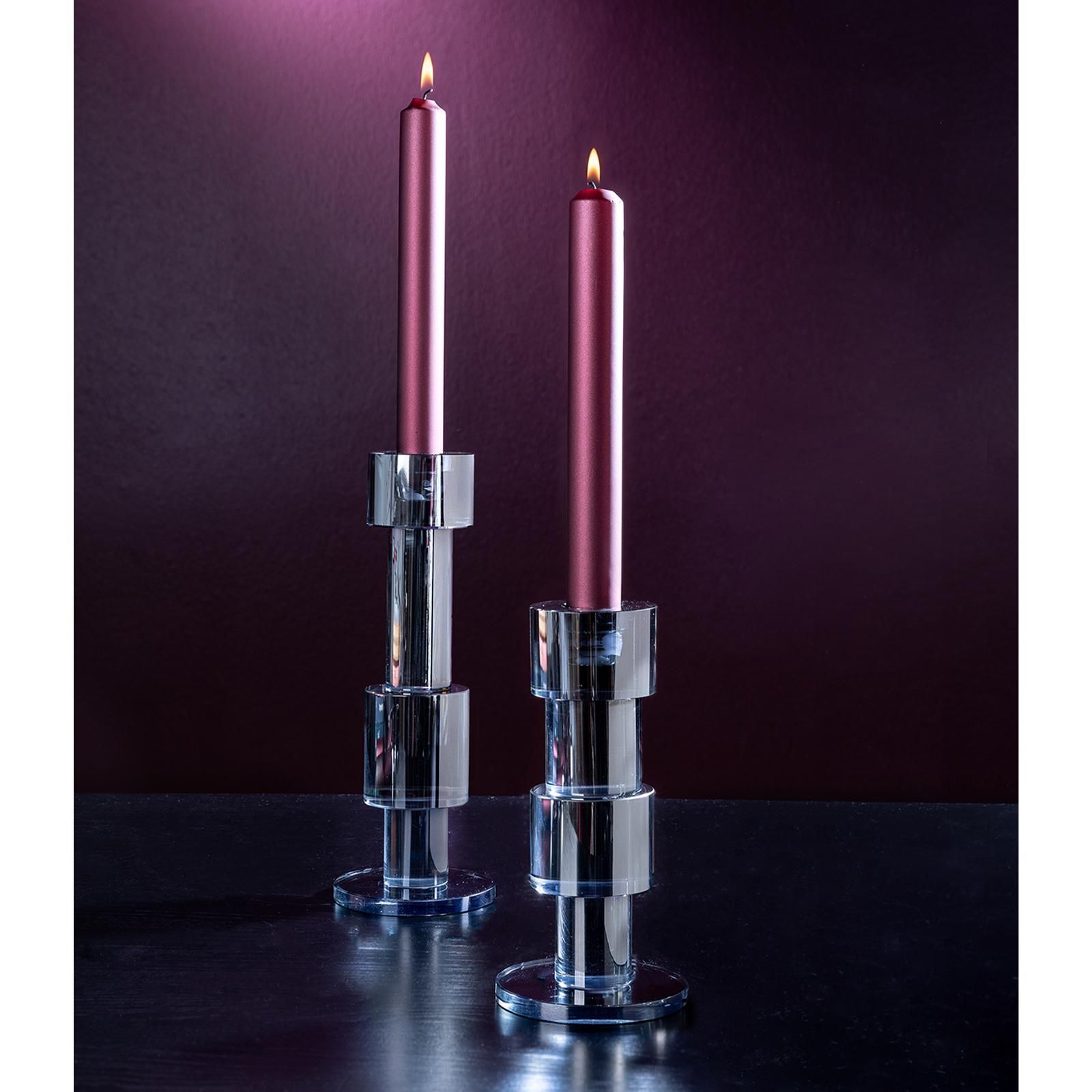 Fink Fink grauer Kerzenhalter 27 cm aus Kristallglas runder Halter für Stabkerzen