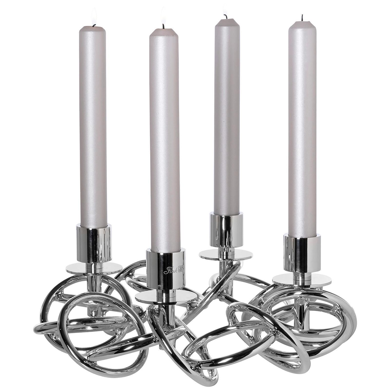 Fink Fink großer 4-flammiger Kerzenhalter Ø 34 cm glänzend vernickelt für Stabkerzen