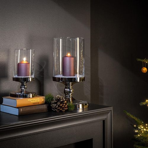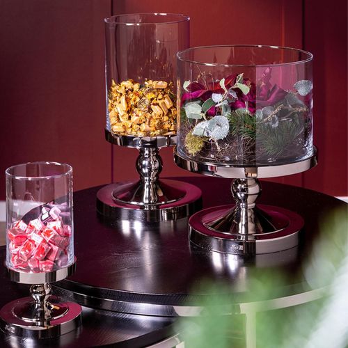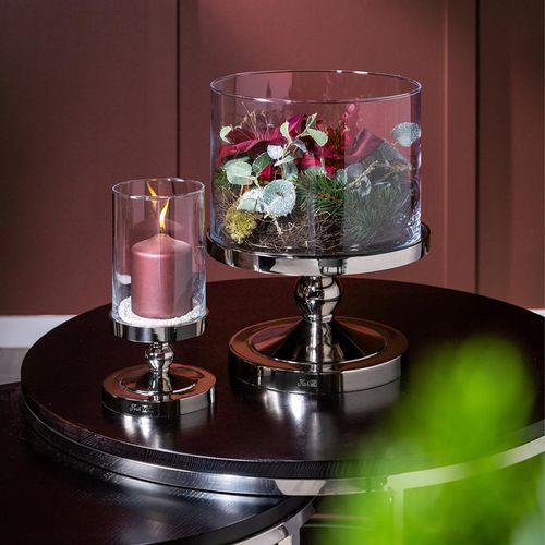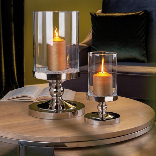 Fink Fink großer Kerzenhalter für Stumpenkerzen 15 cm Aluminium Kerzenständer mit Glas
